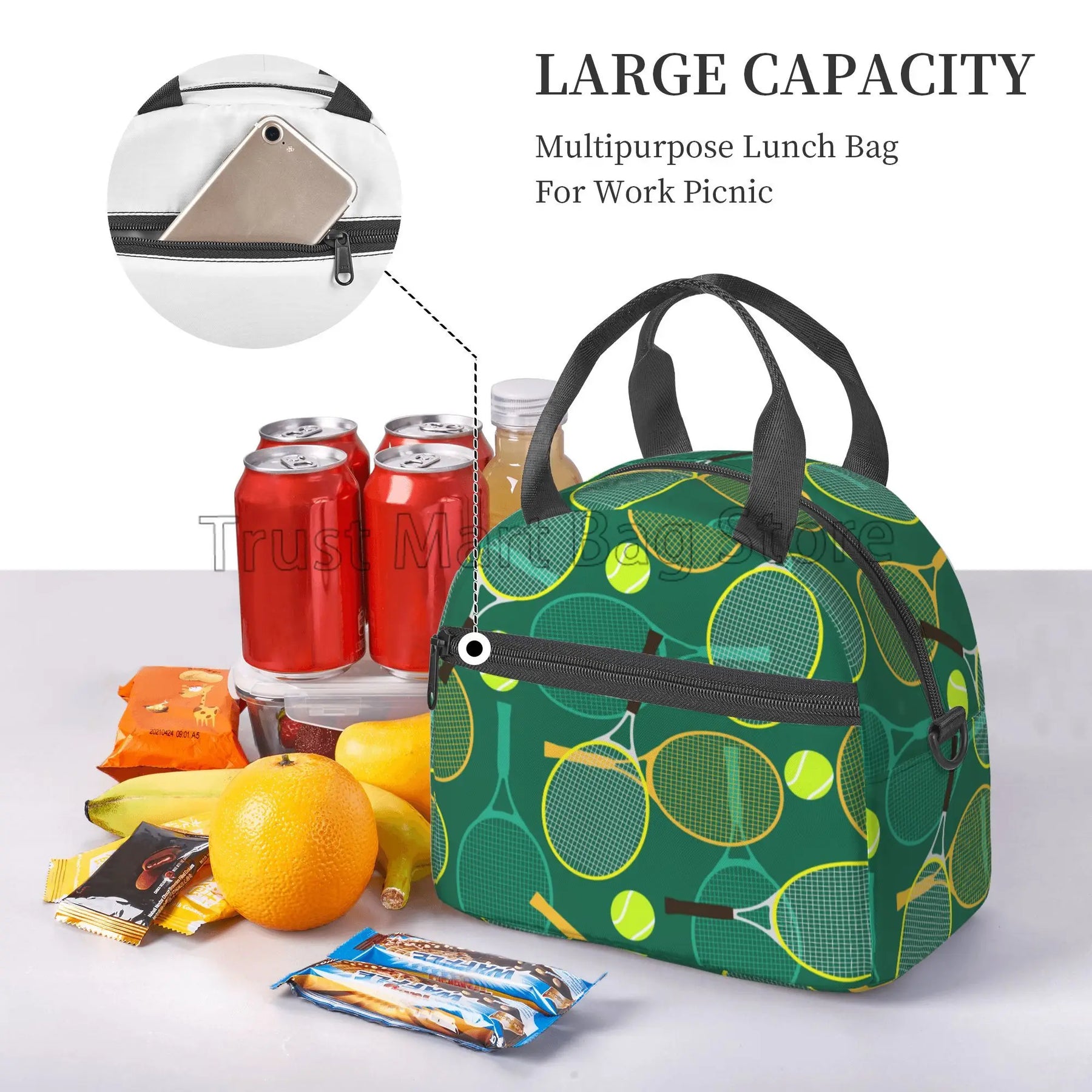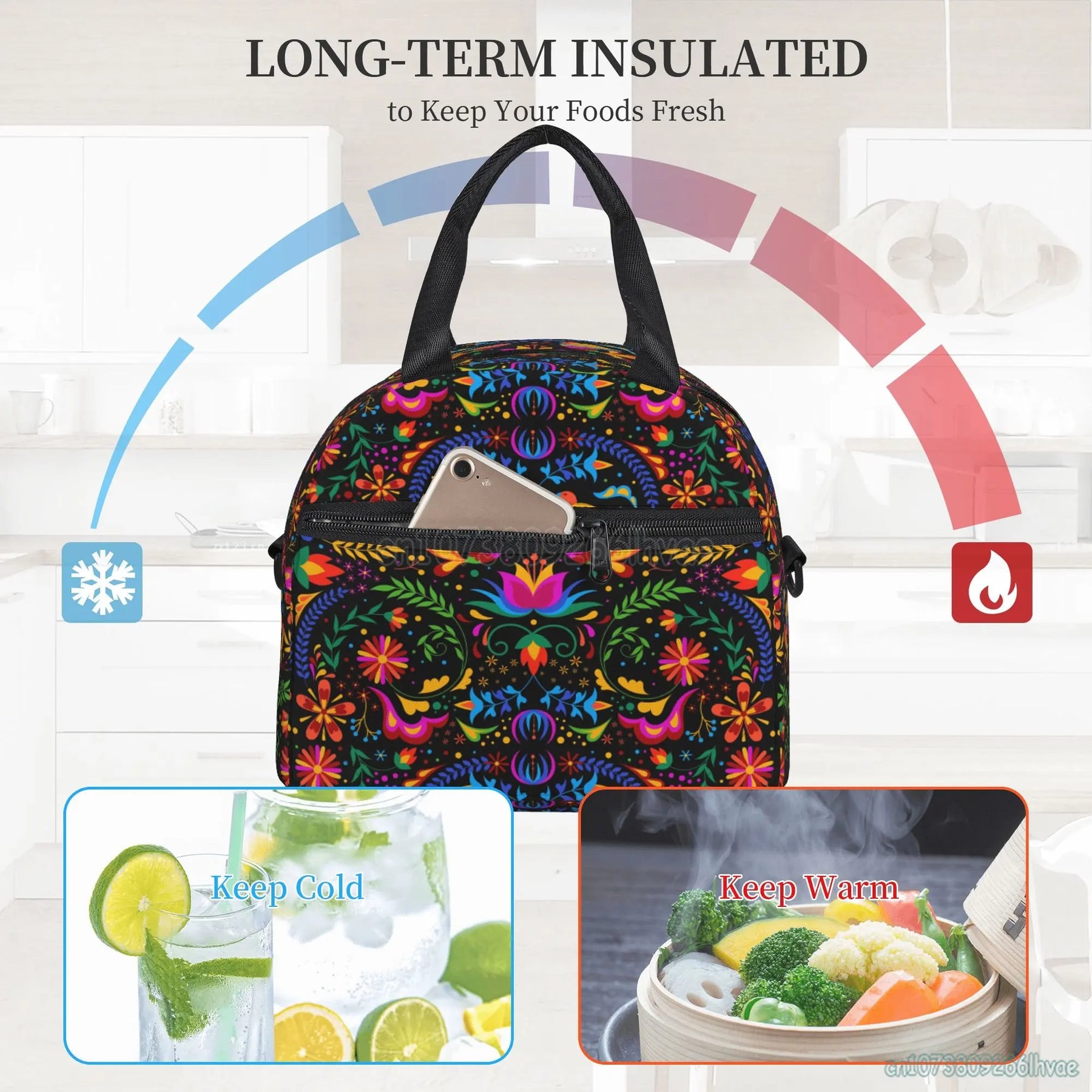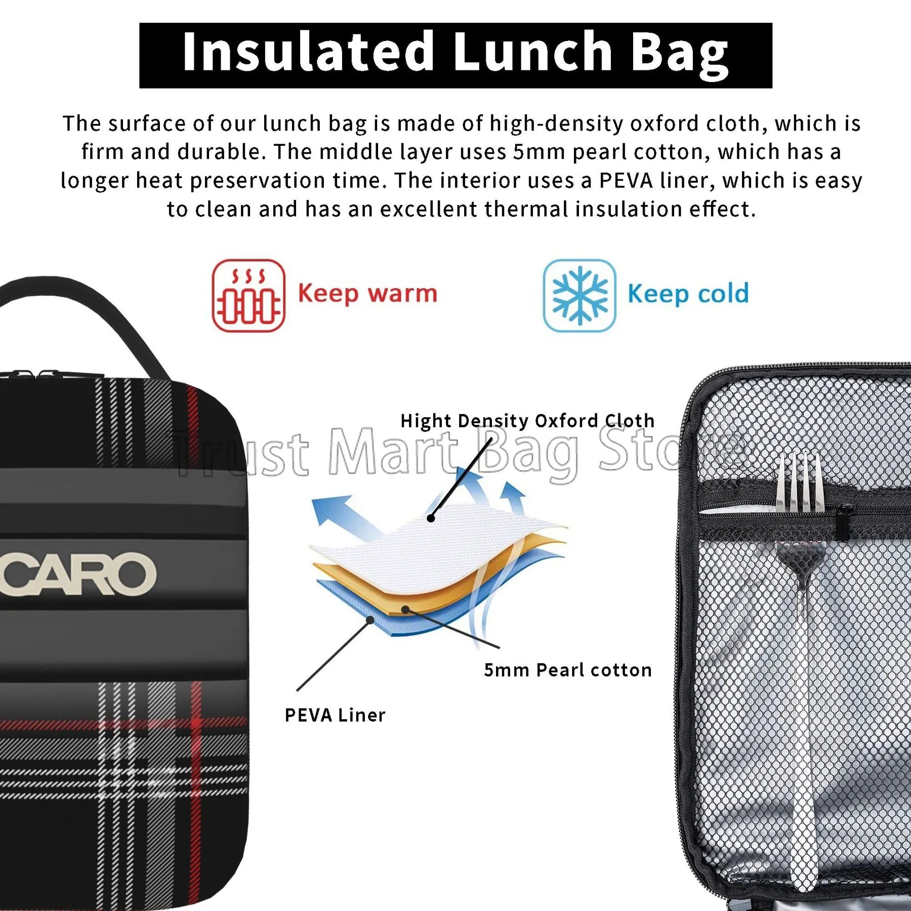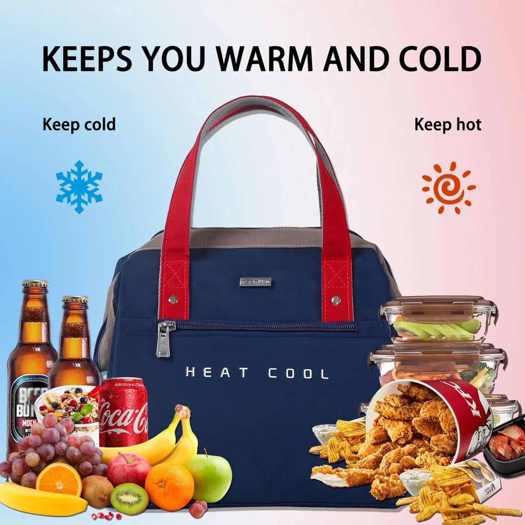 Our lunch bag features a spacious interior that can accommodate food for up to 2 persons, making it ideal for sharing meals with a loved one or a friend. The insulated design helps to keep your food fresh and at the right temperature, whether you're heading to work, school, or on a picnic.