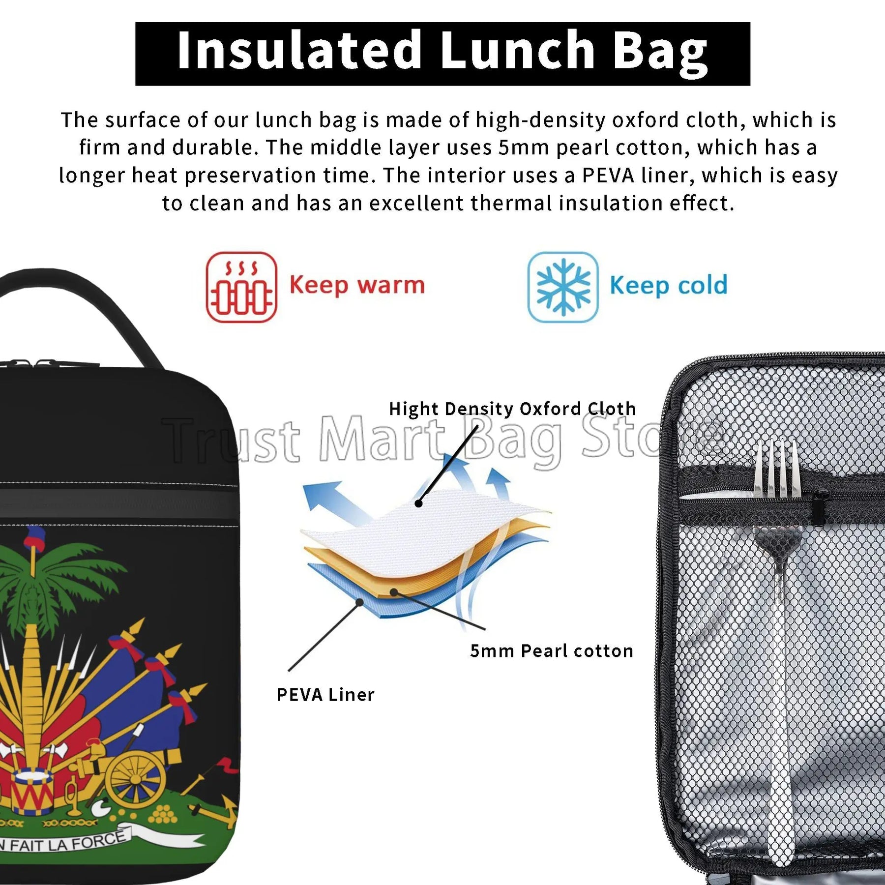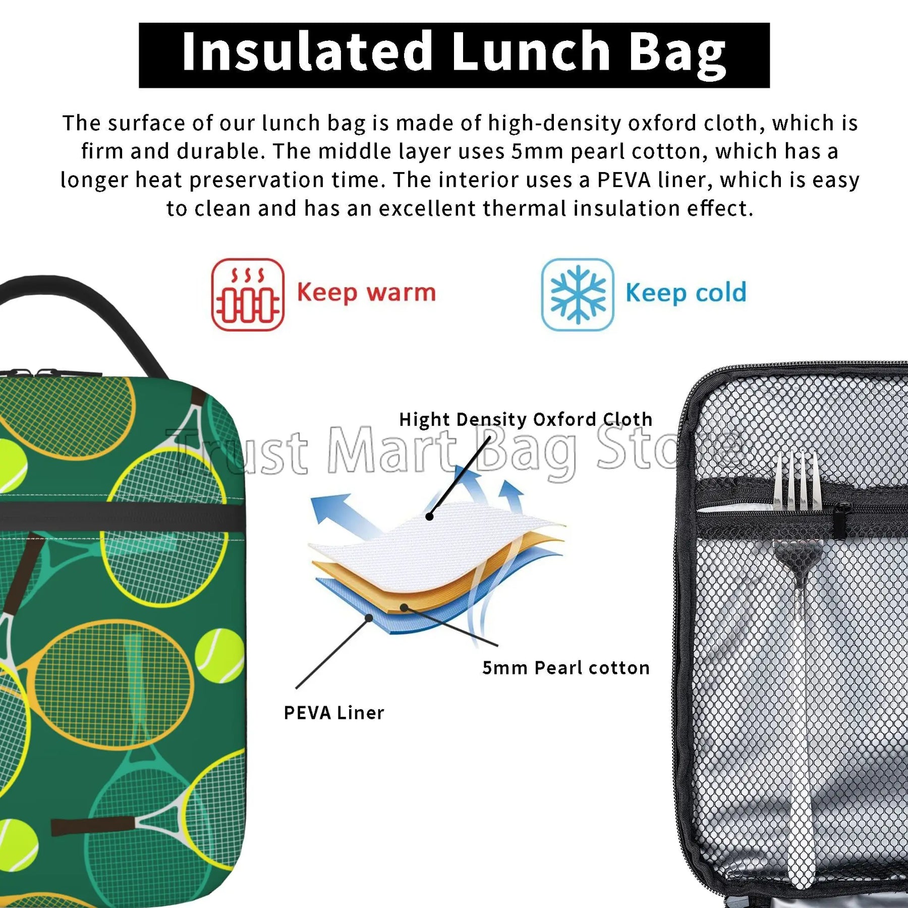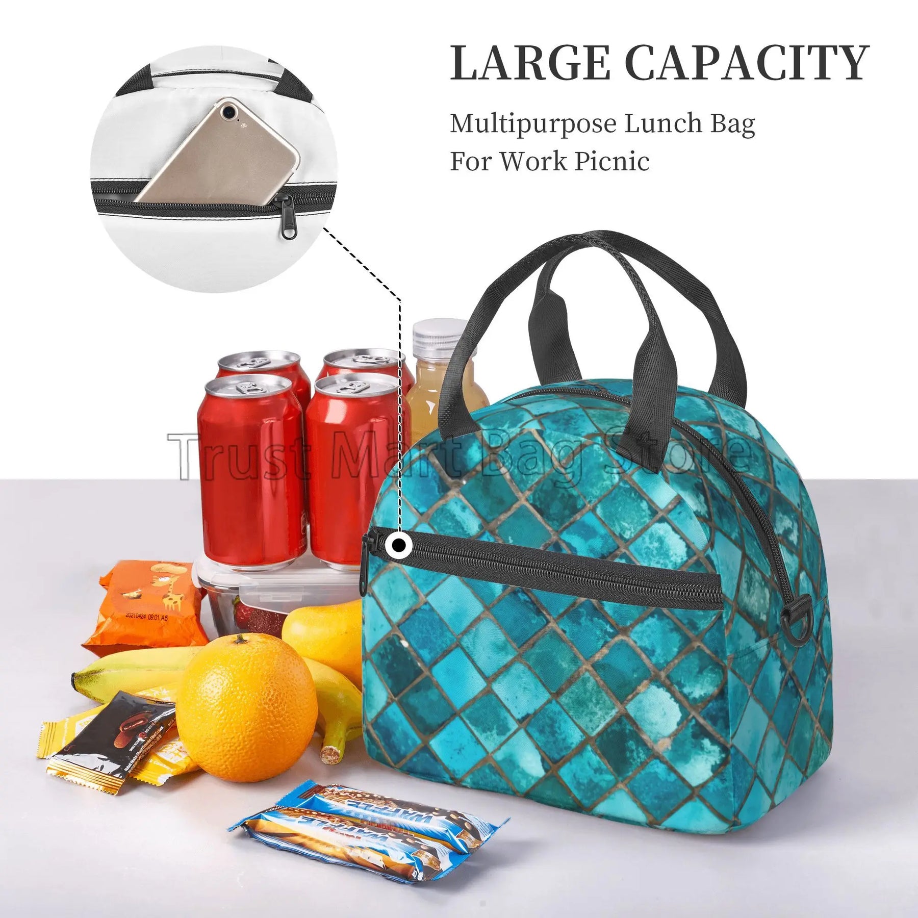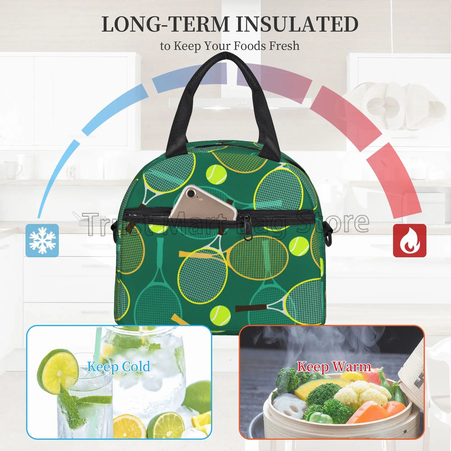 Our lunch bag features a spacious interior that can accommodate food for up to 2 persons, making it ideal for sharing meals with a loved one or a friend. The insulated design helps to keep your food fresh and at the right temperature, whether you're heading to work, school, or on a picnic.