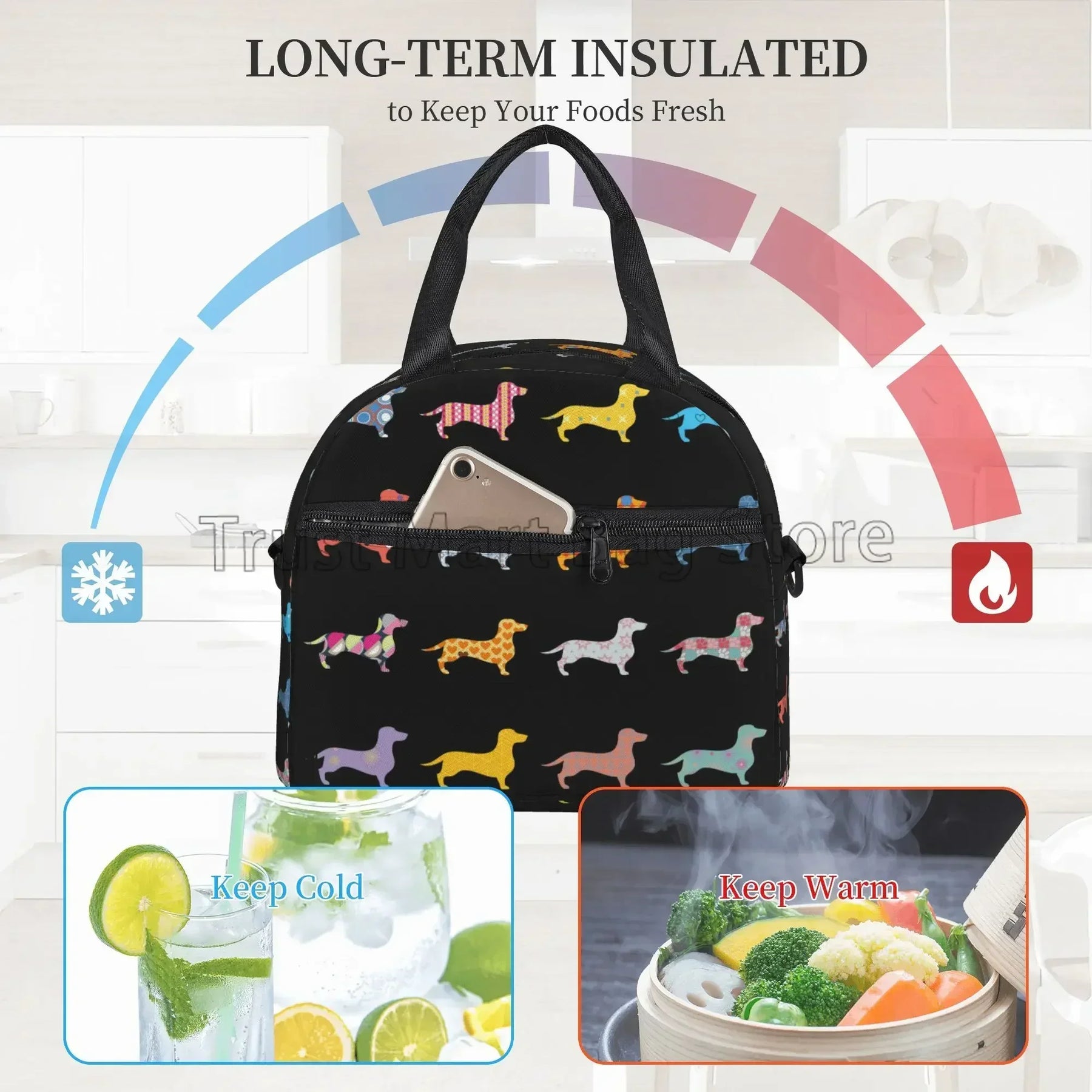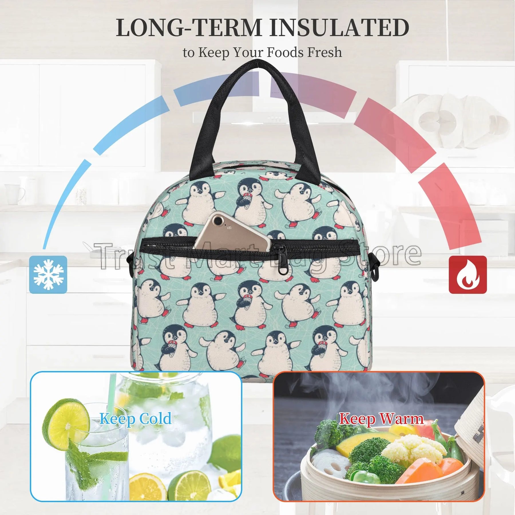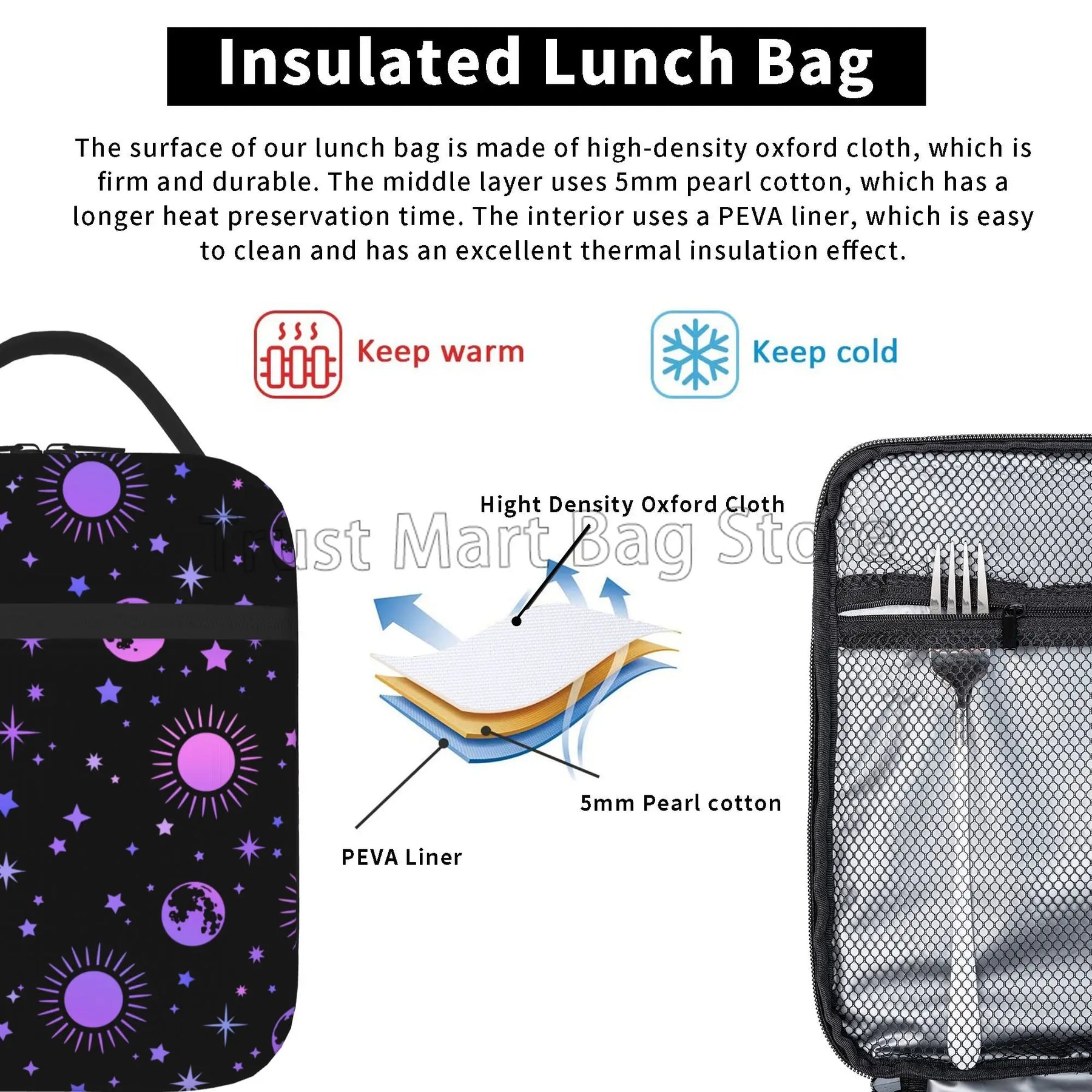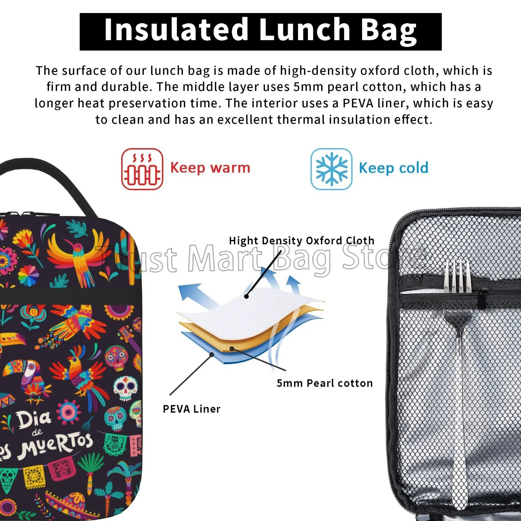 Our lunch bag features a spacious interior that can accommodate food for up to 2 persons, making it ideal for sharing meals with a loved one or a friend. The insulated design helps to keep your food fresh and at the right temperature, whether you're heading to work, school, or on a picnic.