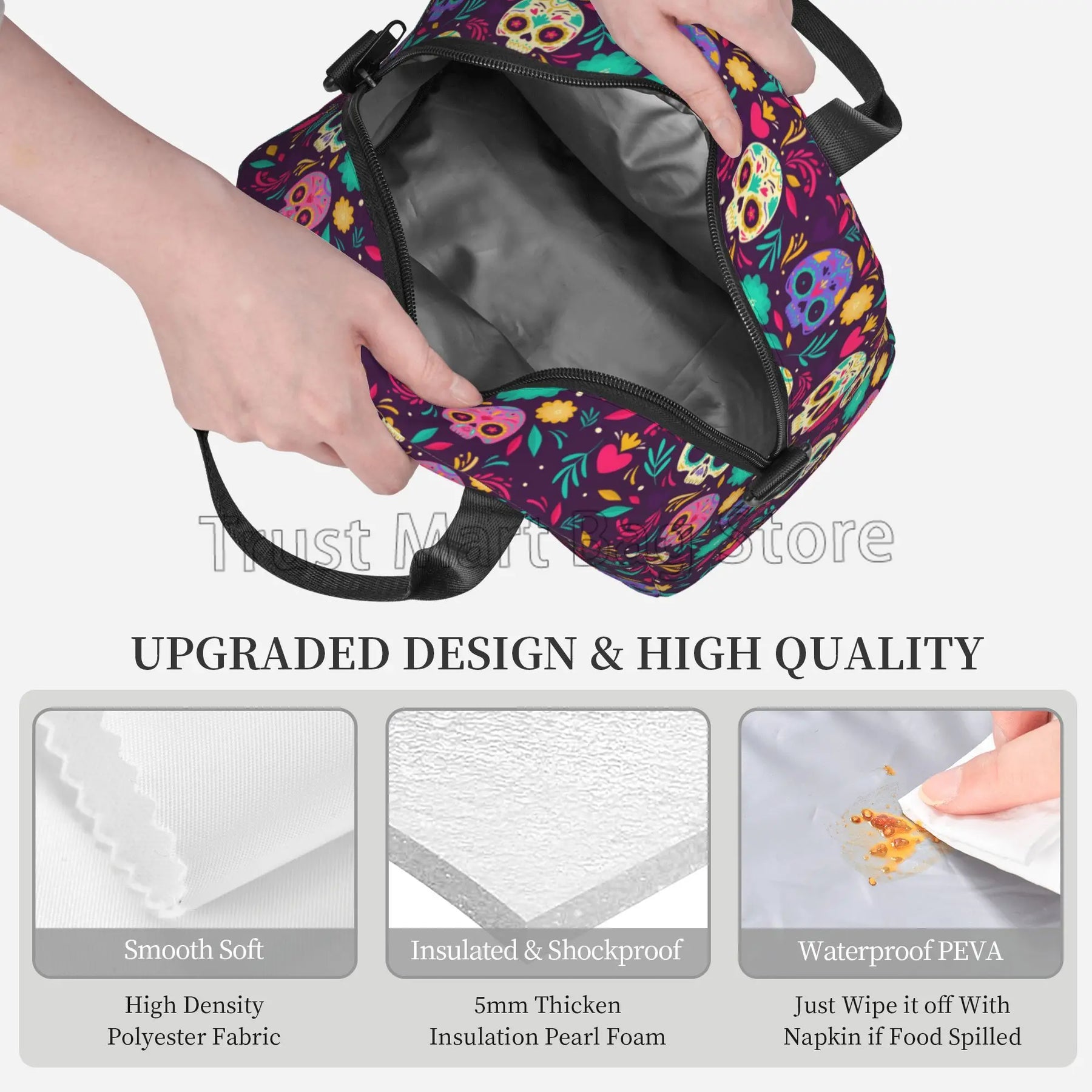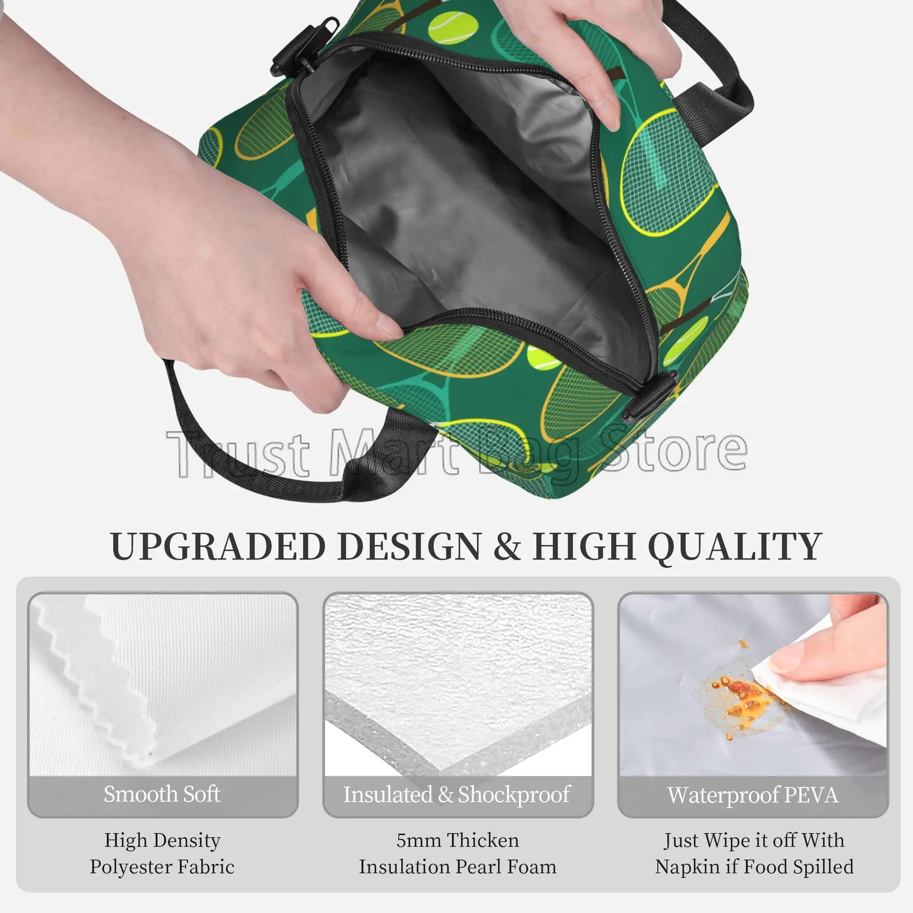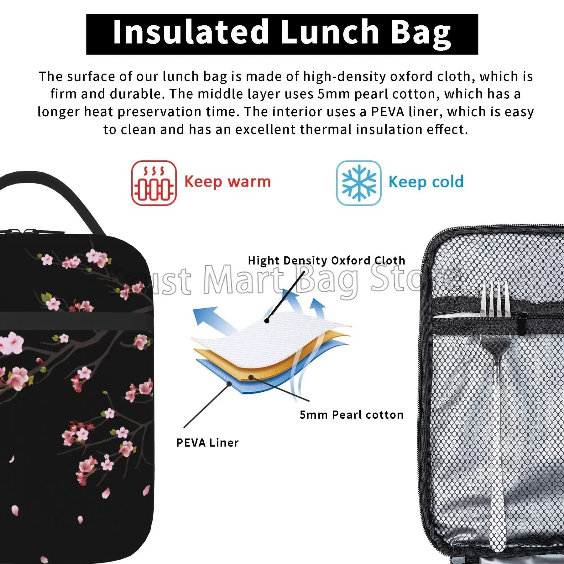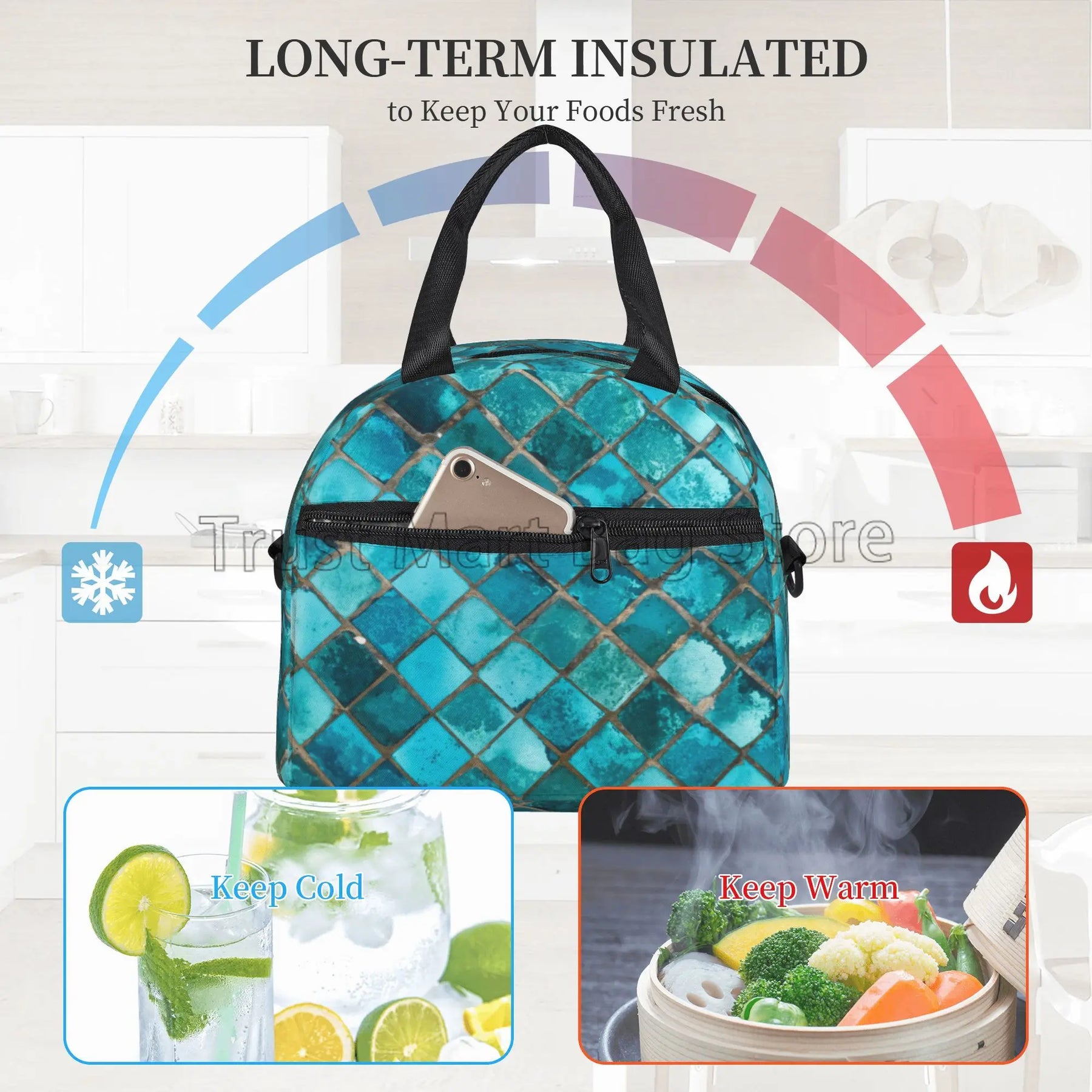 Our lunch bag features a spacious interior that can accommodate food for up to 2 persons, making it ideal for sharing meals with a loved one or a friend. The insulated design helps to keep your food fresh and at the right temperature, whether you're heading to work, school, or on a picnic.