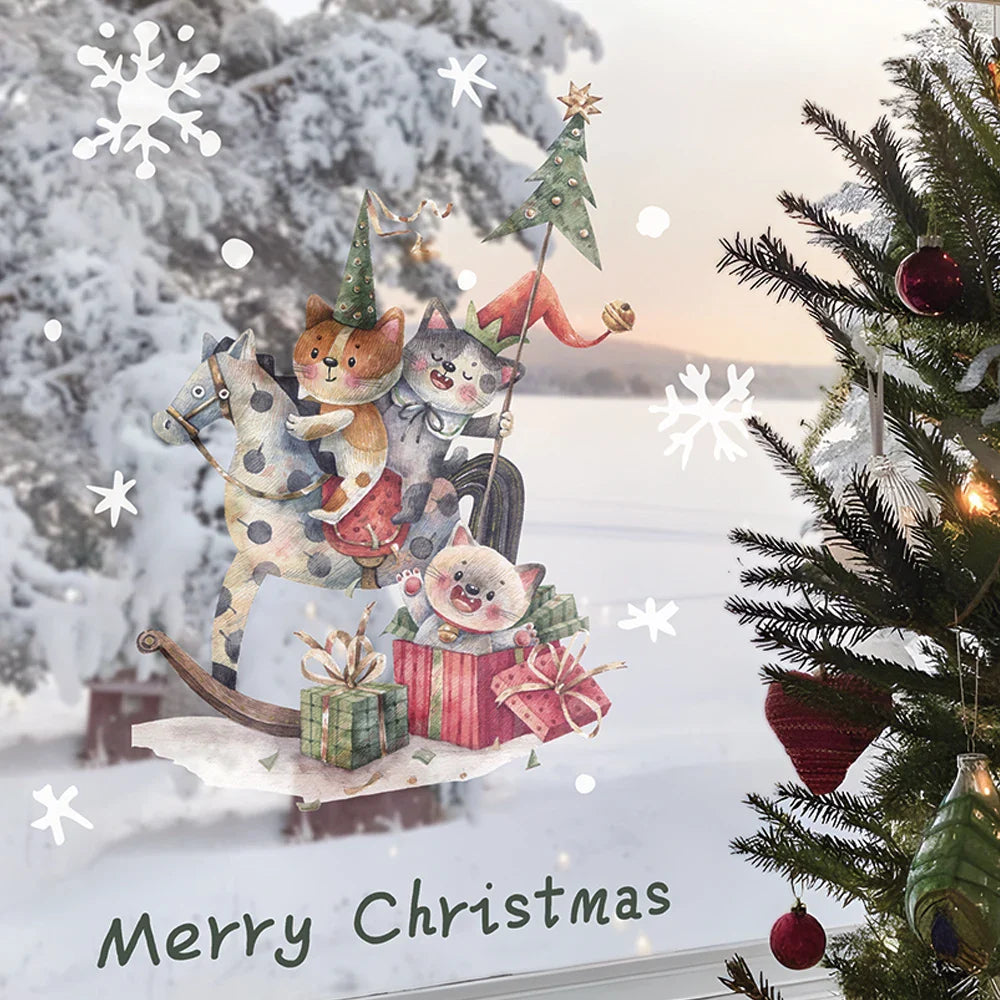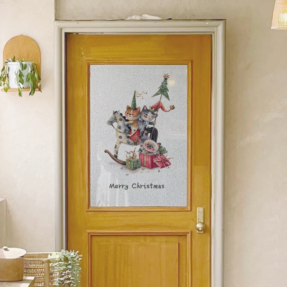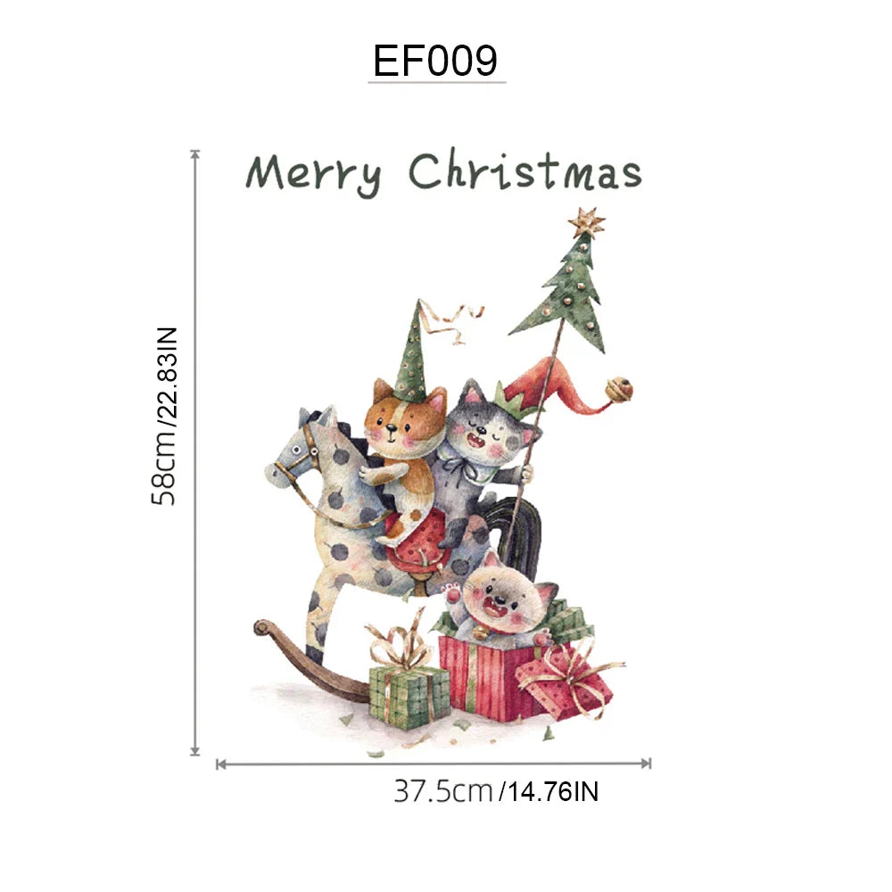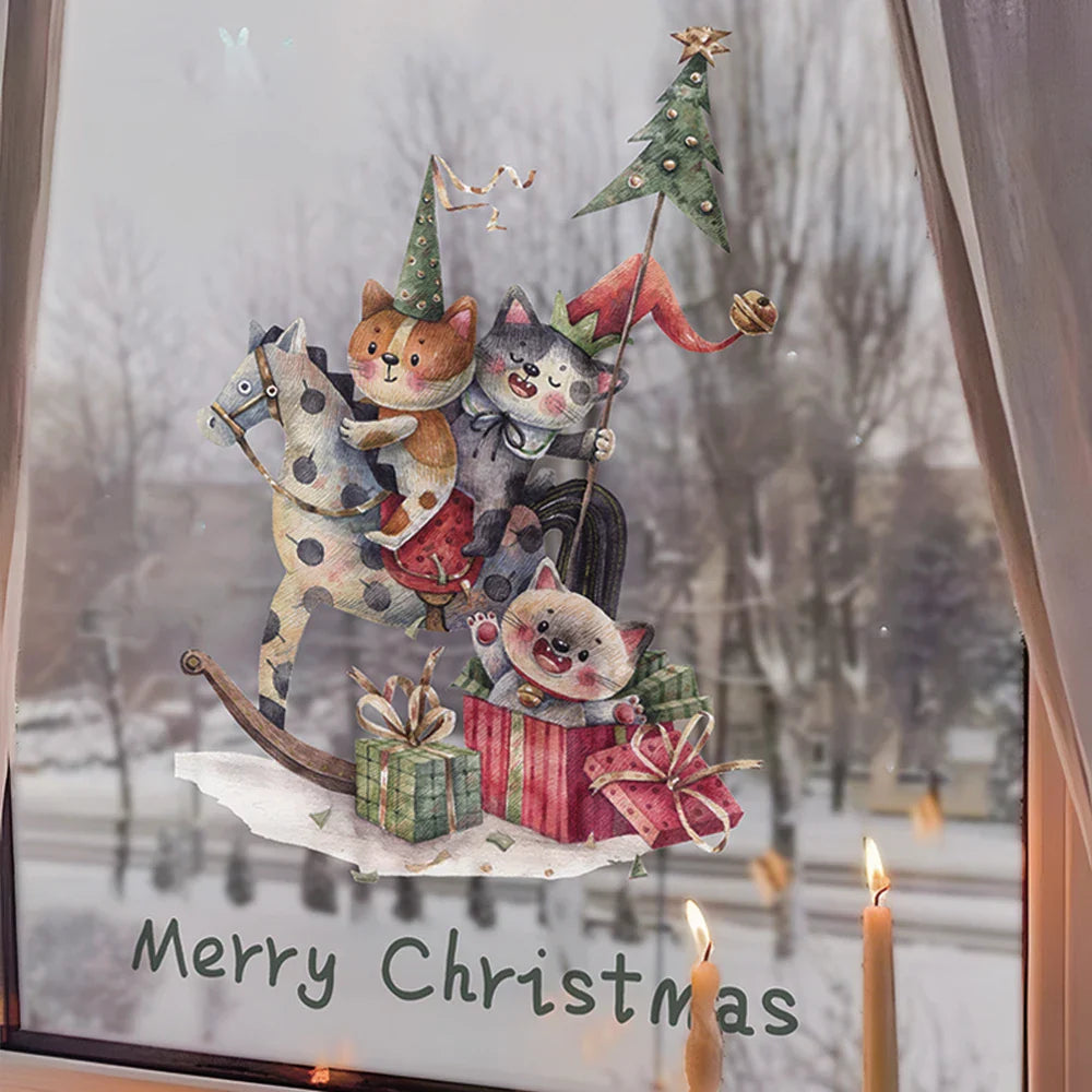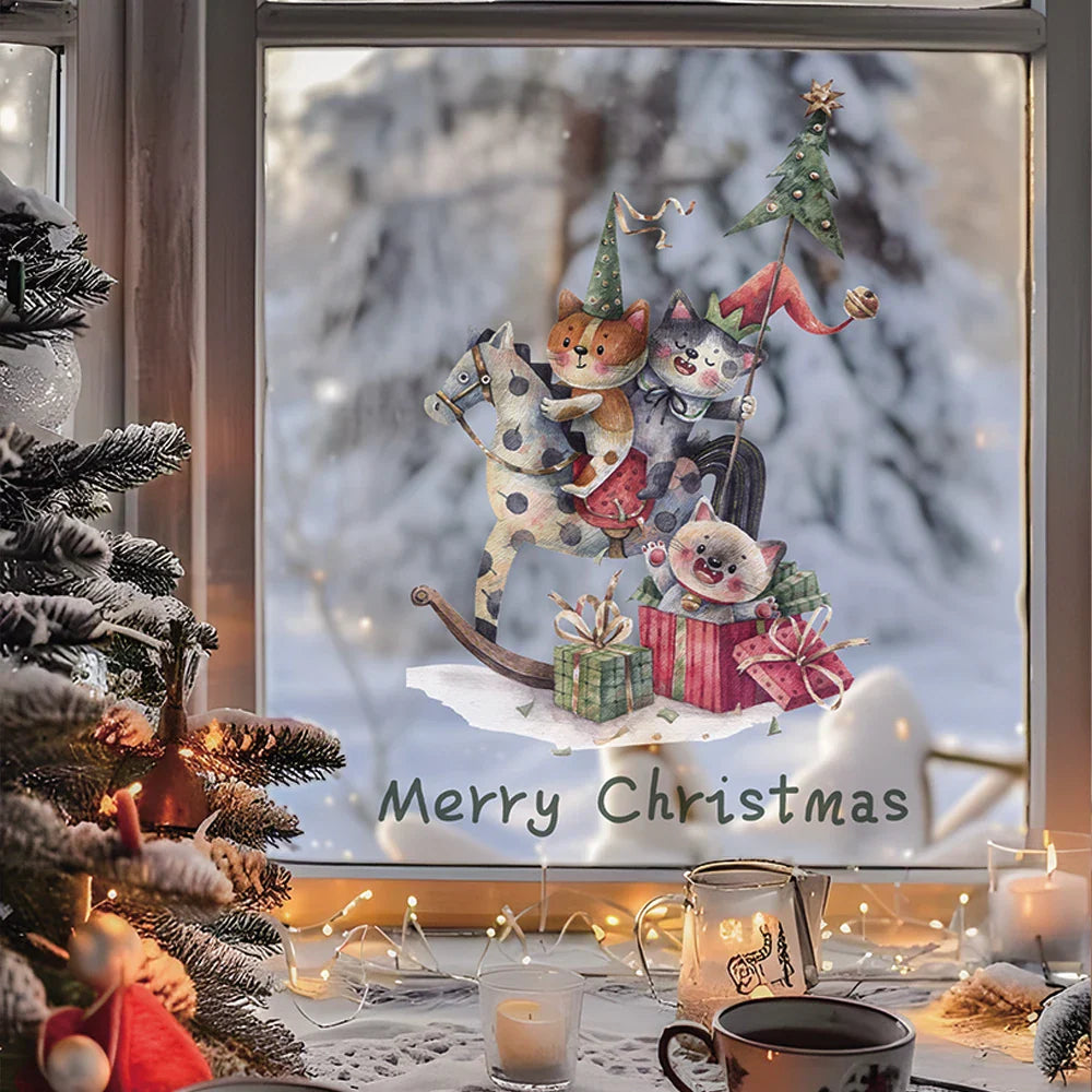 Ljojo™ Christmas Cat Window Clings, Double-Sided Static Stickers, Cute New Year Decor