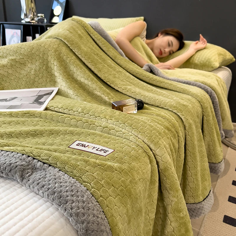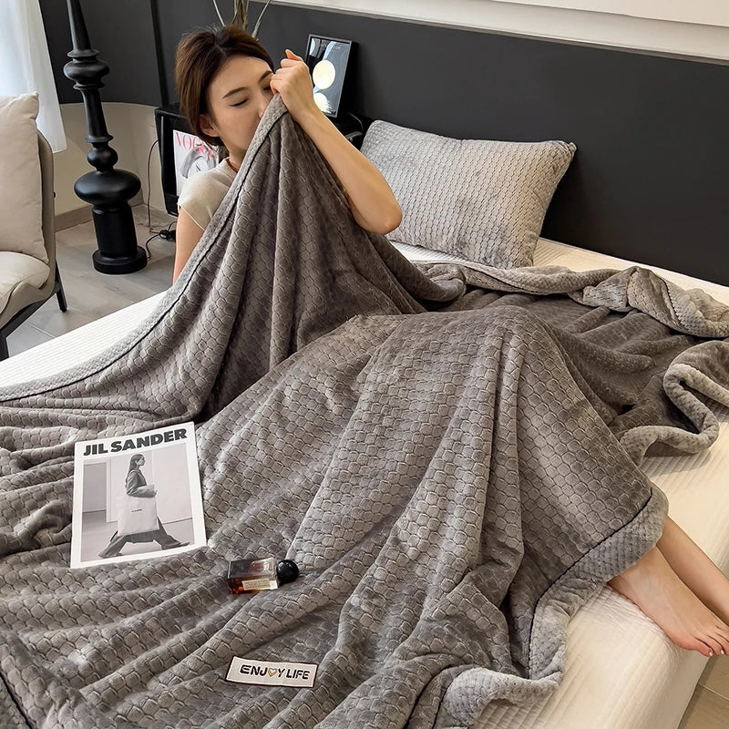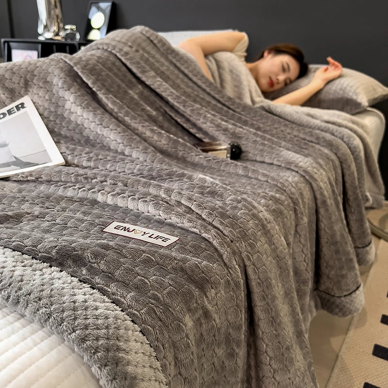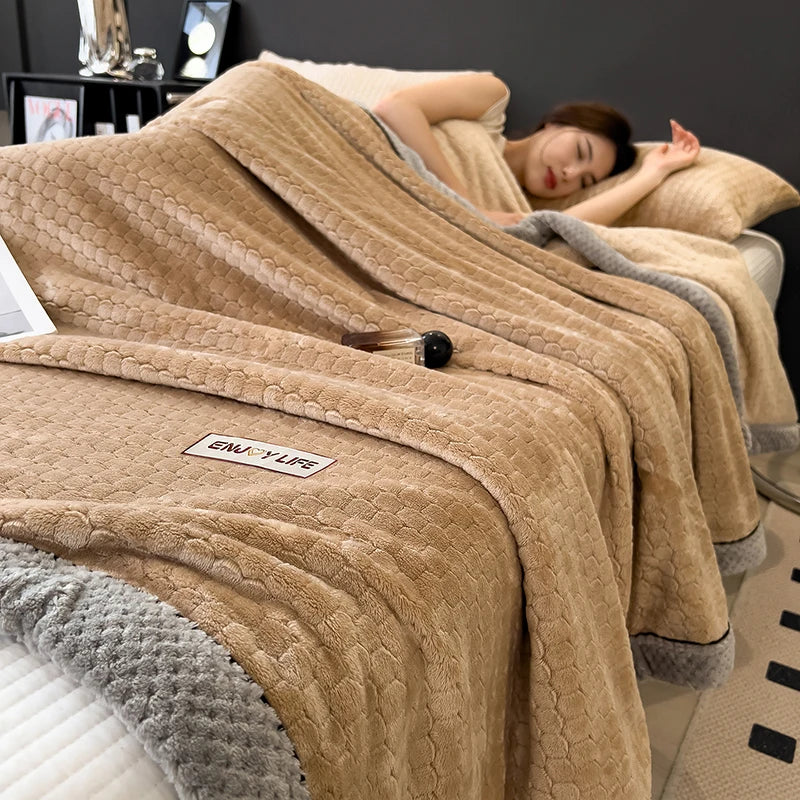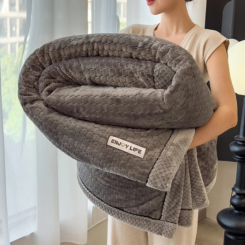 Ljojo™ Coral Fleece Flannel Blanket, Multifunctional & Thickened Comforter for Winter & Spring