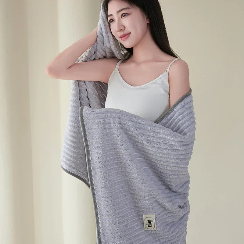 Available in a range of modern and soothing colors such as blue, green, grey, light grey, orange, yellow, and beige coffee, this blanket is designed to complement any home decor. The big stripe pattern adds a touch of style, making it a timeless addition to your living space.