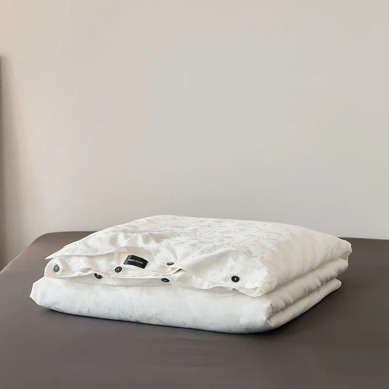 The fitted sheet features a 360 elastic band design for a secure fit, preventing slipping and sliding throughout the night. Perfect for summer months, this set is lightweight, weighing between 0.75-0.95kgs, making it an ideal choice for both home and hotel use.