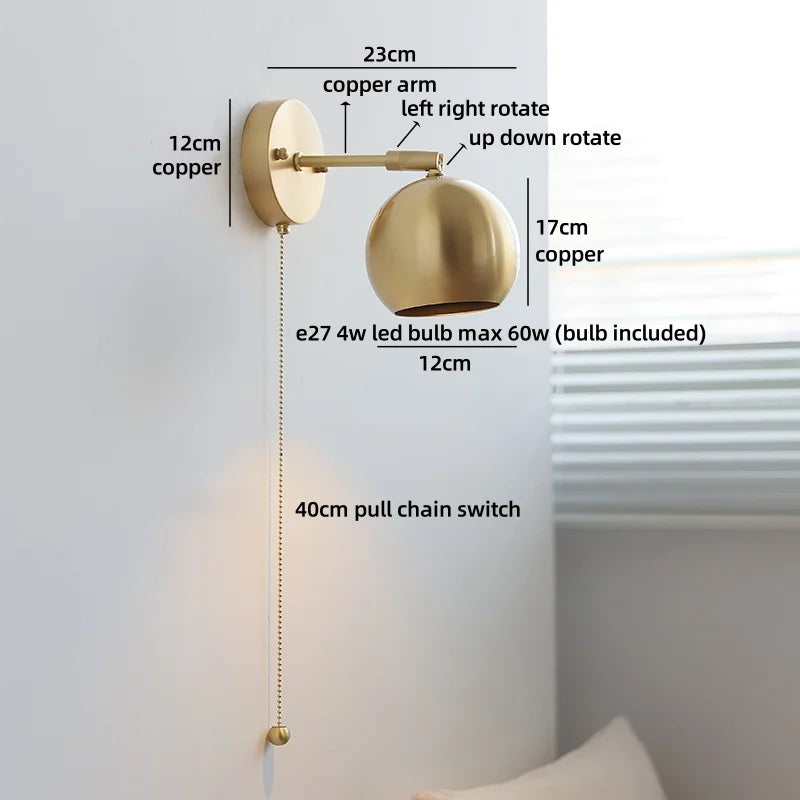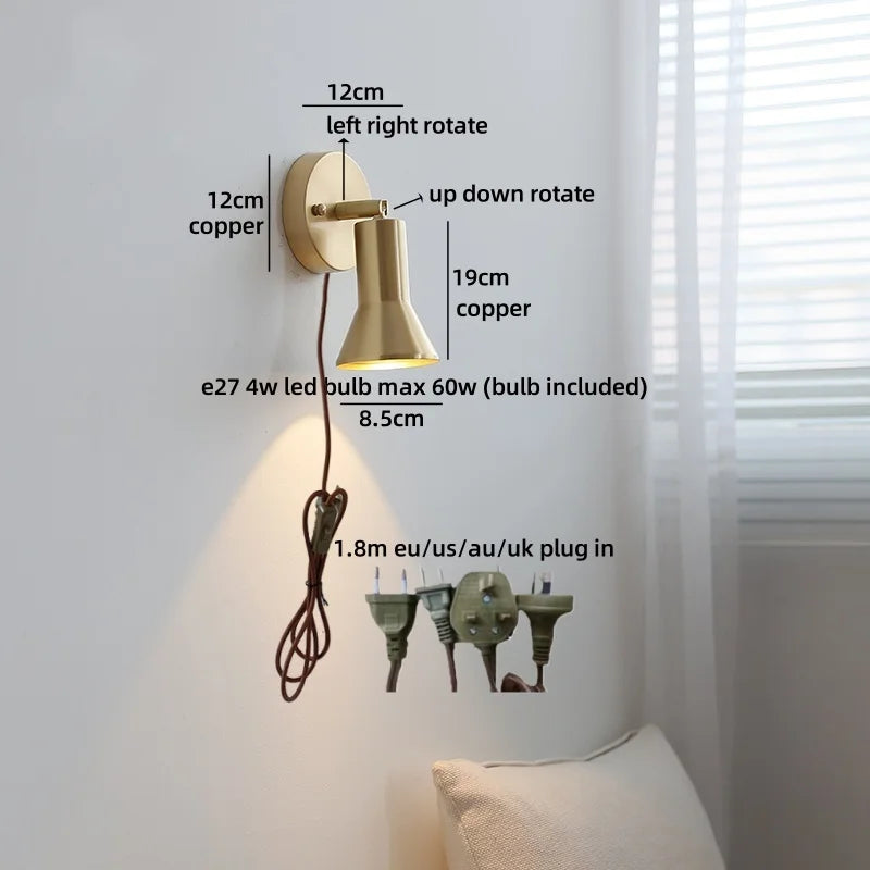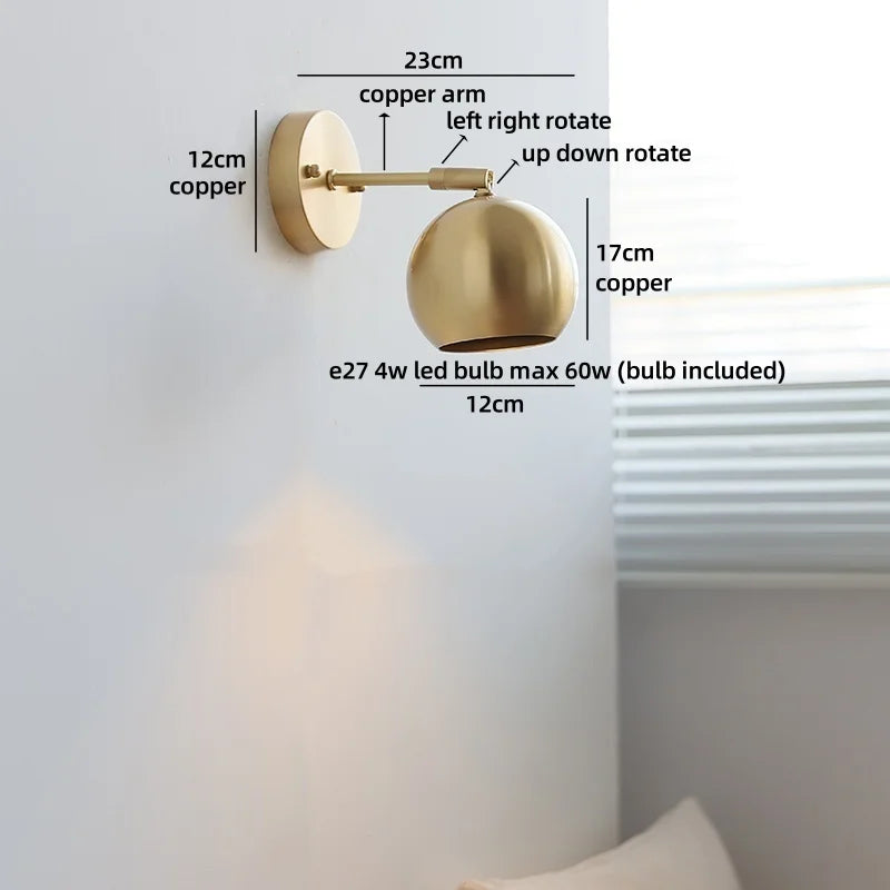 Modern Ljojo™ Bedside LED Wall Lamps, Swing Arm E27 Bulb, Gold Copper Finish