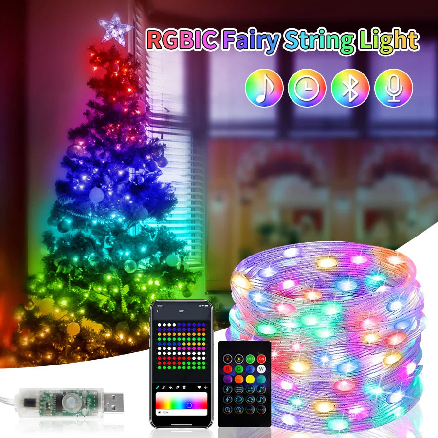 Introducing our new Ljojo™ Dreamcolor Bluetooth LED String Lights - RGBIC Addressable, the perfect way to add a touch of magic to any space. These LED string lights are app-controlled and come with a range of features that will truly elevate your decor.