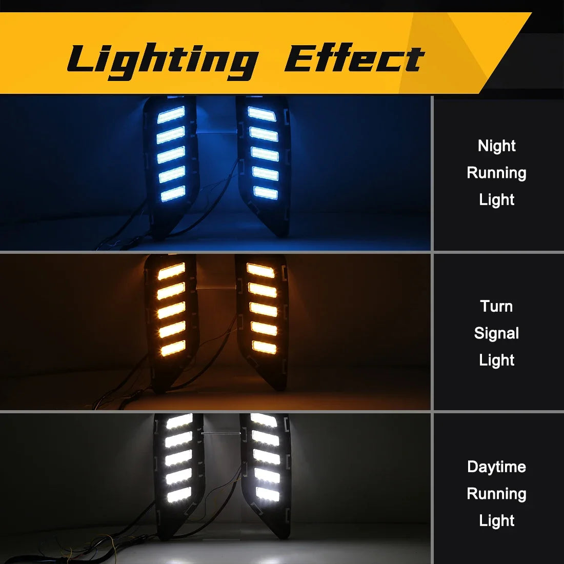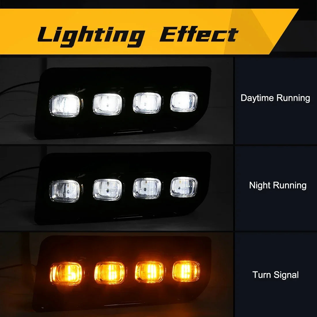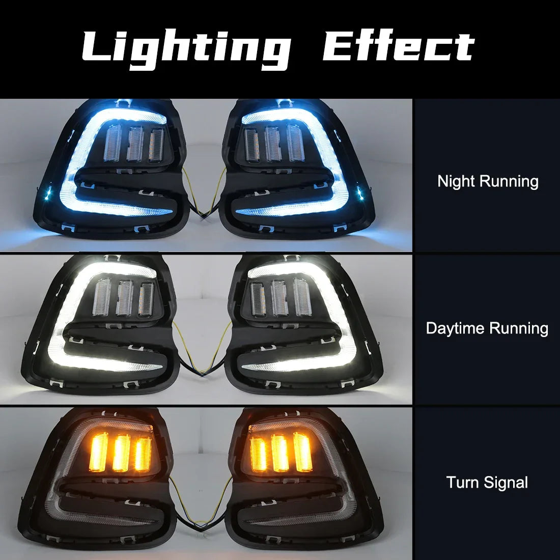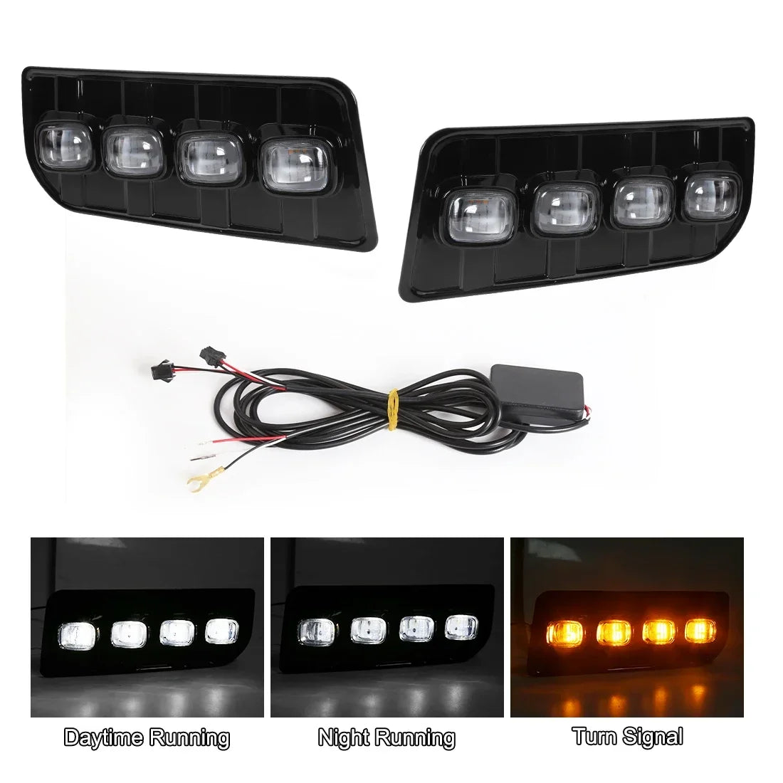 Illuminate your path with confidence as these lights feature dual functions, serving as both Daytime Running Lights (DRL) and turn signals. Crafted from high-quality ABS material and equipped with advanced LED technology, these lights are built to last and provide reliable performance.
