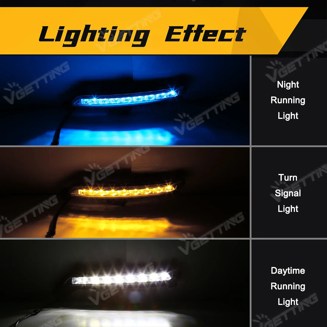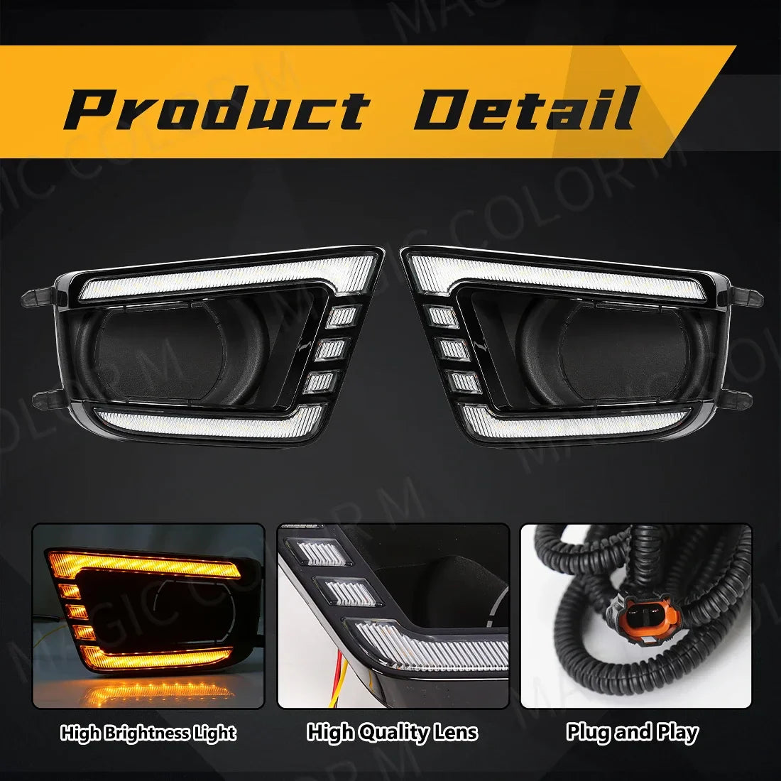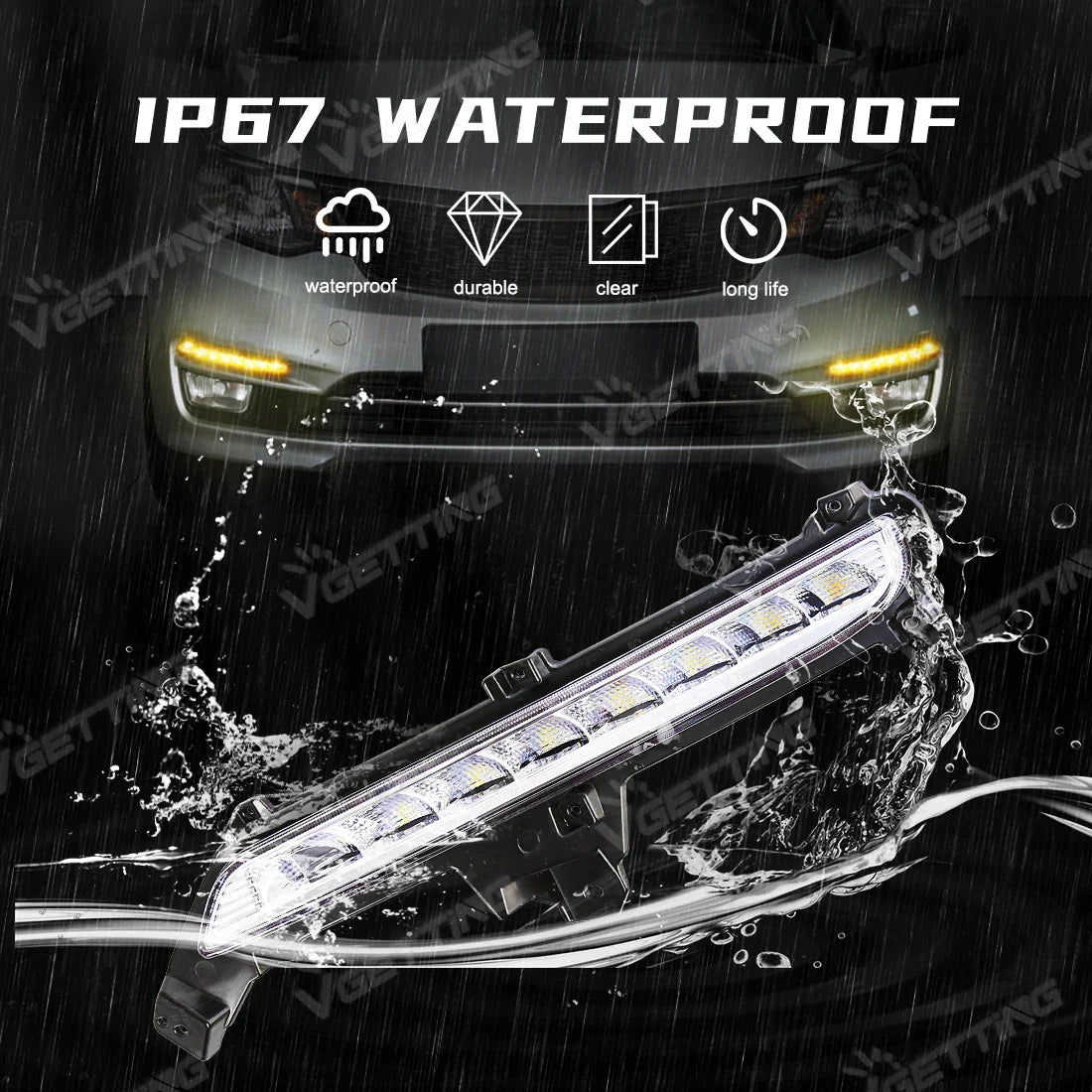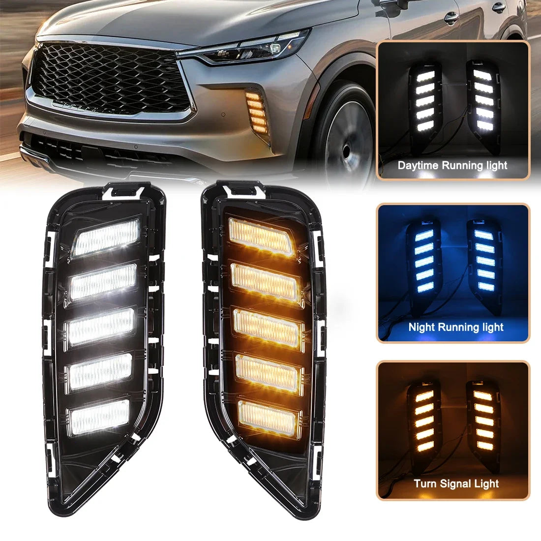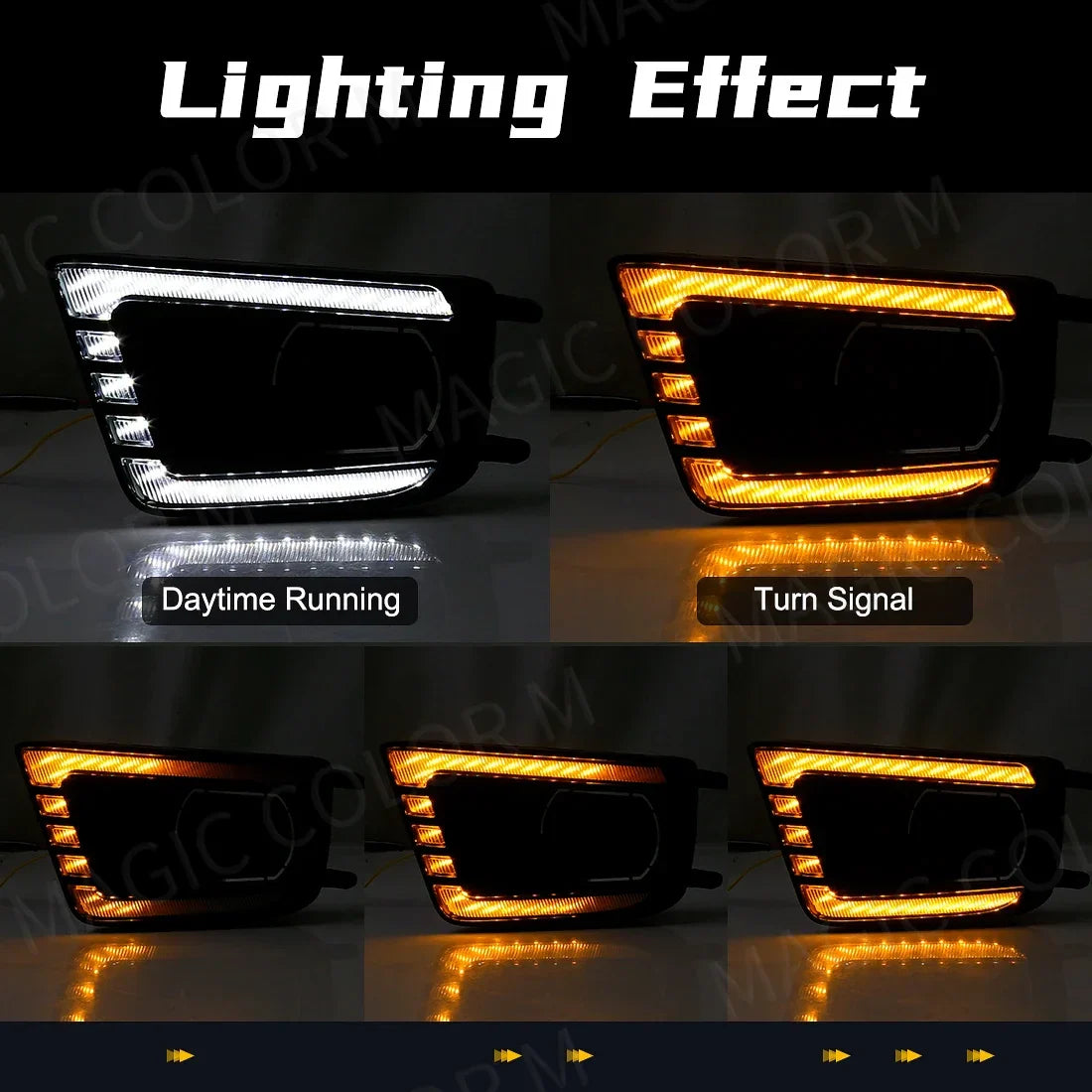 Illuminate your path with confidence as these lights feature dual functions, serving as both Daytime Running Lights (DRL) and turn signals. Crafted from high-quality ABS material and equipped with advanced LED technology, these lights are built to last and provide reliable performance.