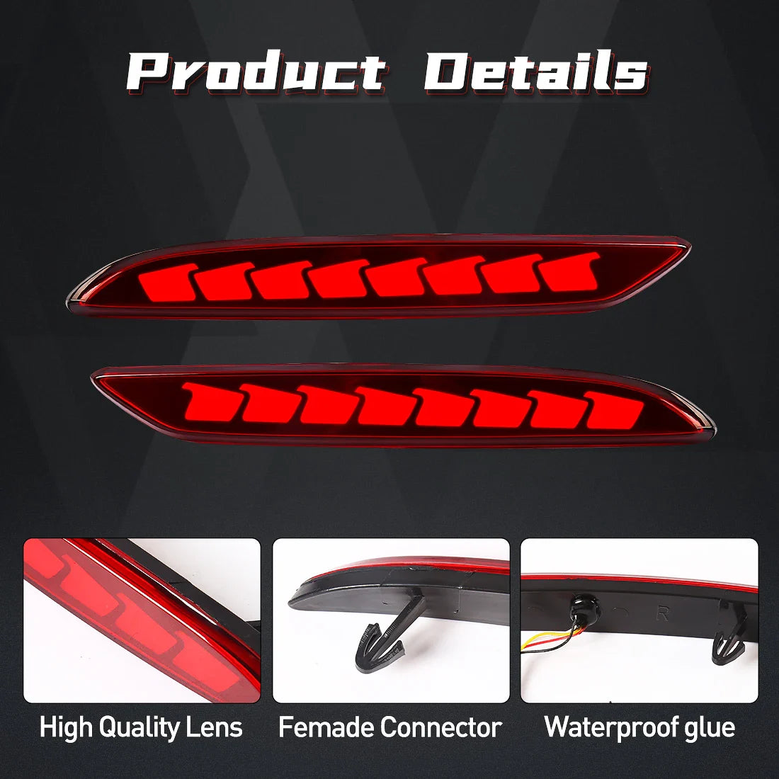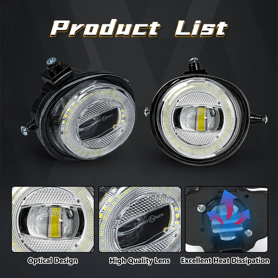 With a sleek black color finish, these lights seamlessly blend in with your vehicle's aesthetics, adding a touch of modern sophistication. The certification of CCC ensures that these lights meet the highest quality standards, giving you peace of mind while on the road.