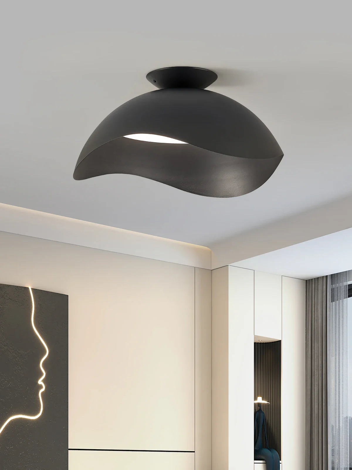 Crafted with high-quality materials such as ABS and plastic, this ceiling light boasts a sleek and ultra-thin design, ensuring a sophisticated look that complements any decor. The frosted finish adds a touch of elegance, while the black shell color exudes modernity and style.