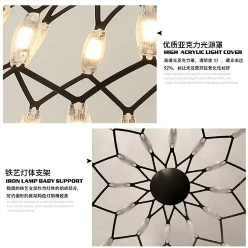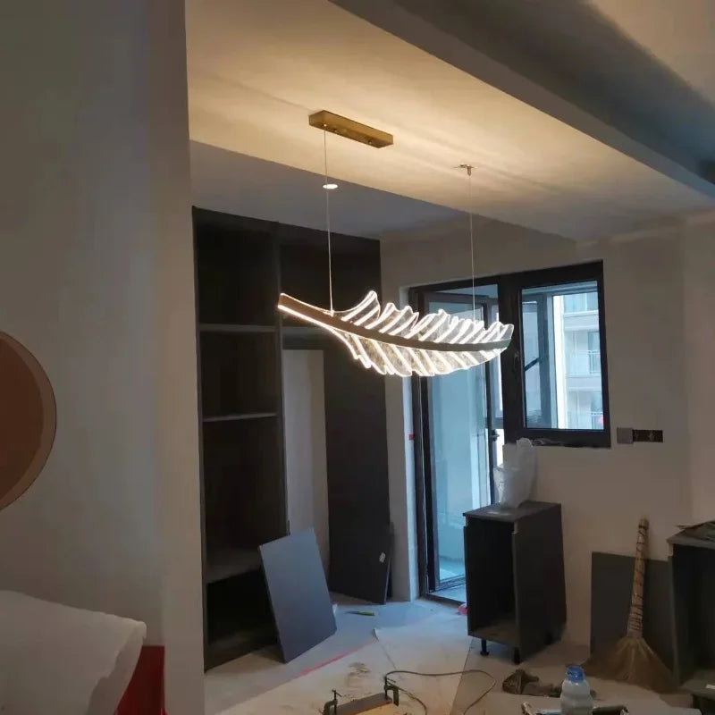 Elevate your living space with the Ljojo™ Modern Feather LED Chandelier, a stunning acrylic hanging lamp that adds a touch of sophistication to any interior. This exquisite light fixture is designed with a sleek iron body, ensuring durability and style that will last for years to come.