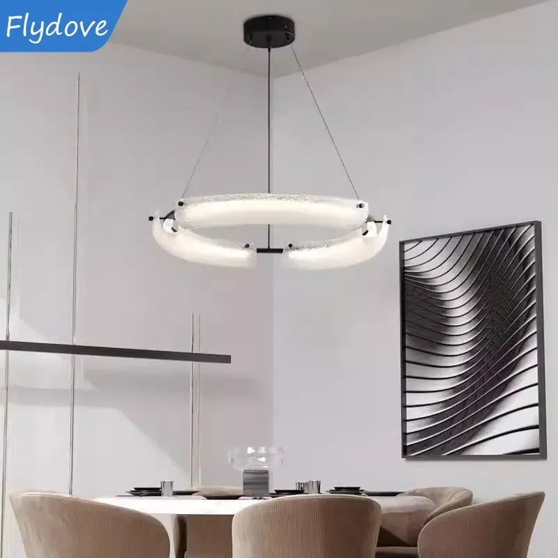 Ljojo™ Modern Feather LED Chandelier Acrylic Hanging Lamp Dimmable Interior Light Fixture