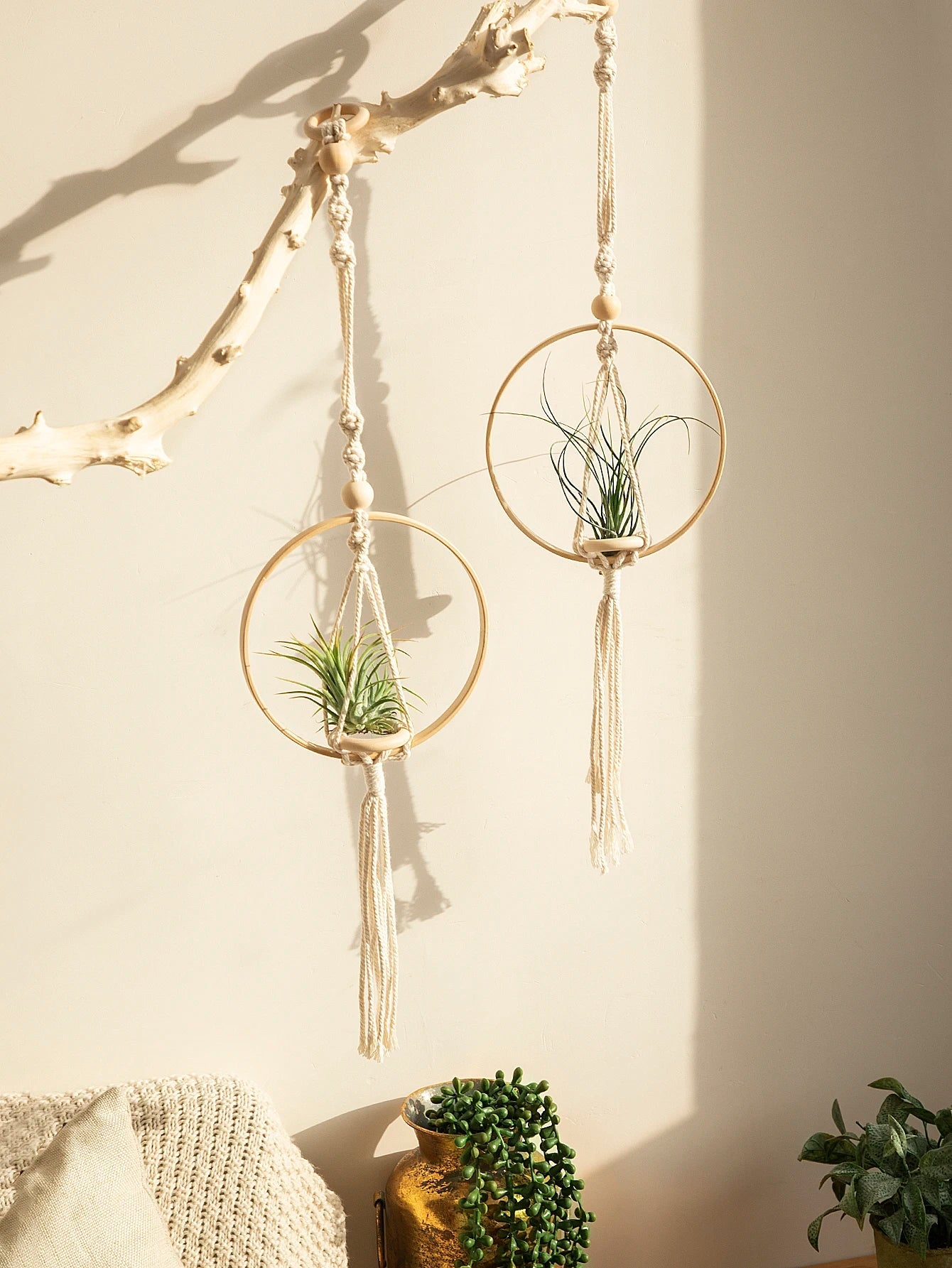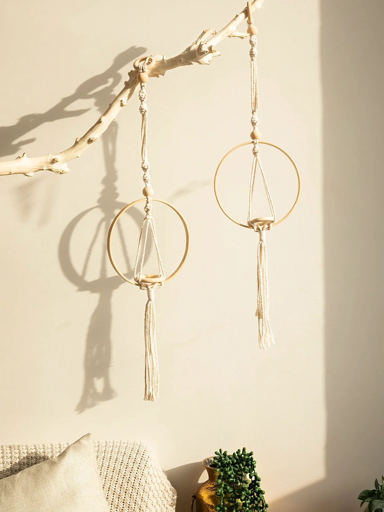 Crafted from high-quality wood and cotton materials, this handmade macrame floating shelf is designed with multiple layers to choose from, providing you with ample space to display your favorite decor items. Whether you're looking to add a cozy touch to your living room, bedroom, or even your office, this shelf is the perfect choice.