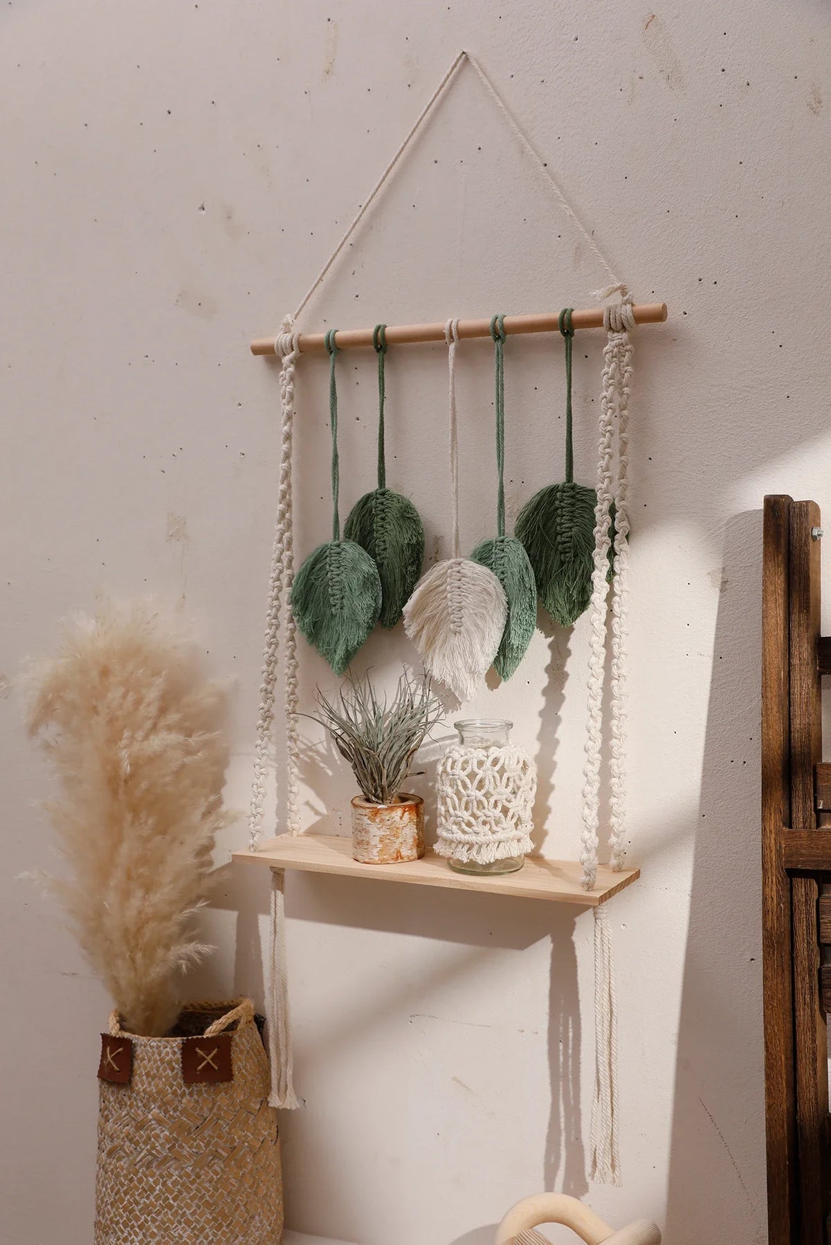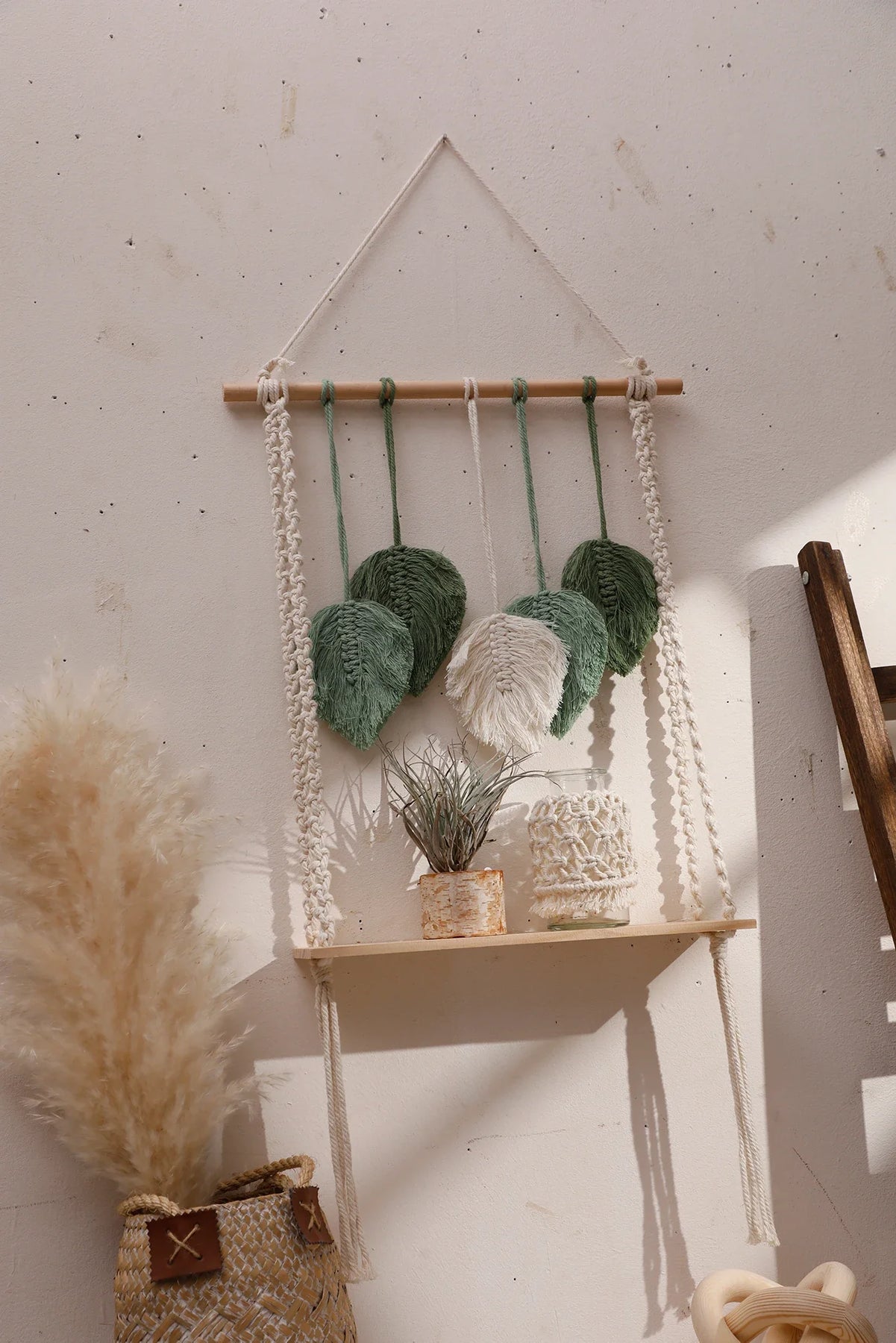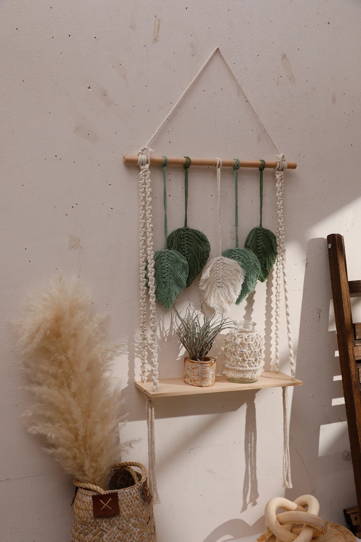 Ljojo™ Boho Wood Corner Shelf Display Stand Handmade Macrame Floating Shelves