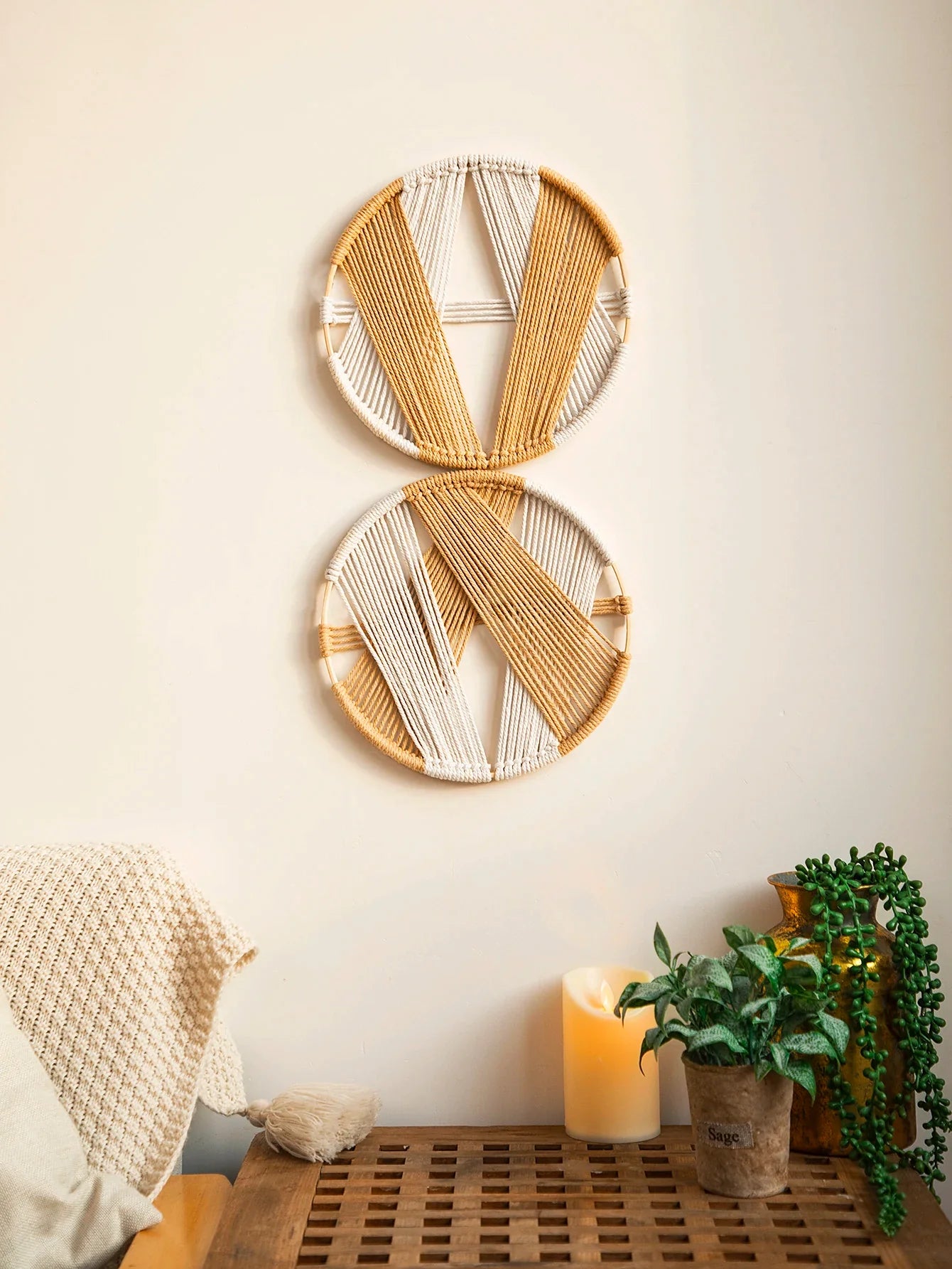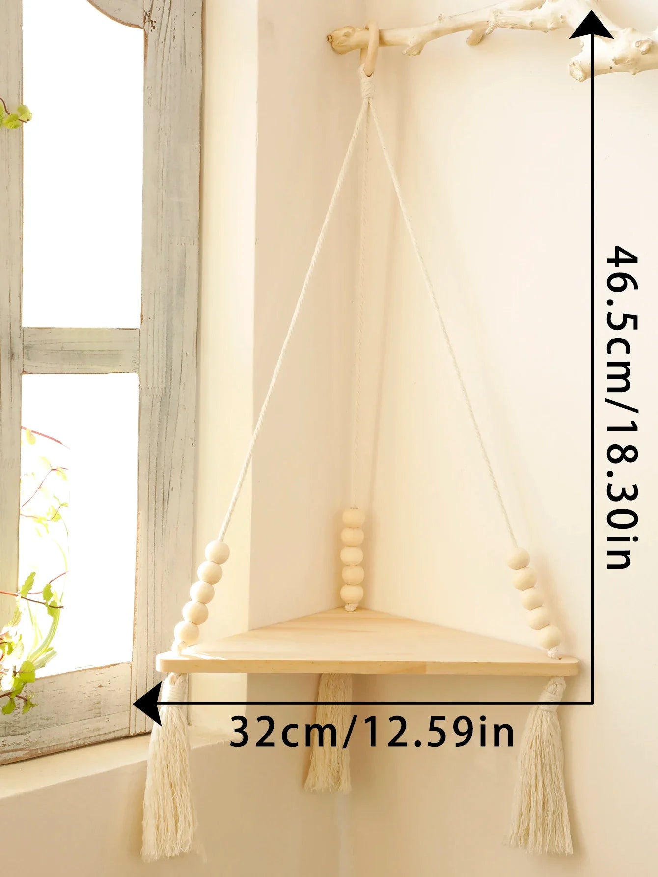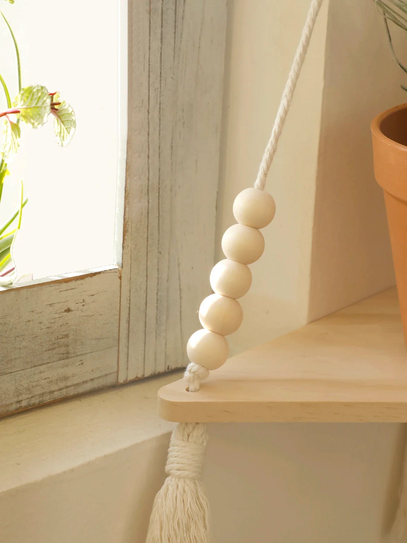 Ljojo™ Boho Wood Corner Shelf Display Stand Handmade Macrame Floating Shelves