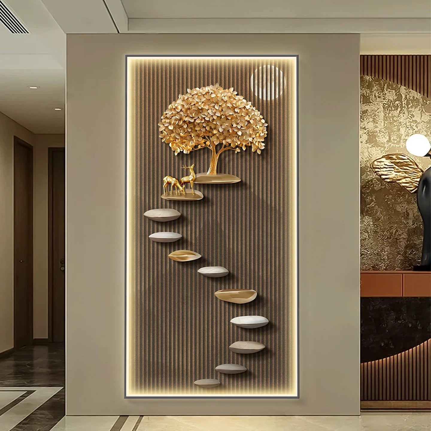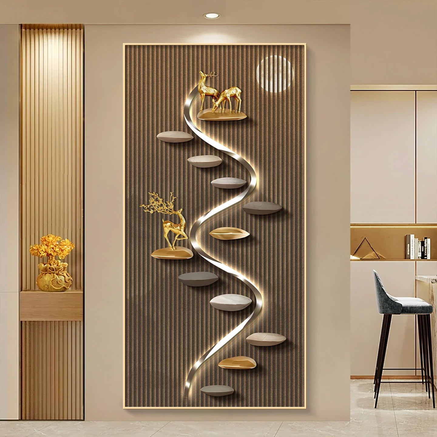 Elevate your space with our Ljojo™ Crystal Porcelain Luxury Abstract Modern Hallway Hanging Painting & Mural Lamp and enjoy the perfect blend of elegance and innovation in your home.