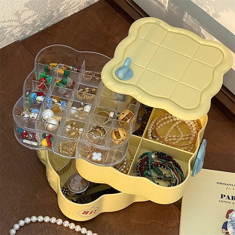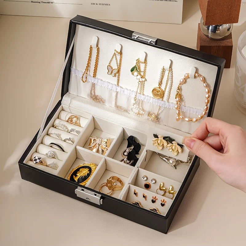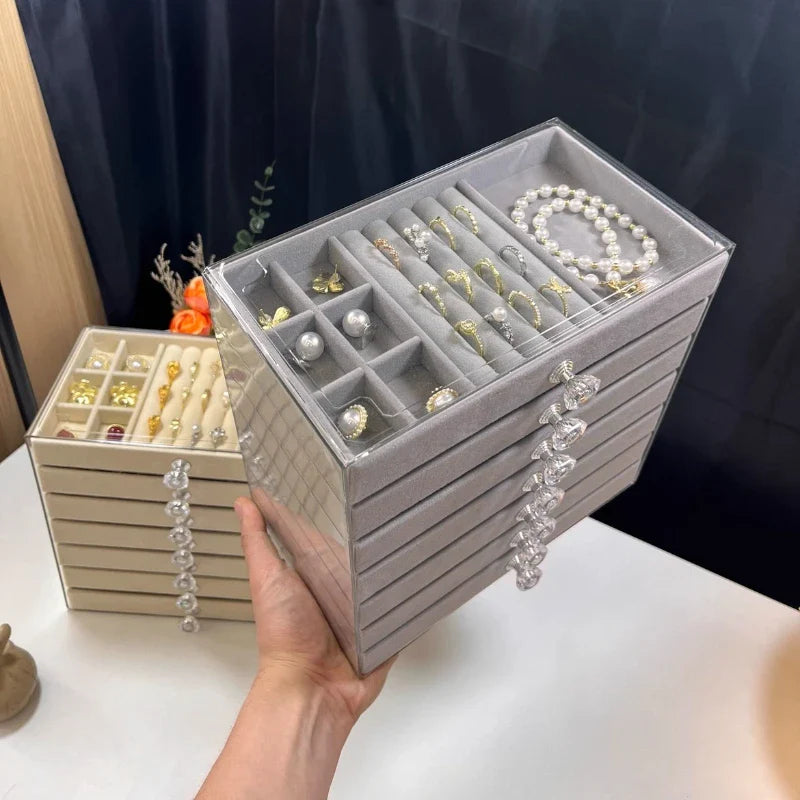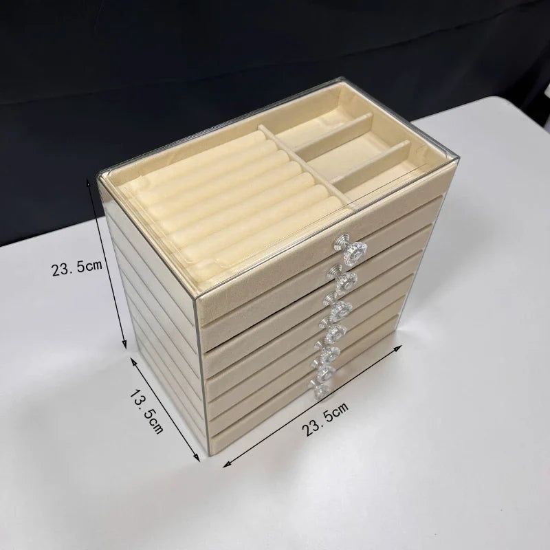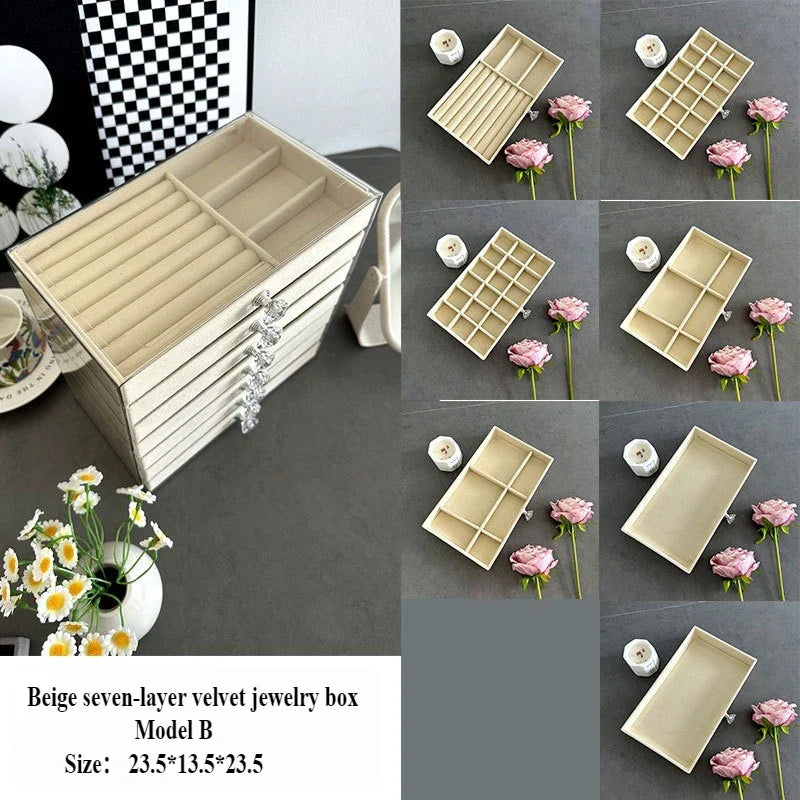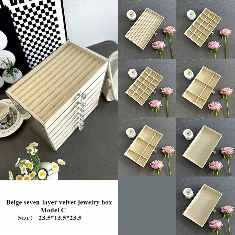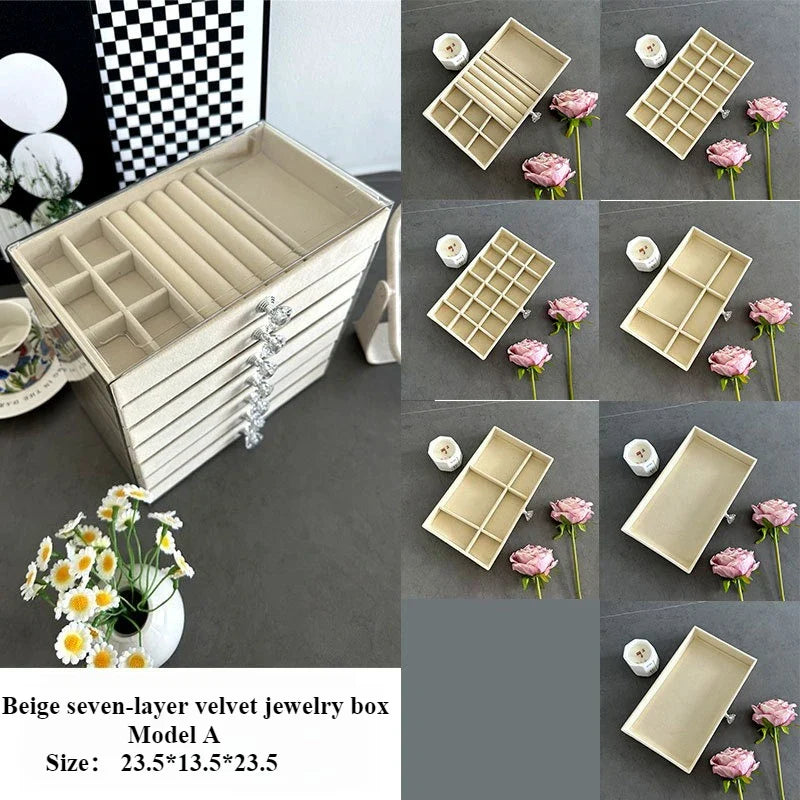 Our New seven-layer jewelry box features a unique design that allows you to organize your rings, necklaces, bracelets, and earrings with ease. The seven layers provide ample space for all your accessories, keeping them neat, tidy, and easily accessible. Say goodbye to tangled necklaces and missing earrings!
