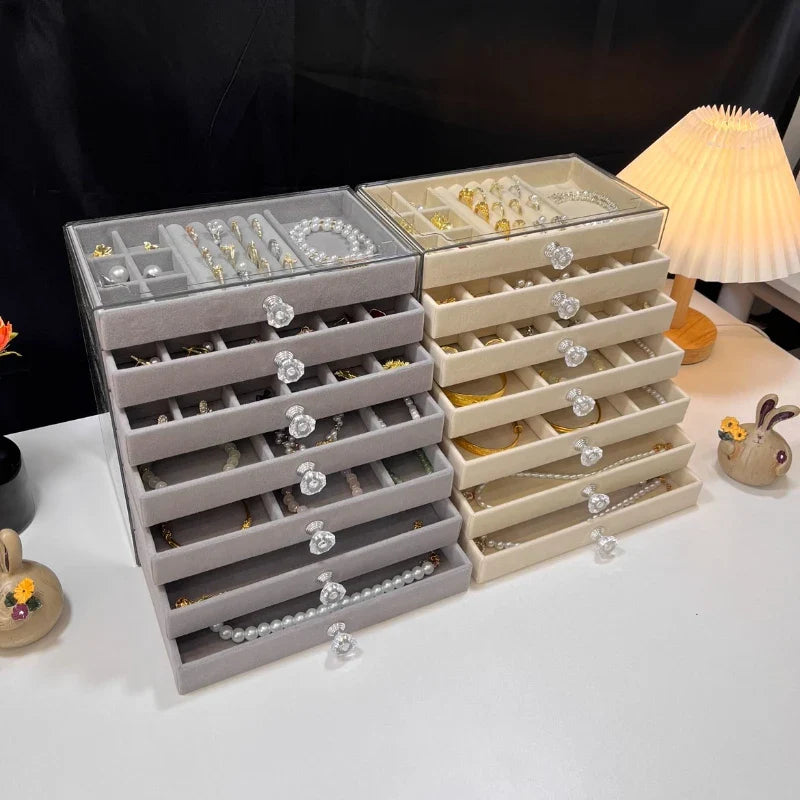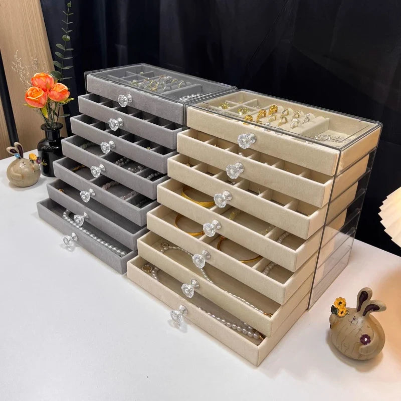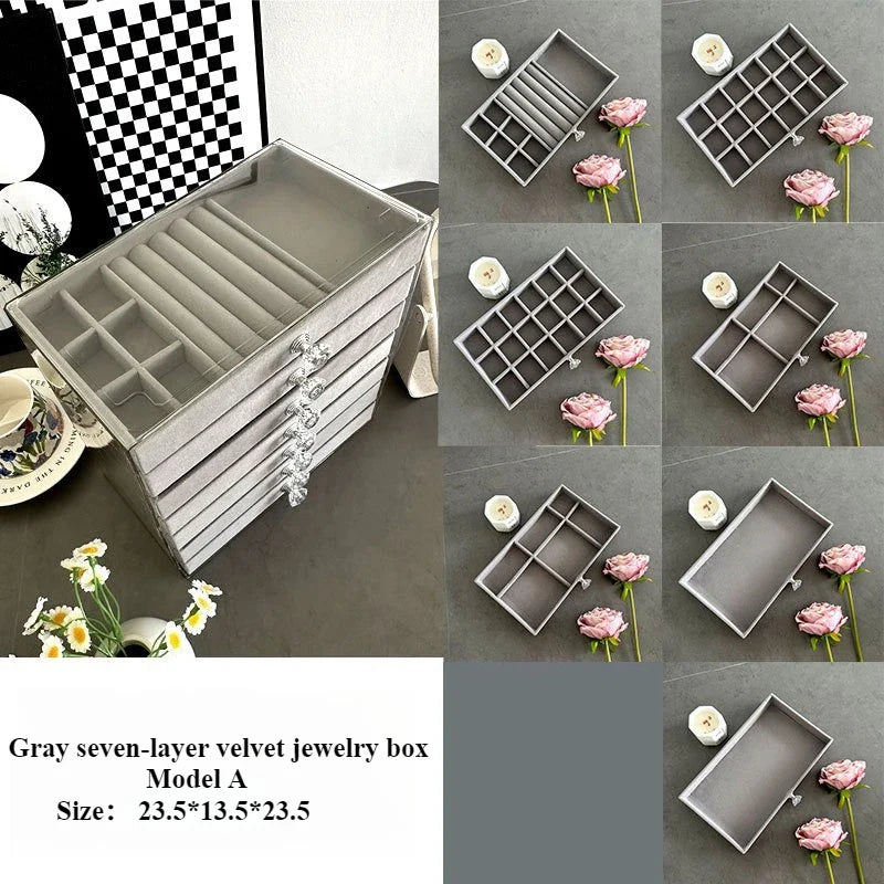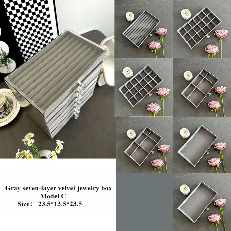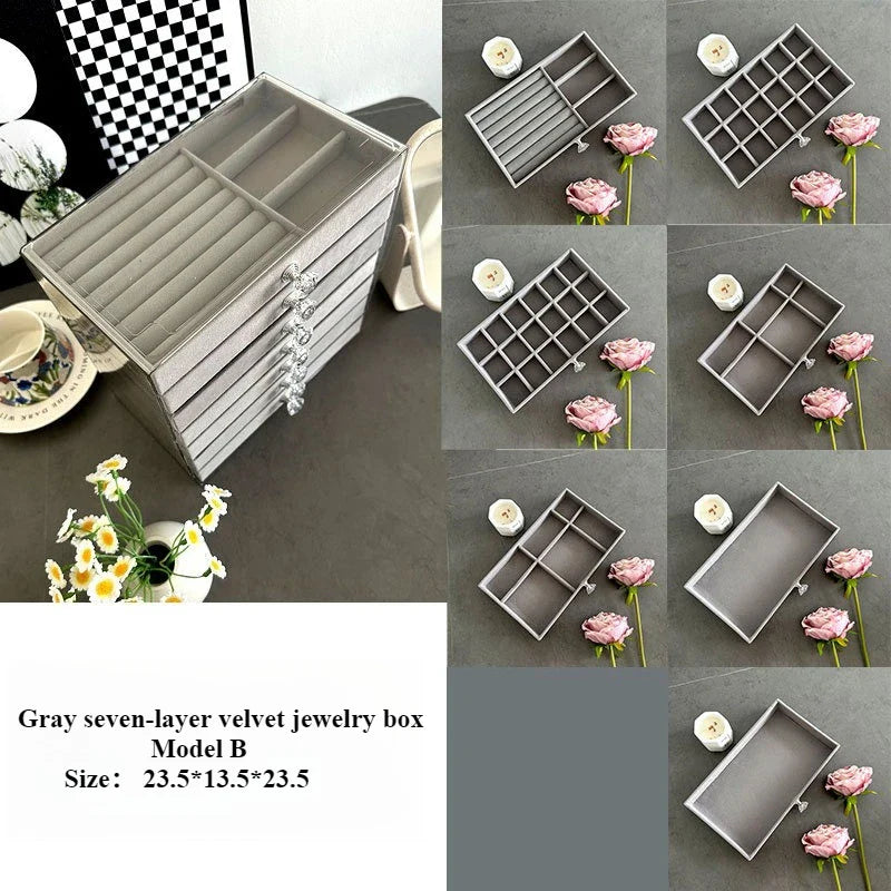 Introducing the Ljojo™ 7-Layer Jewelry Organizer with Grids, Drawer, and Display Rack - the ultimate solution for stylishly storing and displaying your precious jewelry collection. Crafted with the finest quality materials, this jewelry storage box exudes a touch of elegance and sophistication.
