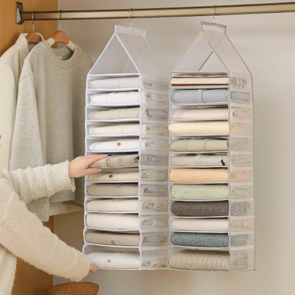 Not only do these clothes organizers maximize space in your closet, but they also add a touch of sophistication to your storage solution. The wardrobe organizer clothes feature a functional and versatile design that is both practical and visually appealing.