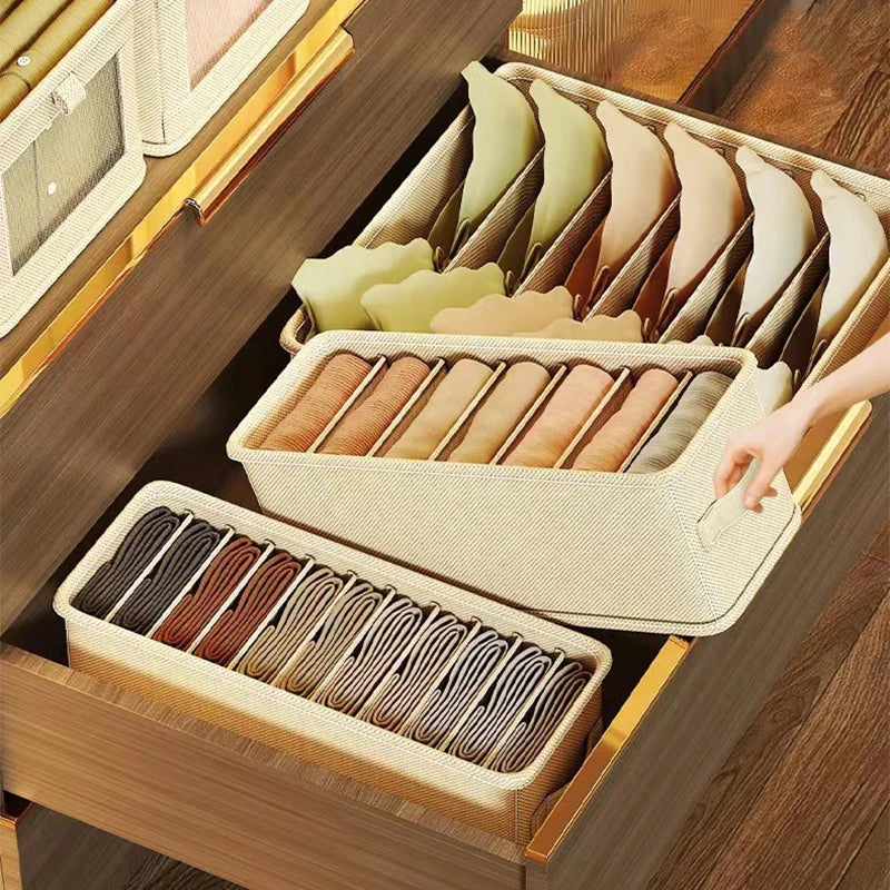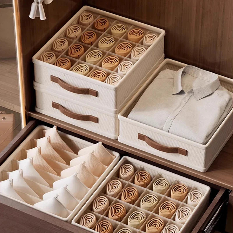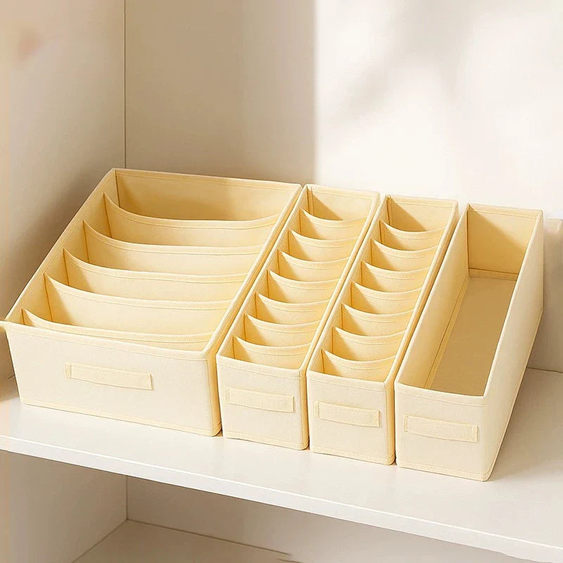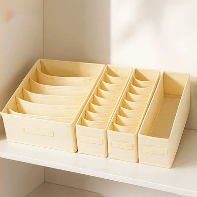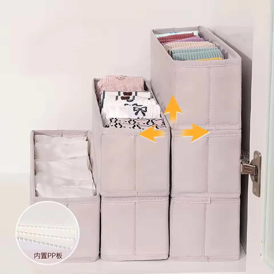 Each box in this set is thoughtfully designed to make your life easier and more organized. From keeping your socks paired to storing your belts and scarves, there's a place for everything in our Ljojo™ Grids Cation PP Organizer Box Set.