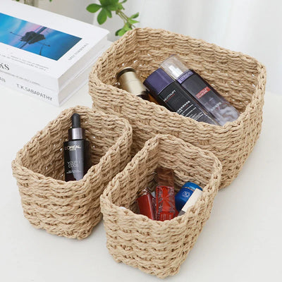 Ljojo™ Grass Woven Storage Baskets: Organize, Decorate, Picnic, Fruit, Office Storage Box