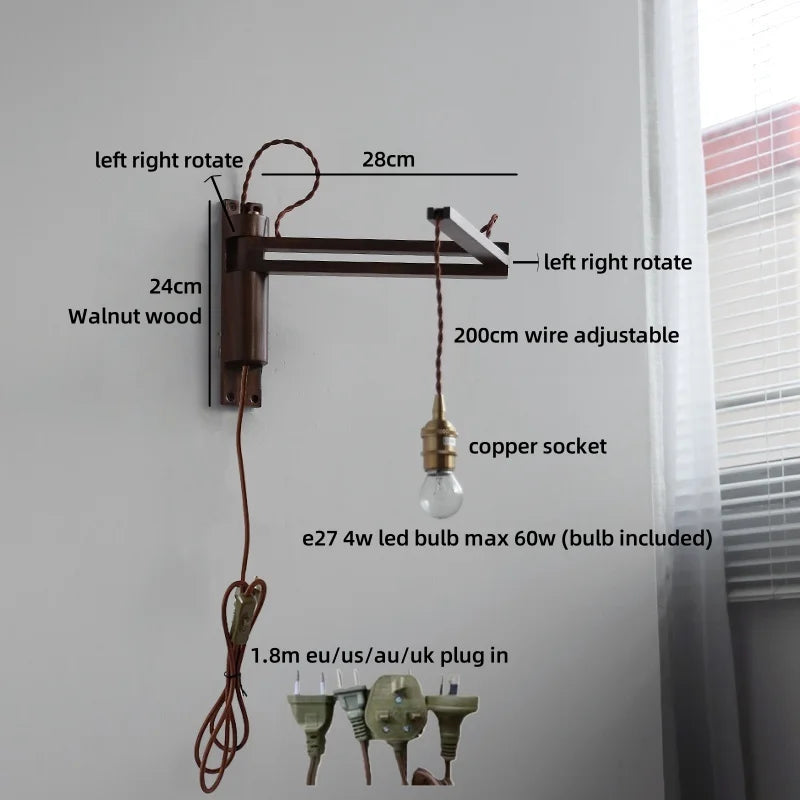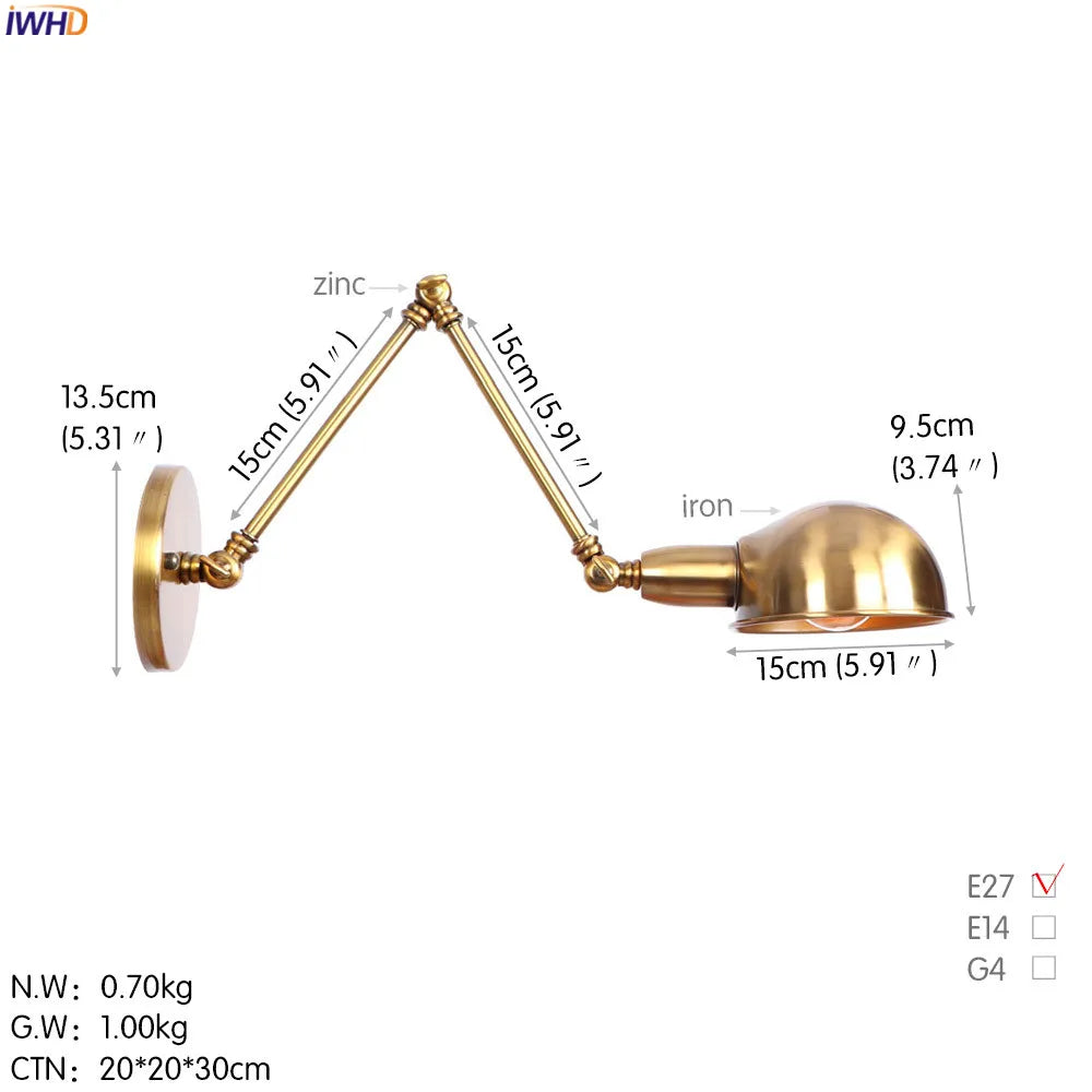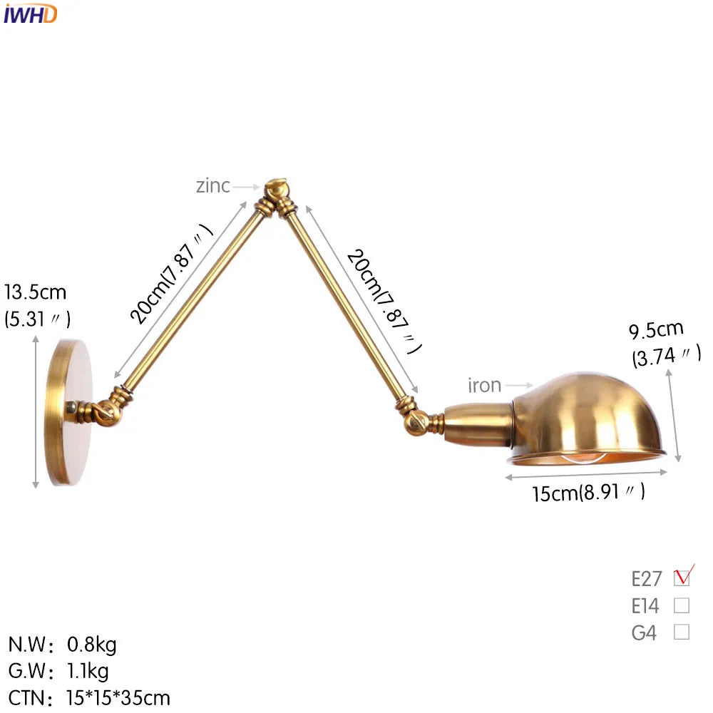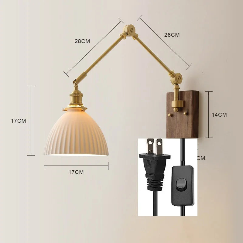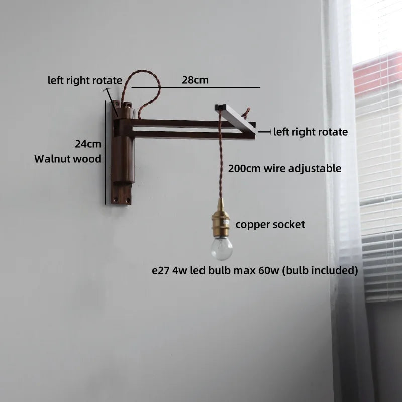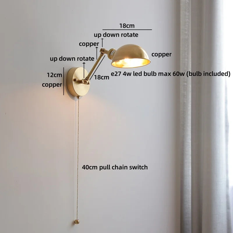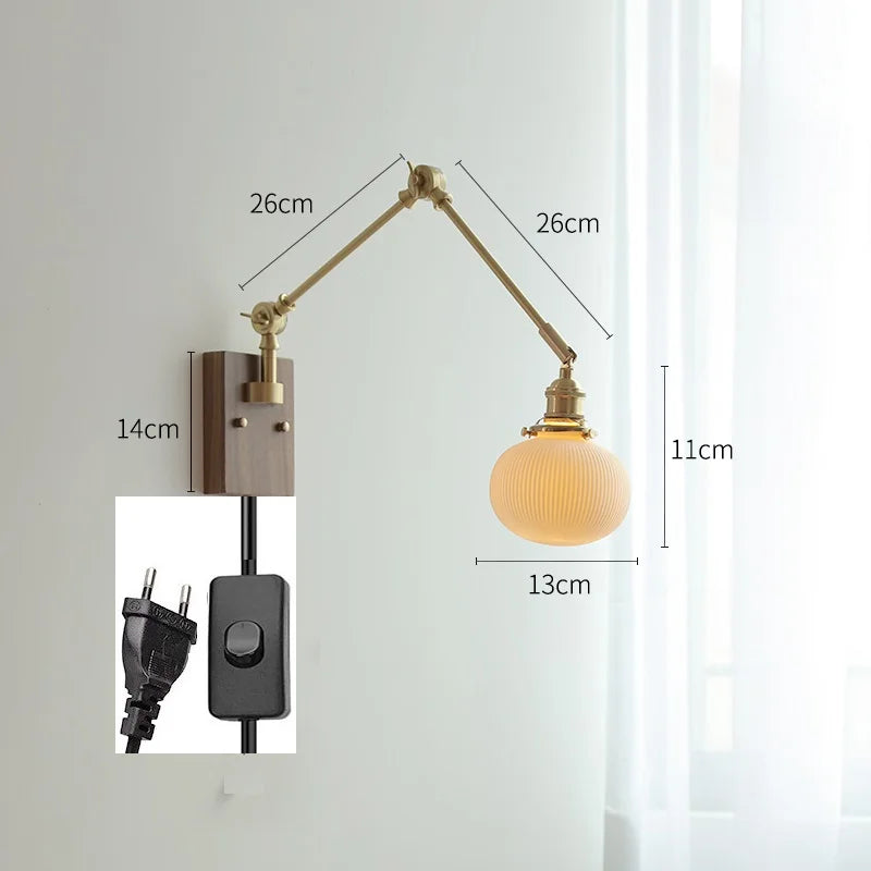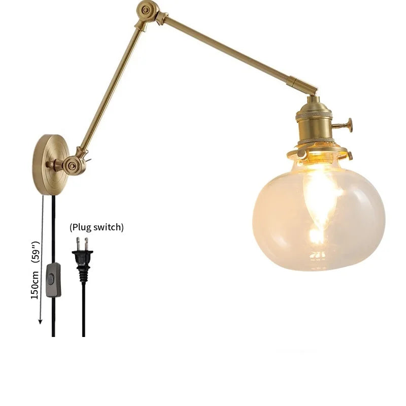 Modern Ljojo™ Bedside LED Wall Lamps, Swing Arm E27 Bulb, Gold Copper Finish