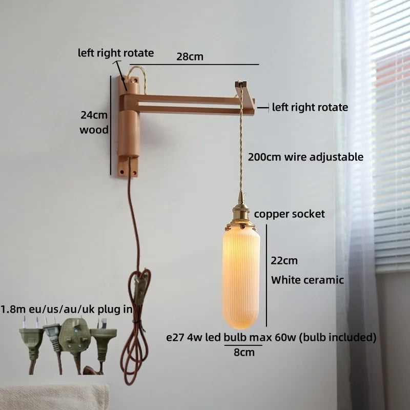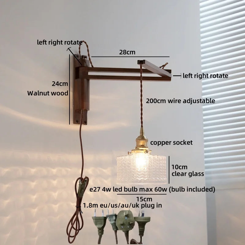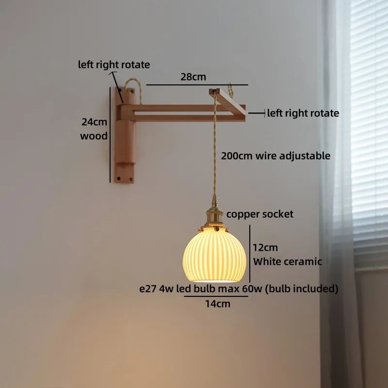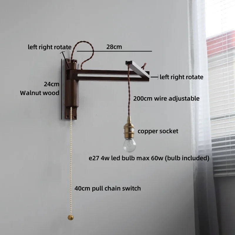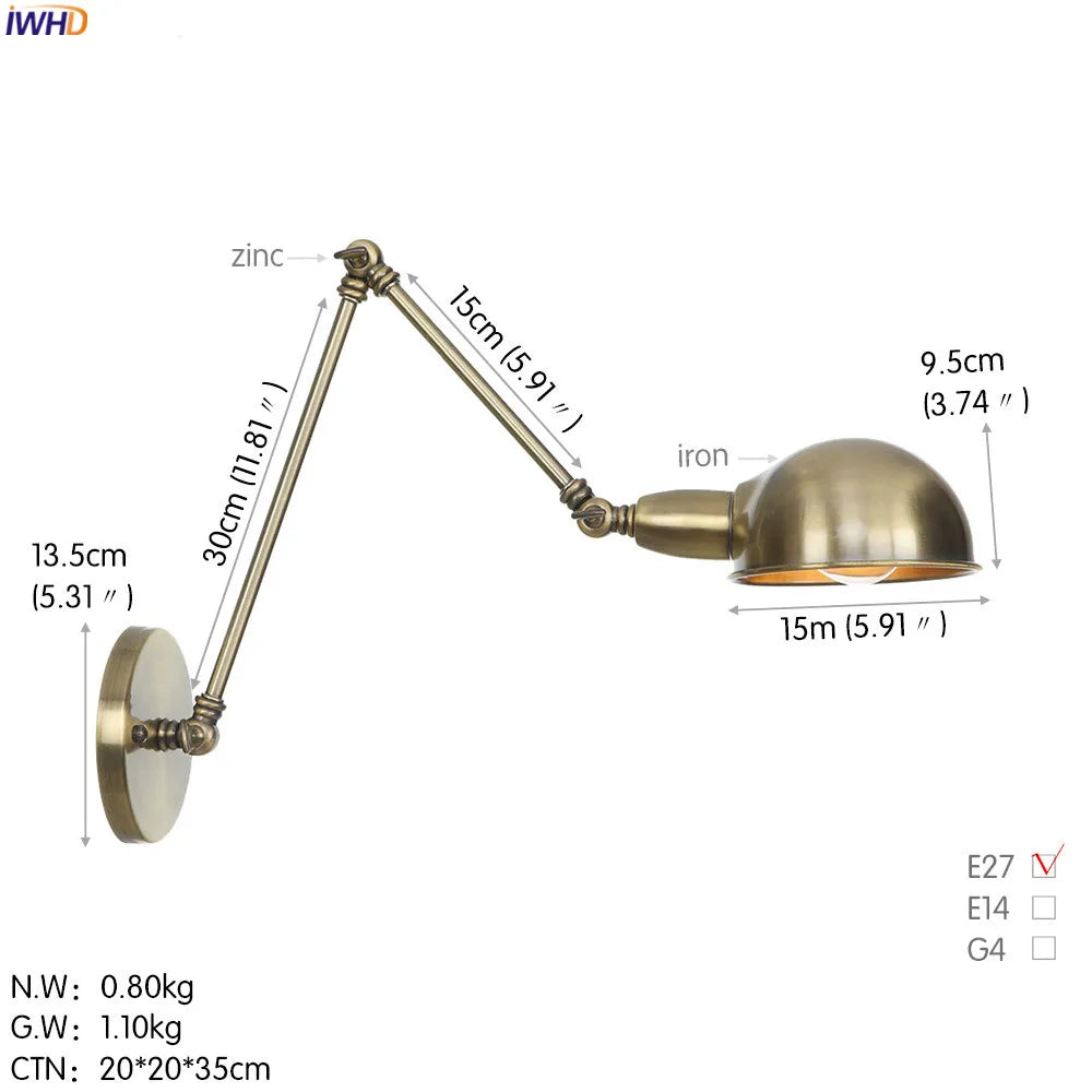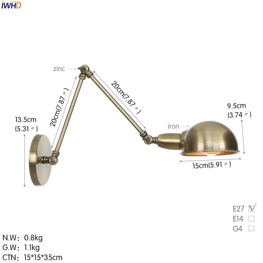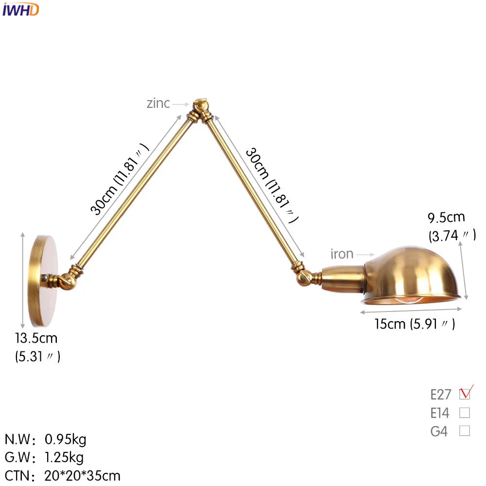 Modern Ljojo™ Bedside LED Wall Lamps, Swing Arm E27 Bulb, Gold Copper Finish