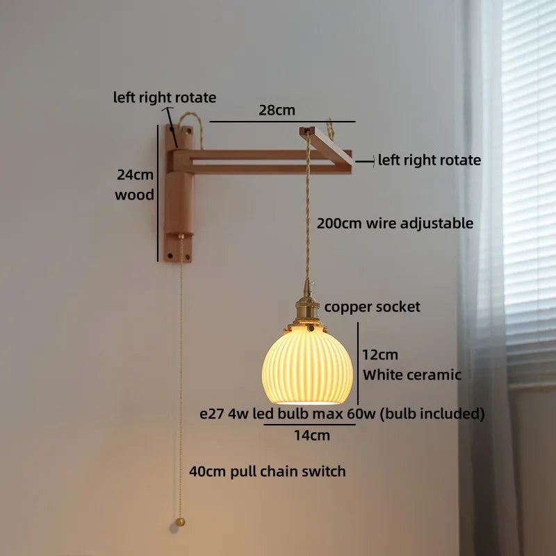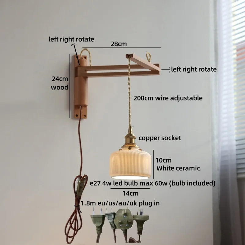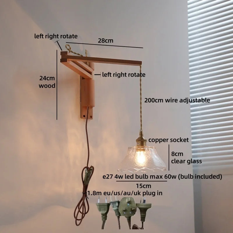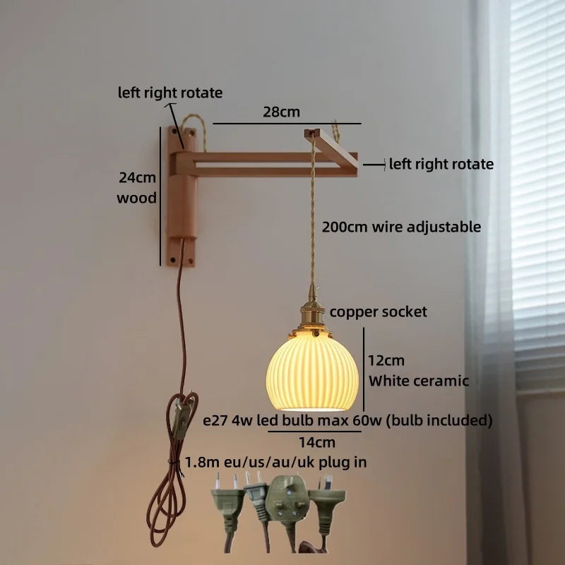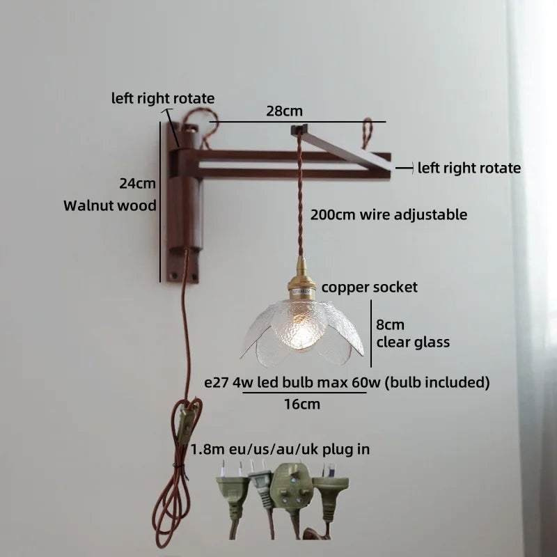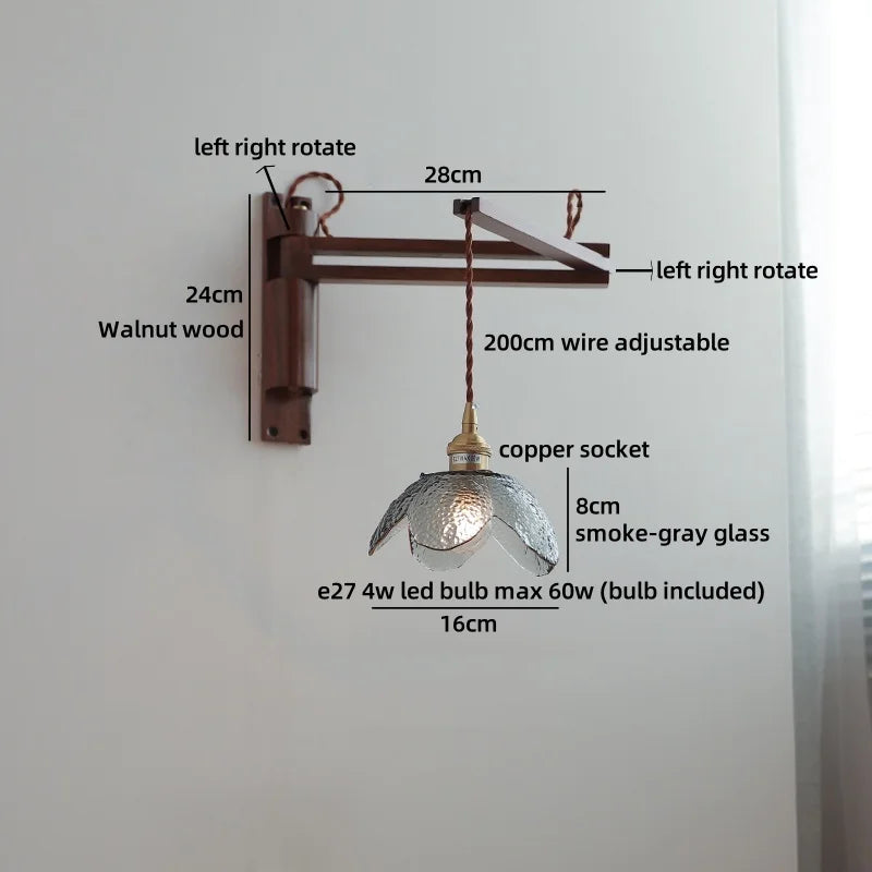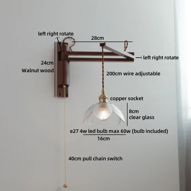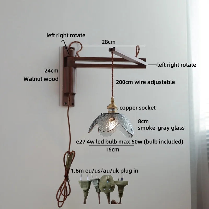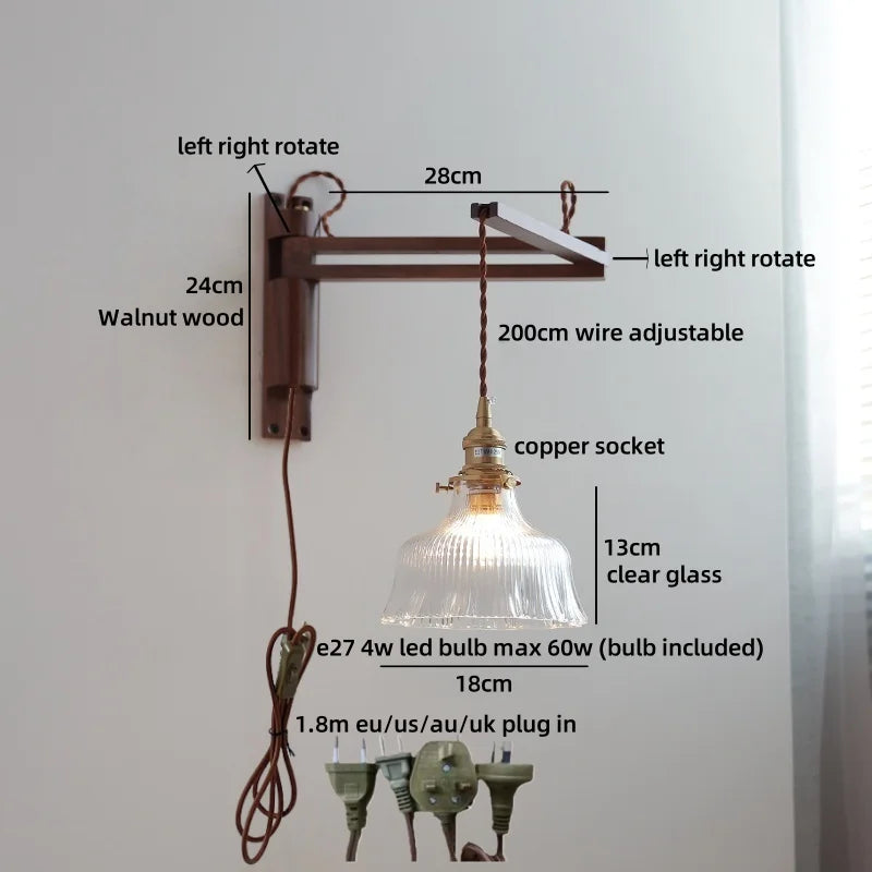 Modern Ljojo™ Bedside LED Wall Lamps, Swing Arm E27 Bulb, Gold Copper Finish