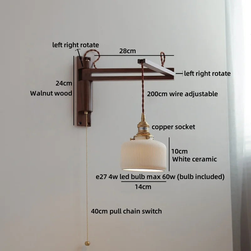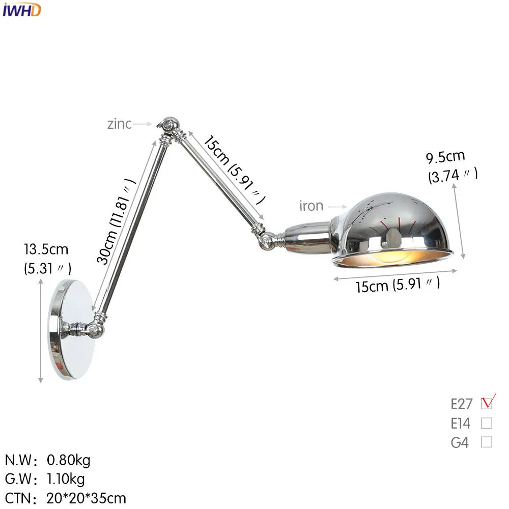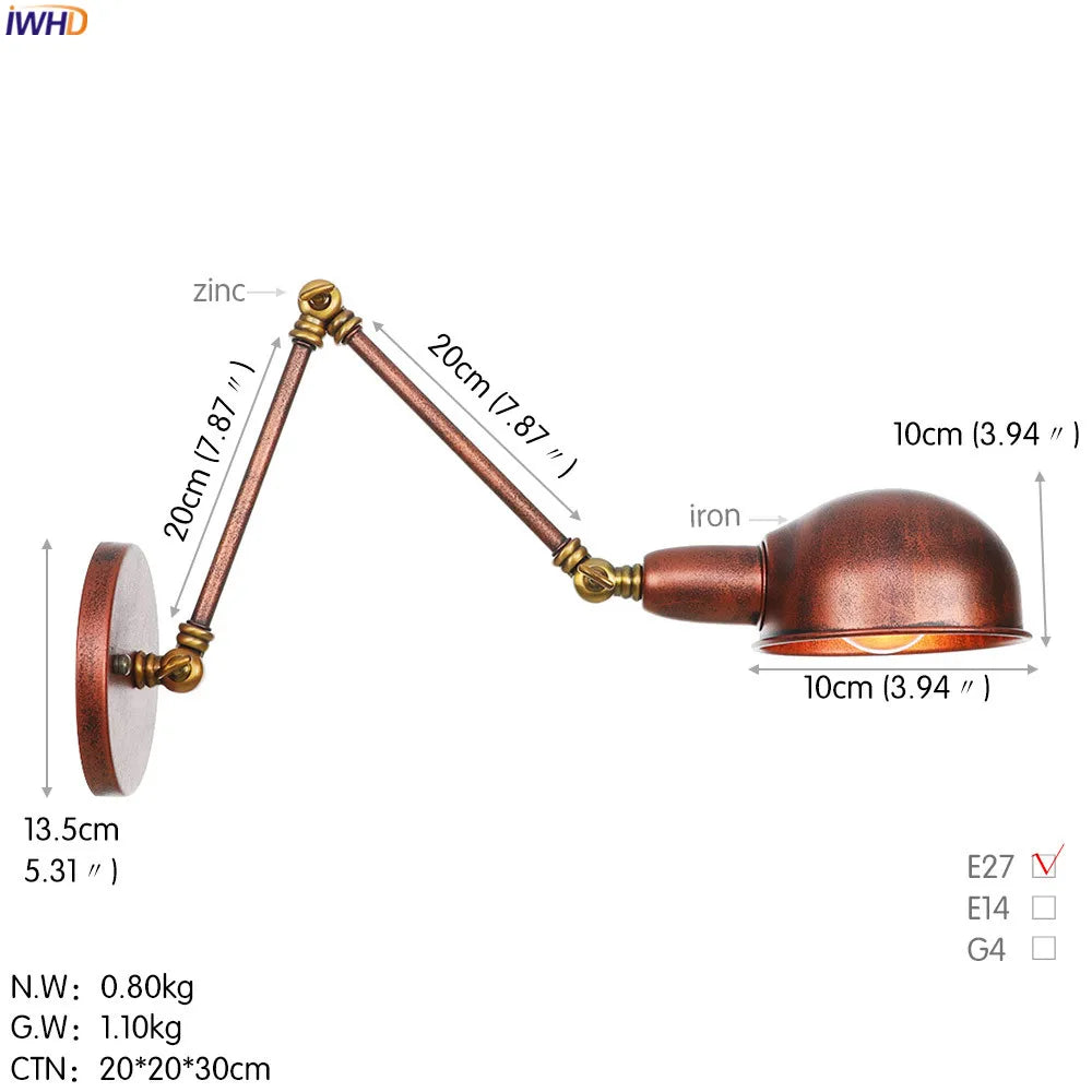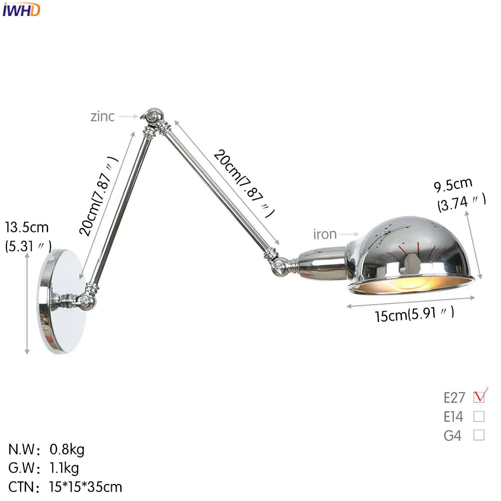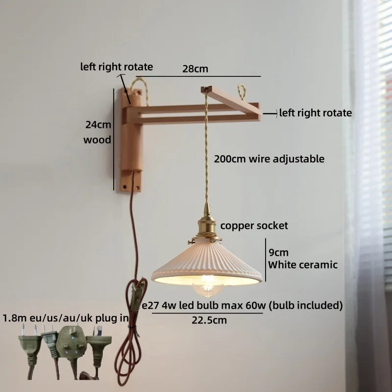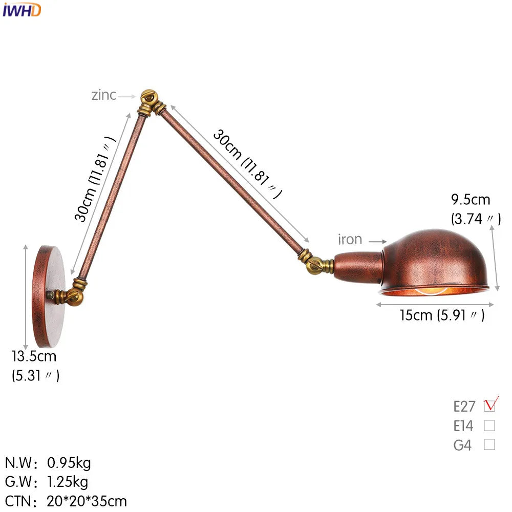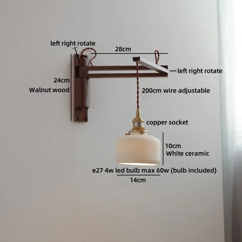 Modern Ljojo™ Bedside LED Wall Lamps, Swing Arm E27 Bulb, Gold Copper Finish