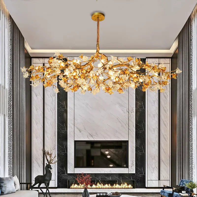Ljojo™ Crystal Chandelier: Modern Art Branch Design for Living Room, Restaurant, Villa - Luxury Copper Decor