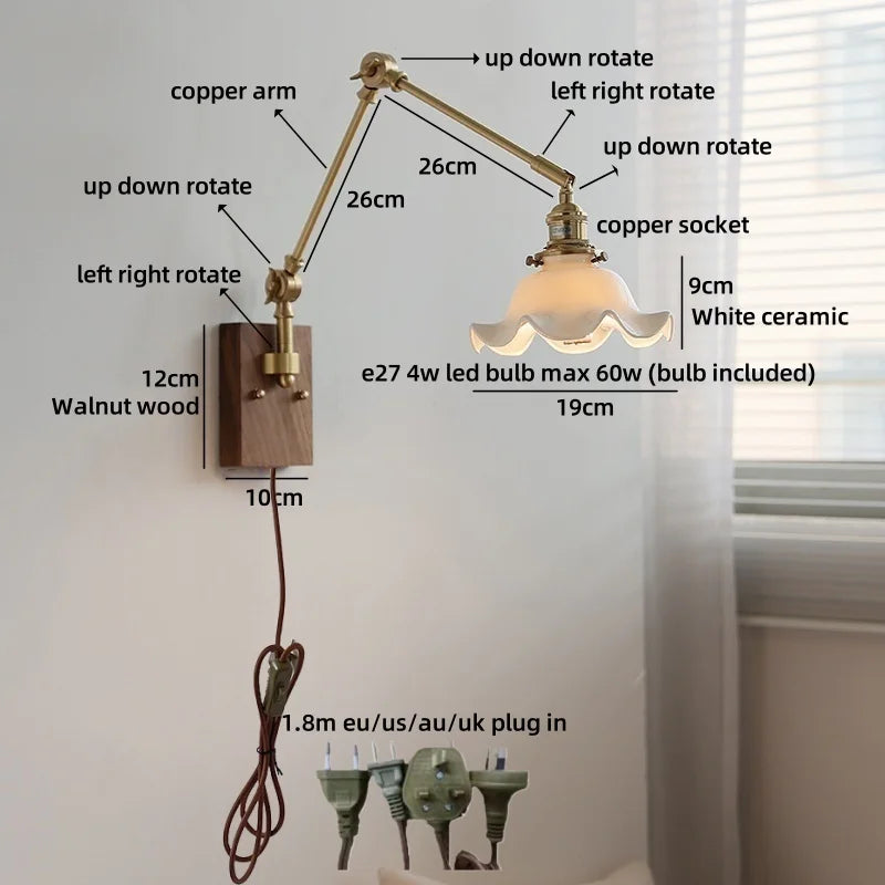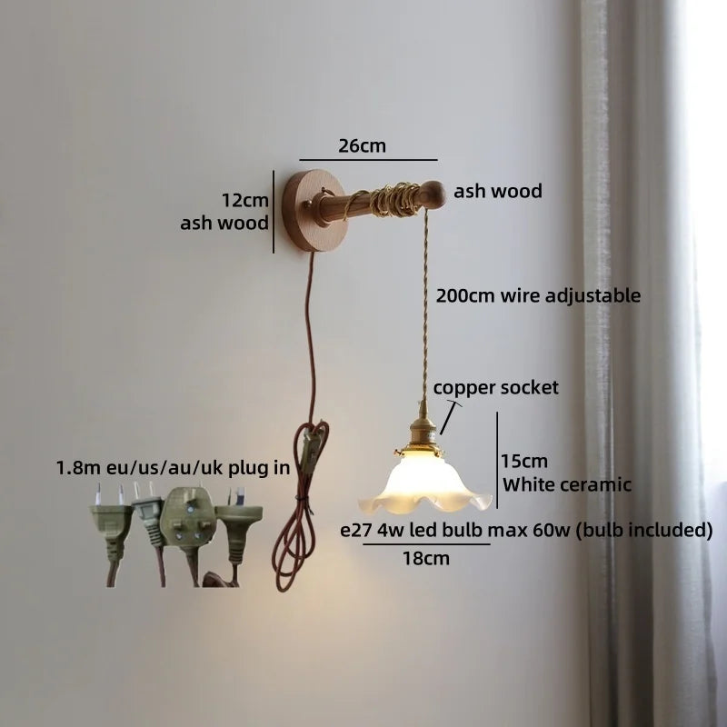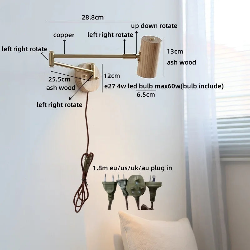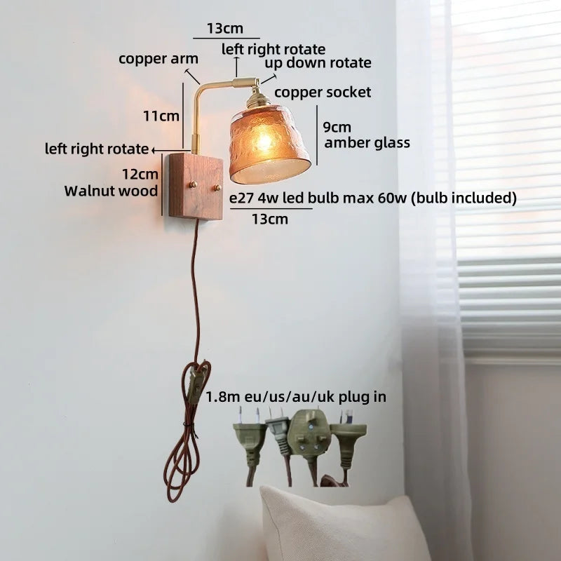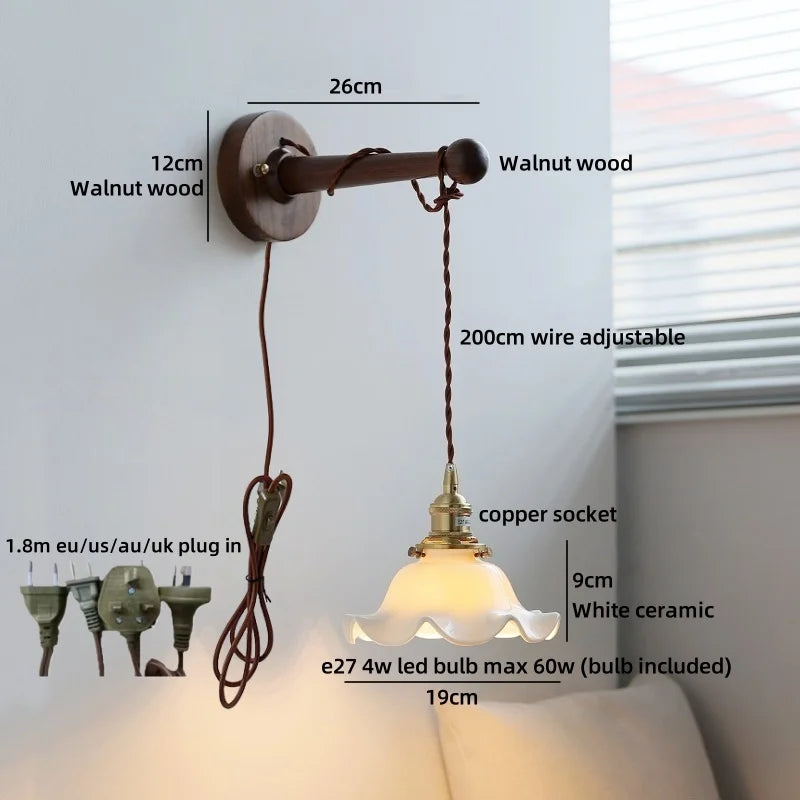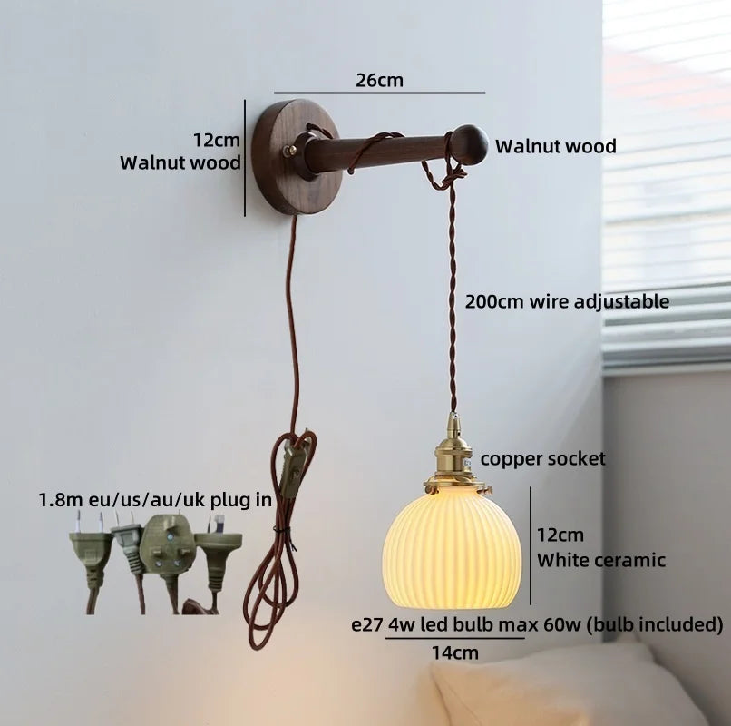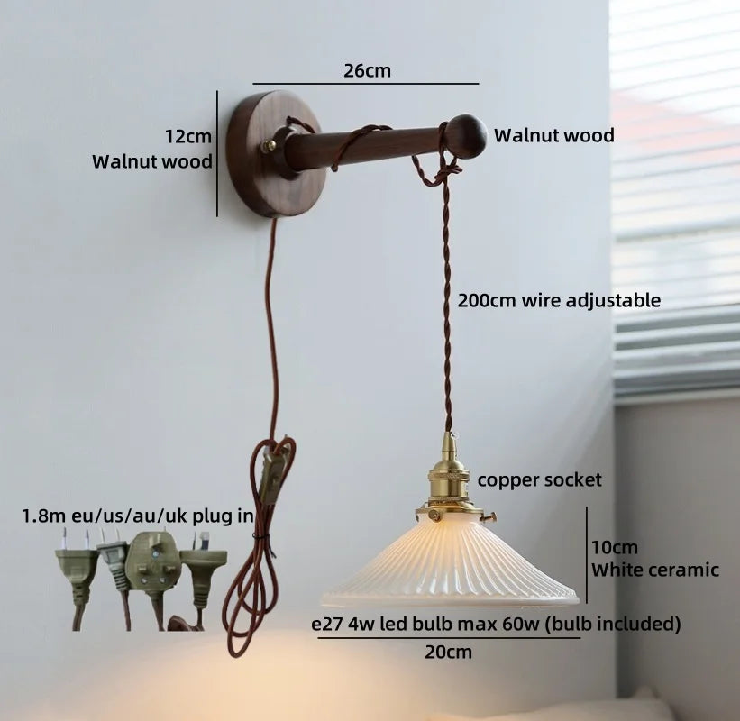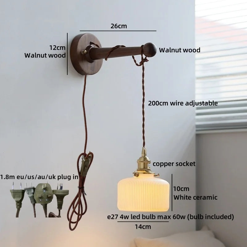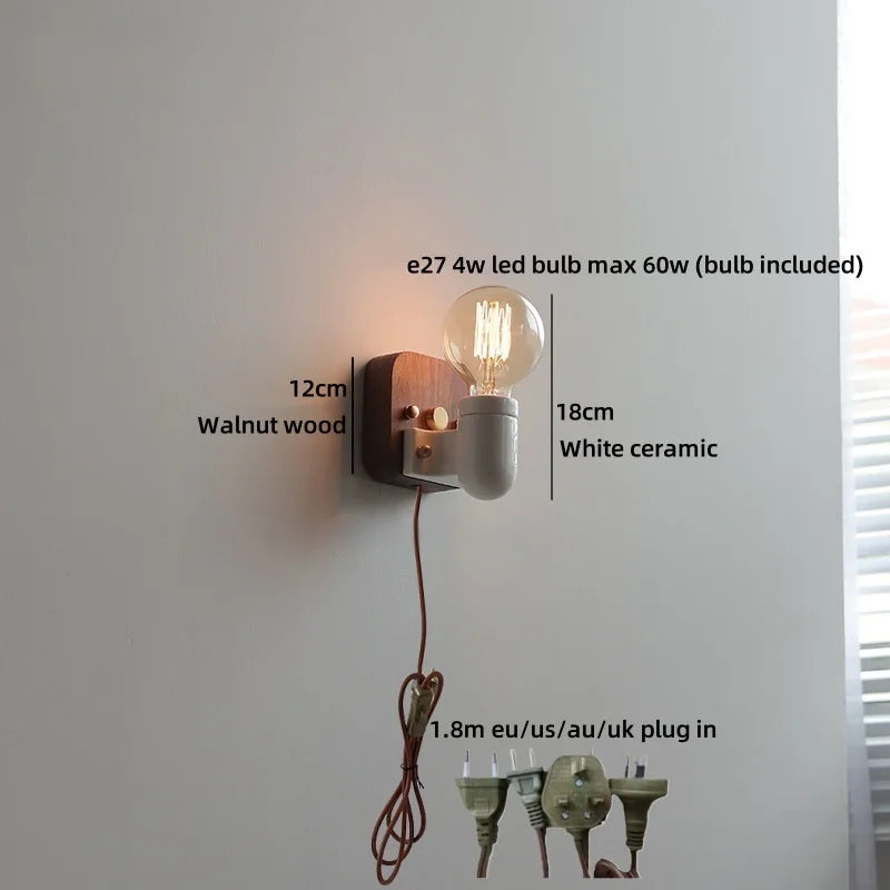 Ljojo™ Walnut Wood LED Wall Lamps Interior Bedroom Lighting