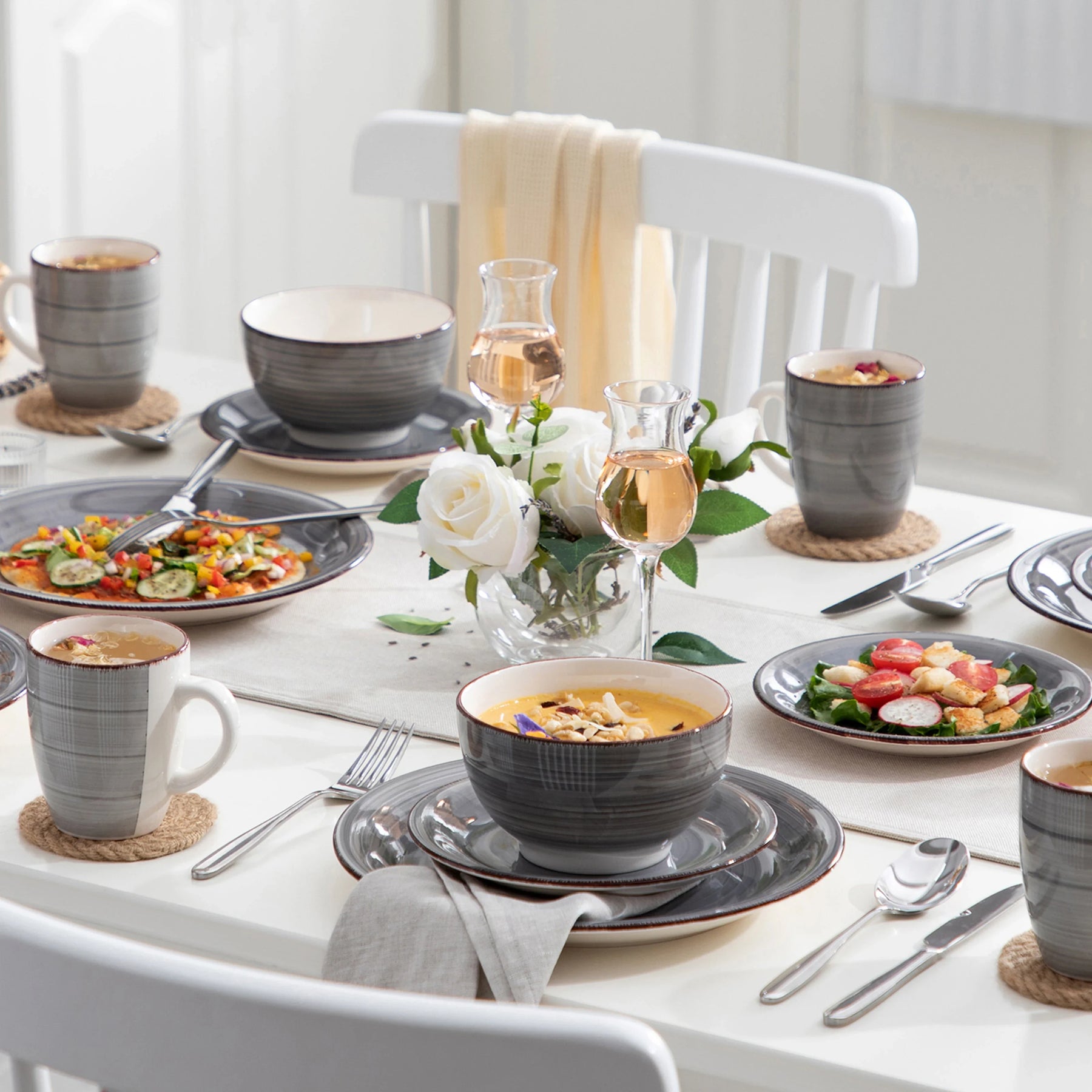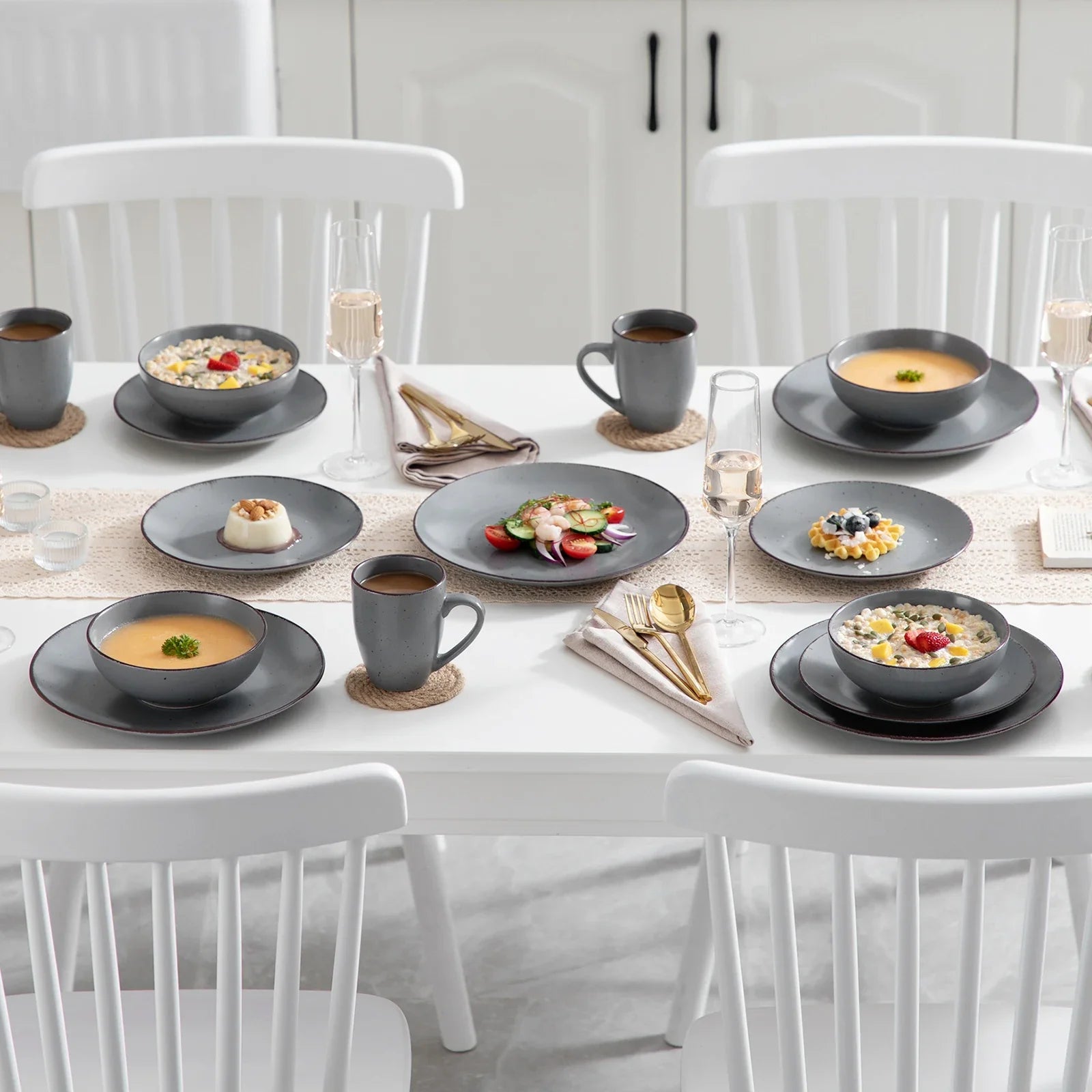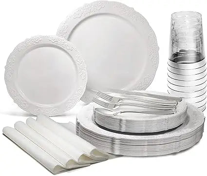Our Creative Snack Plate, also known as the Silver Cafe Tray, is perfect for serving hors d'oeuvres, appetizers, or desserts. The set also includes a Dinner plate set, ideal for everyday use or special occasions. With Serving dishes sets that exude sophistication, you can stylishly present your culinary creations.