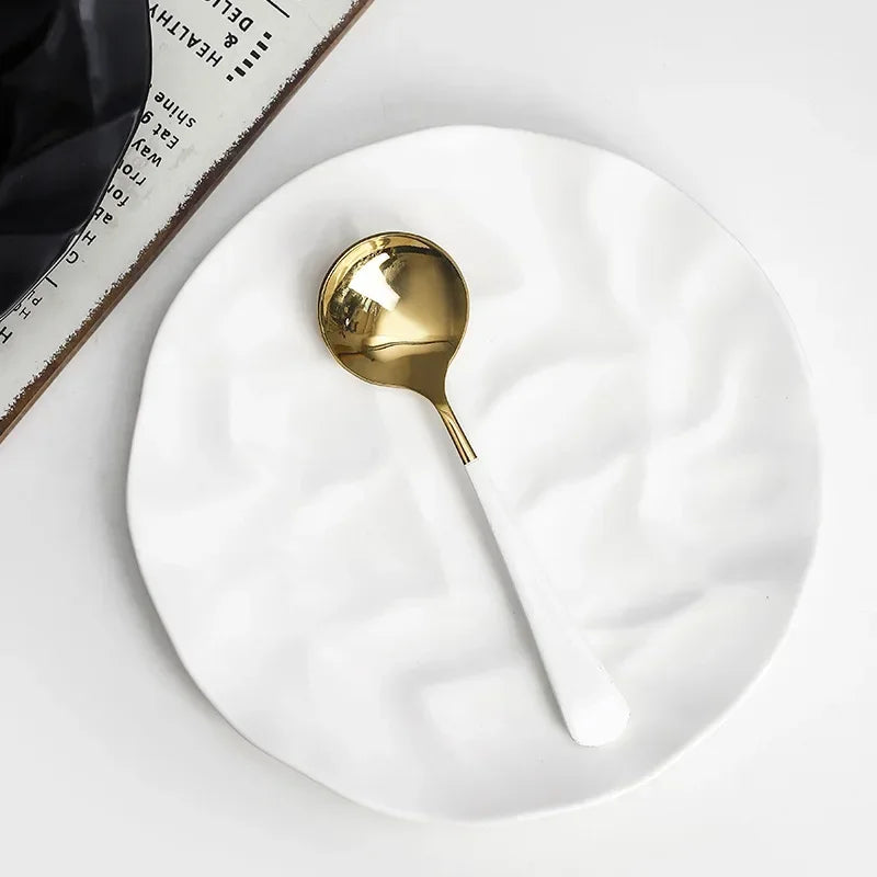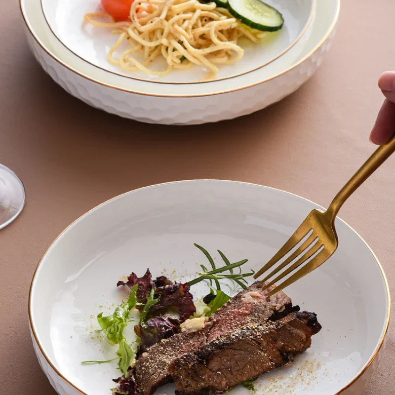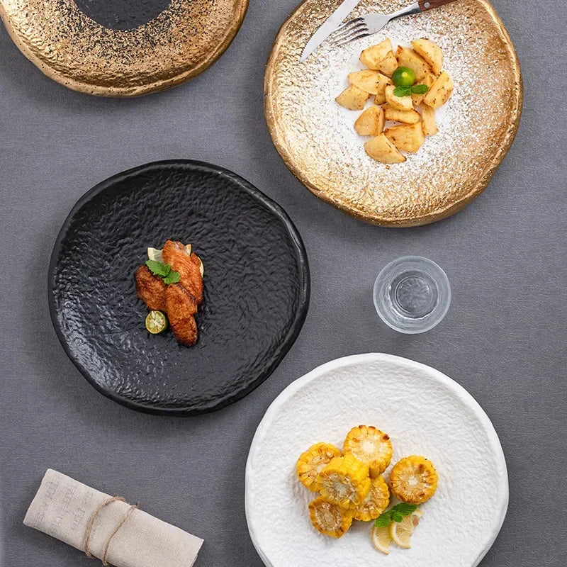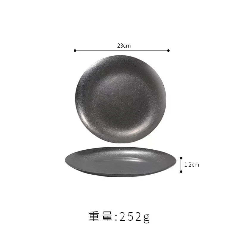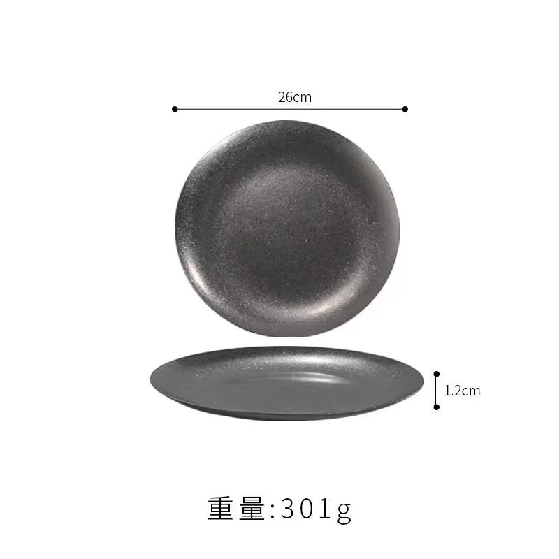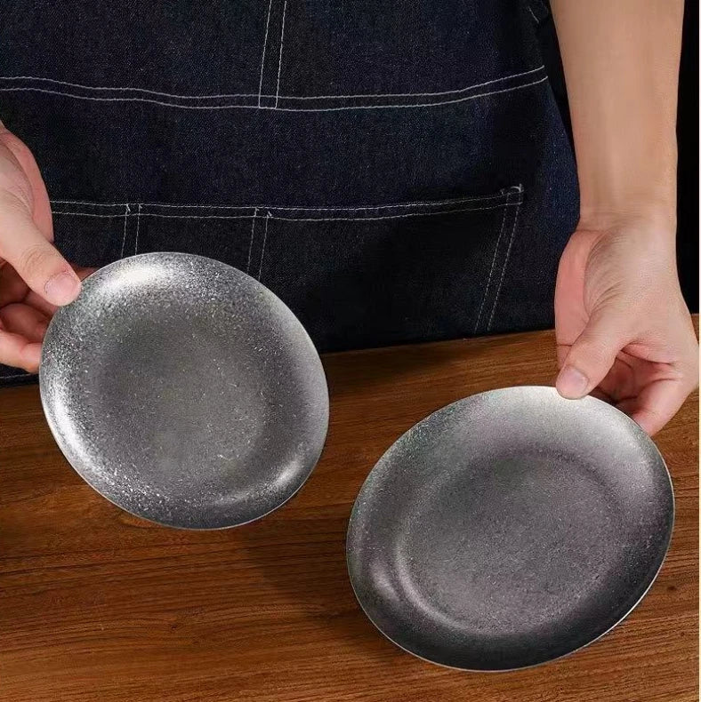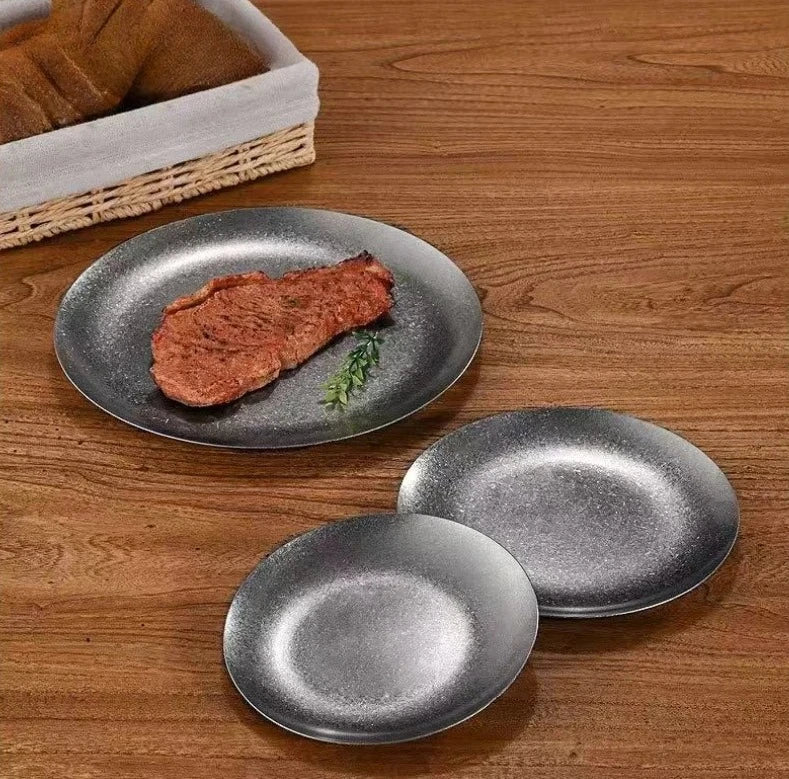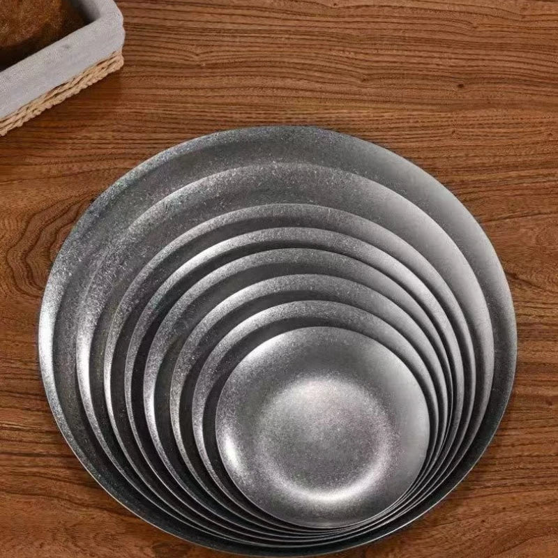 Experience the Nordic Style Plate collection, featuring Vintage Series Stainless Steel Dinner Plates that elevate your table setting. Each piece showcases a solid pattern and a round shape, perfect for any meal presentation. The Korean Classical Plate and Korean stainless steel thickened disc add a touch of luxury to your dining experience.