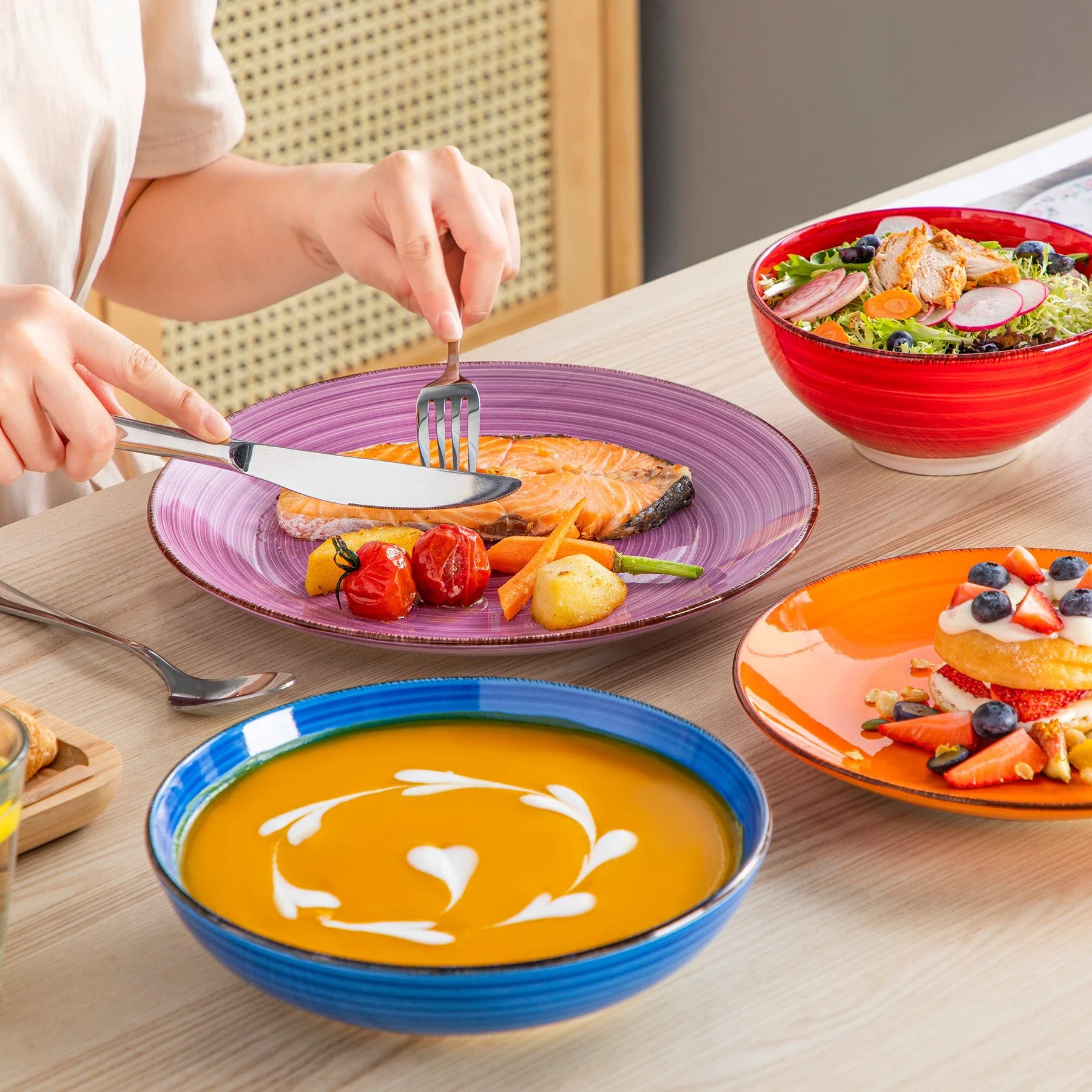 Our Dinner plates are lightweight and retro, making them versatile for everyday use. Whether you are hosting a formal dinner party or a casual gathering, these plates are sure to impress your guests. The Japanese dish set, including Charger plates for wedding, offers a touch of elegance to your table setting.