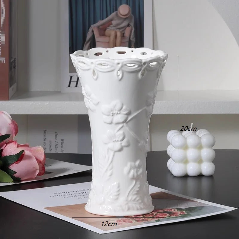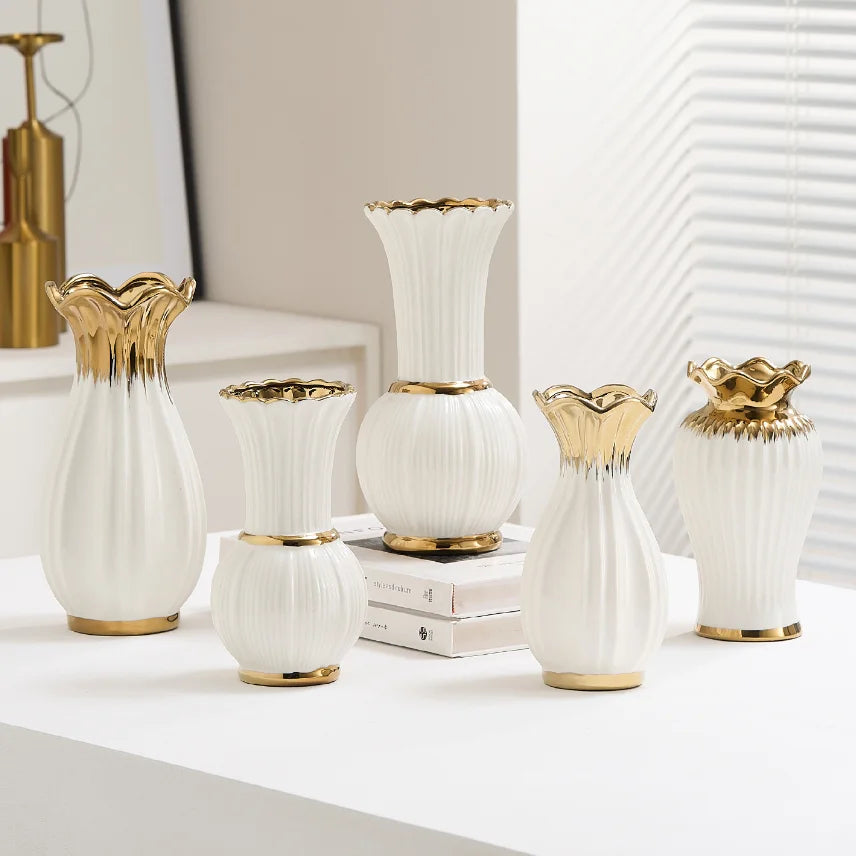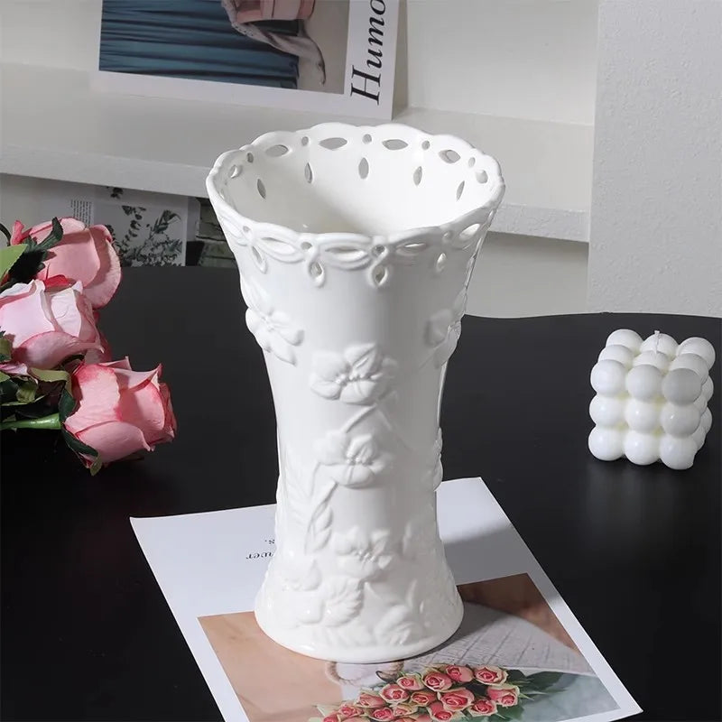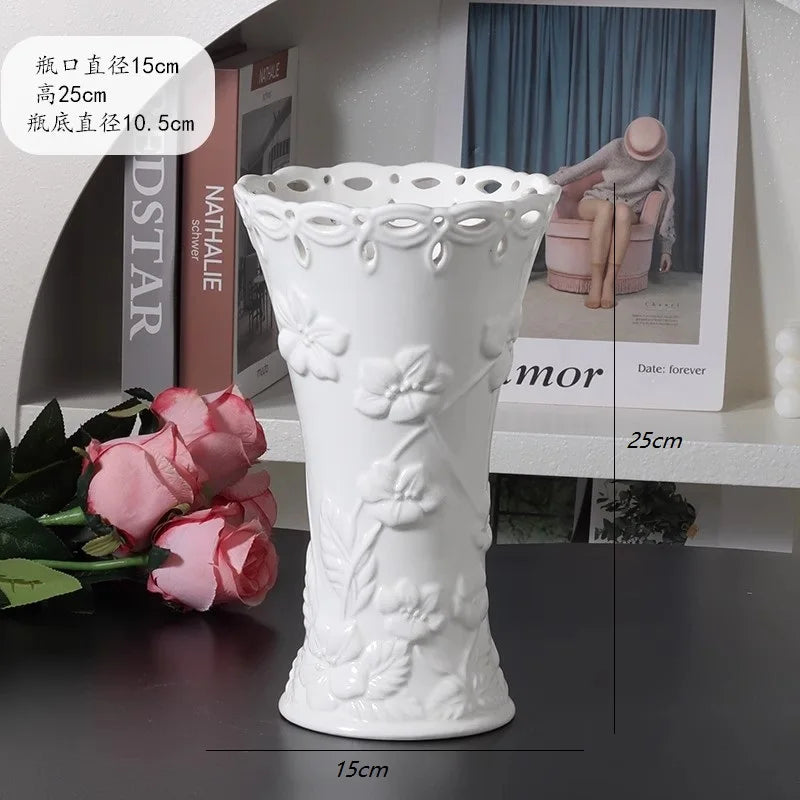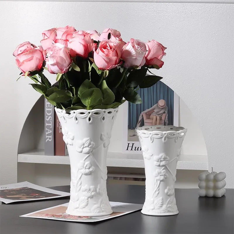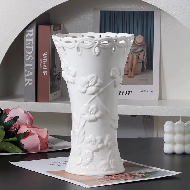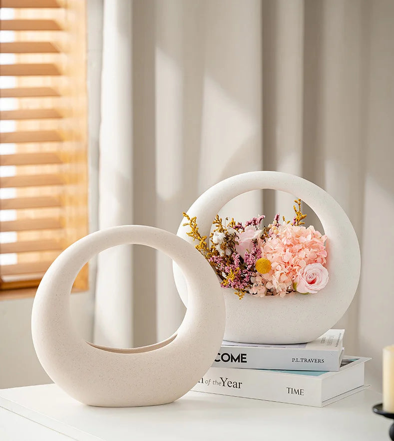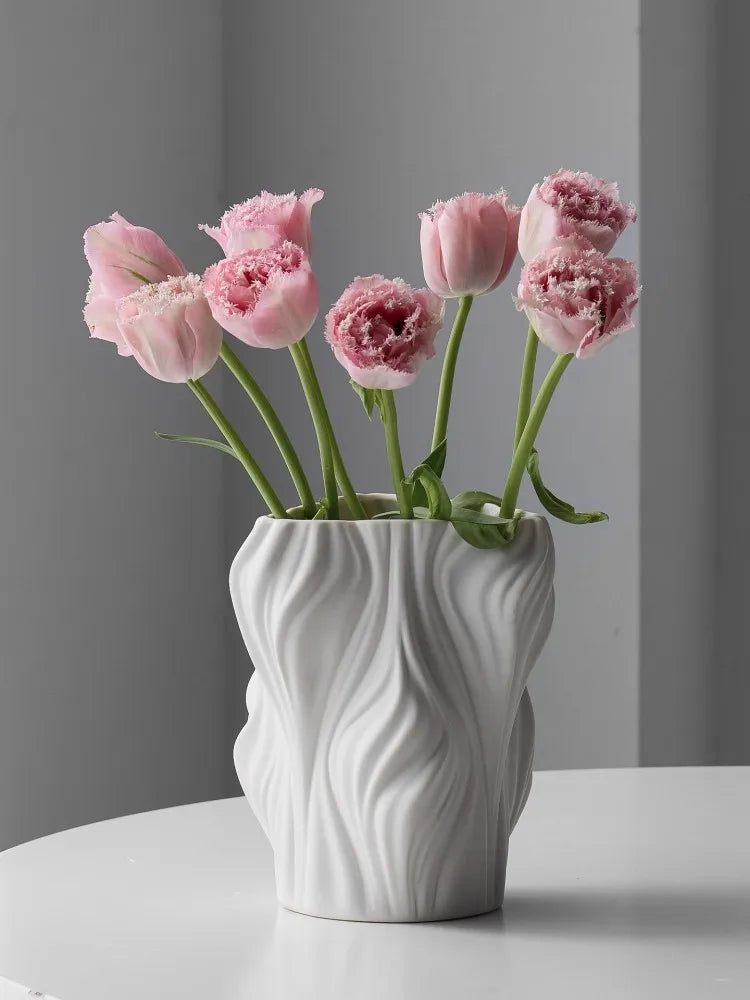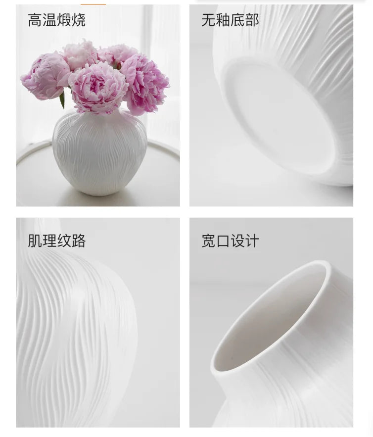 Ljojo™ White Ceramic Vase for Home Decor and Flower Arrangement