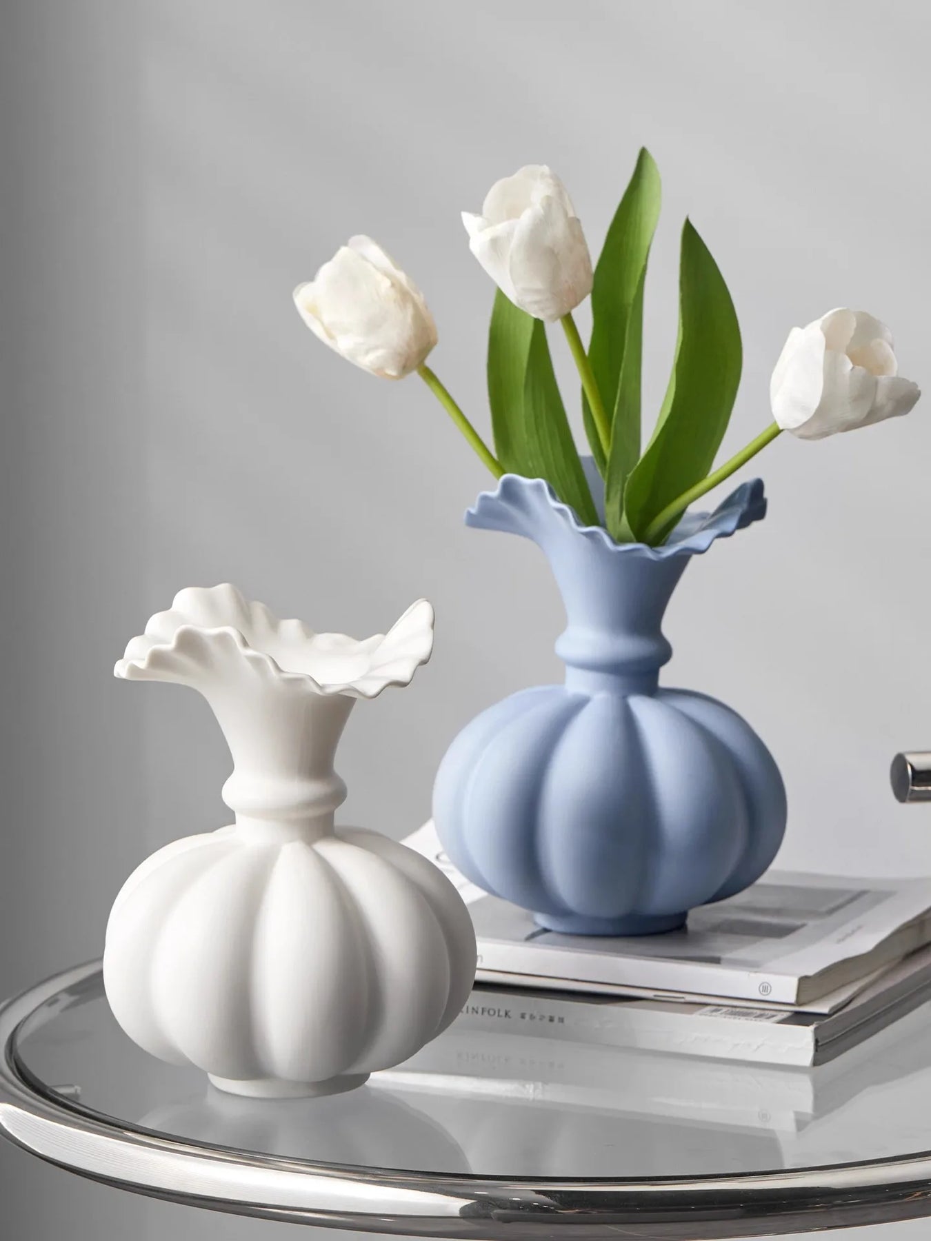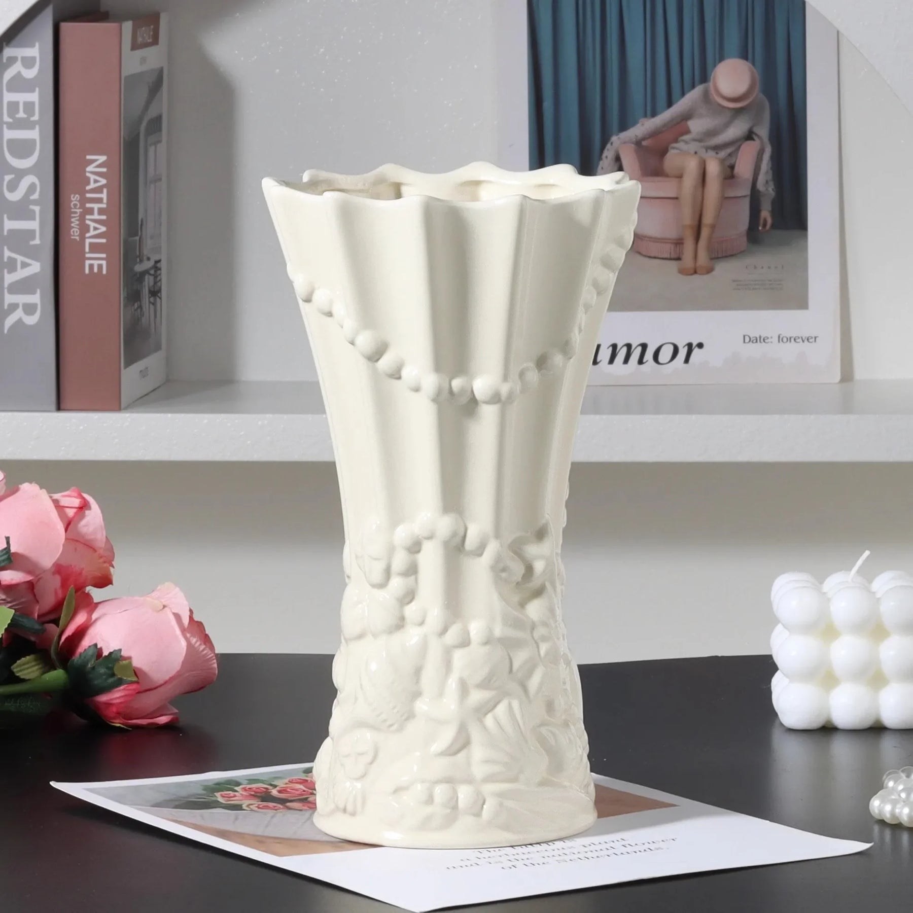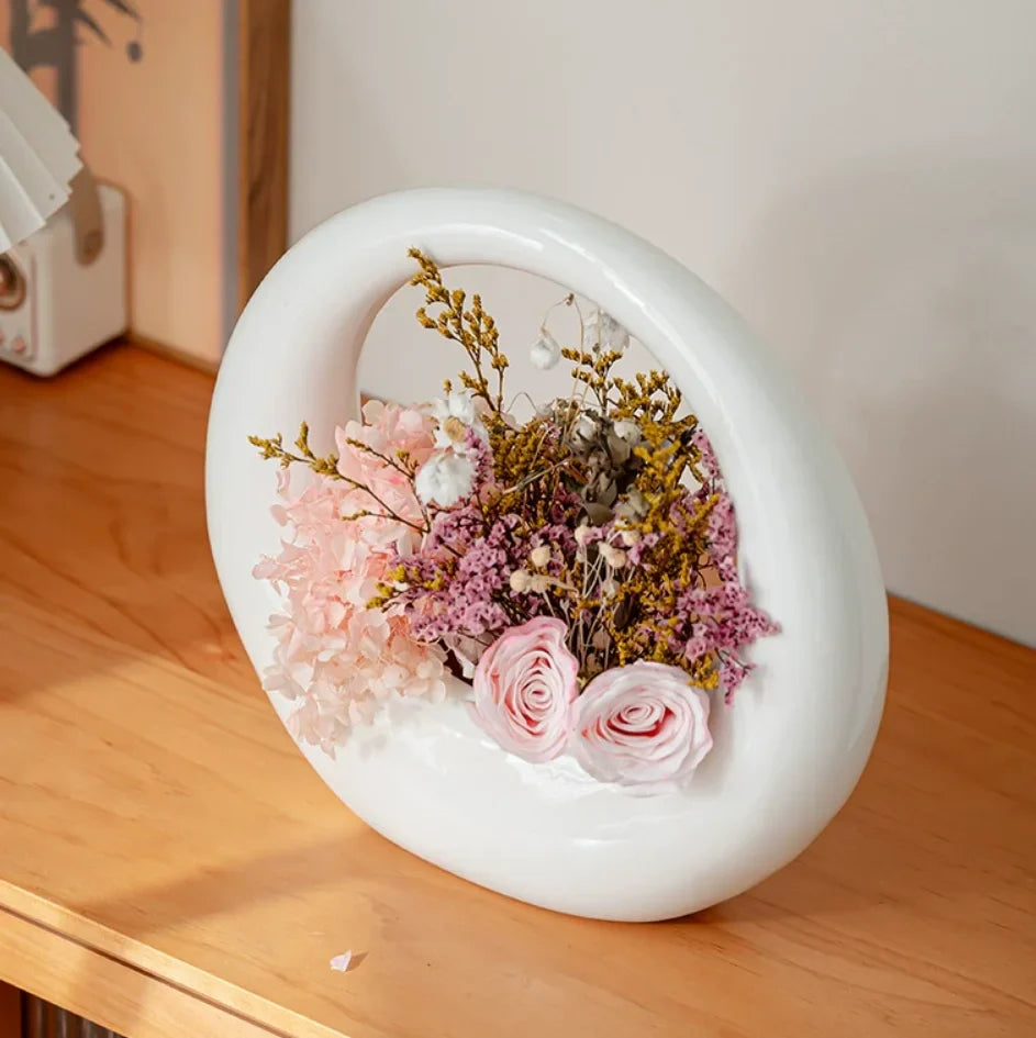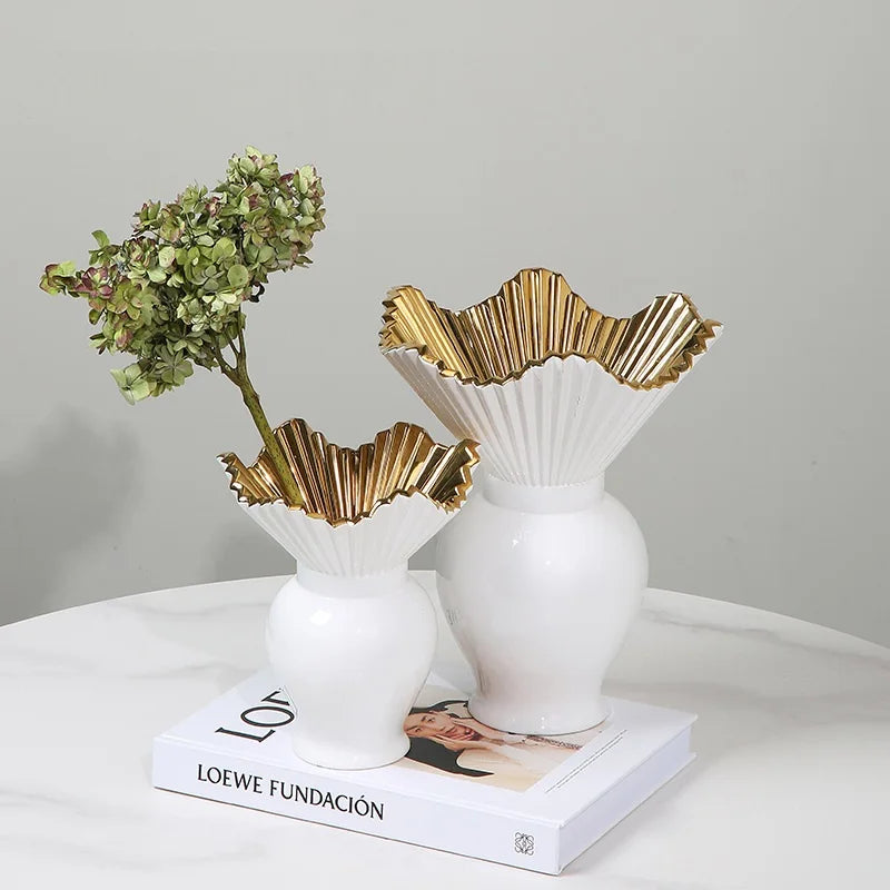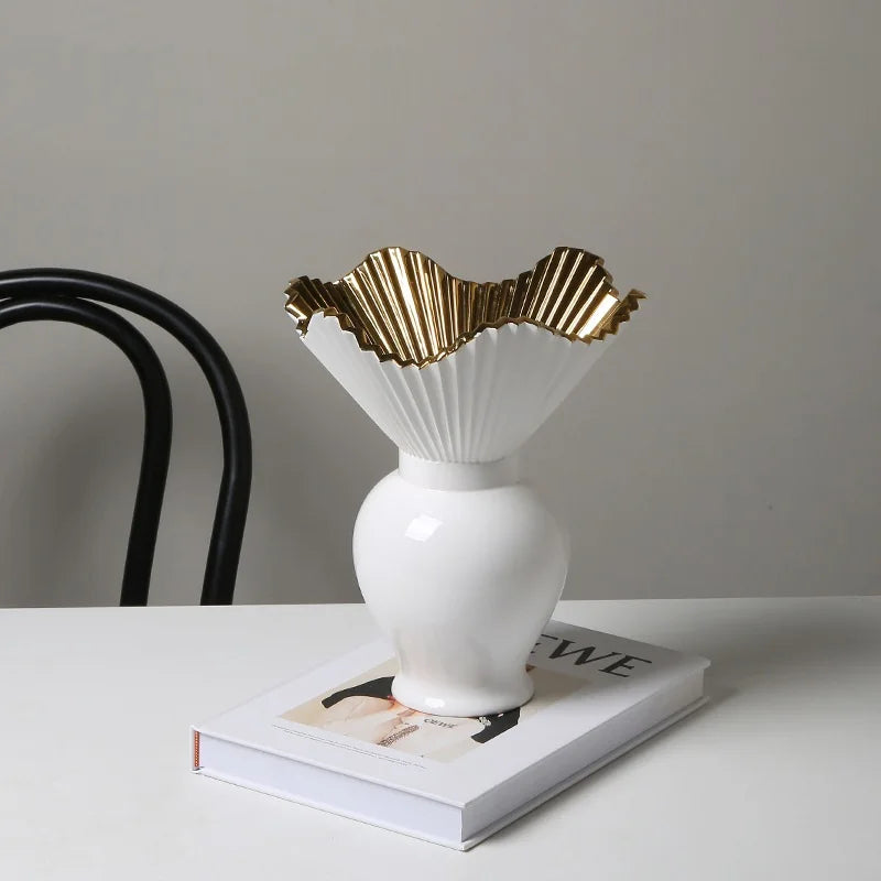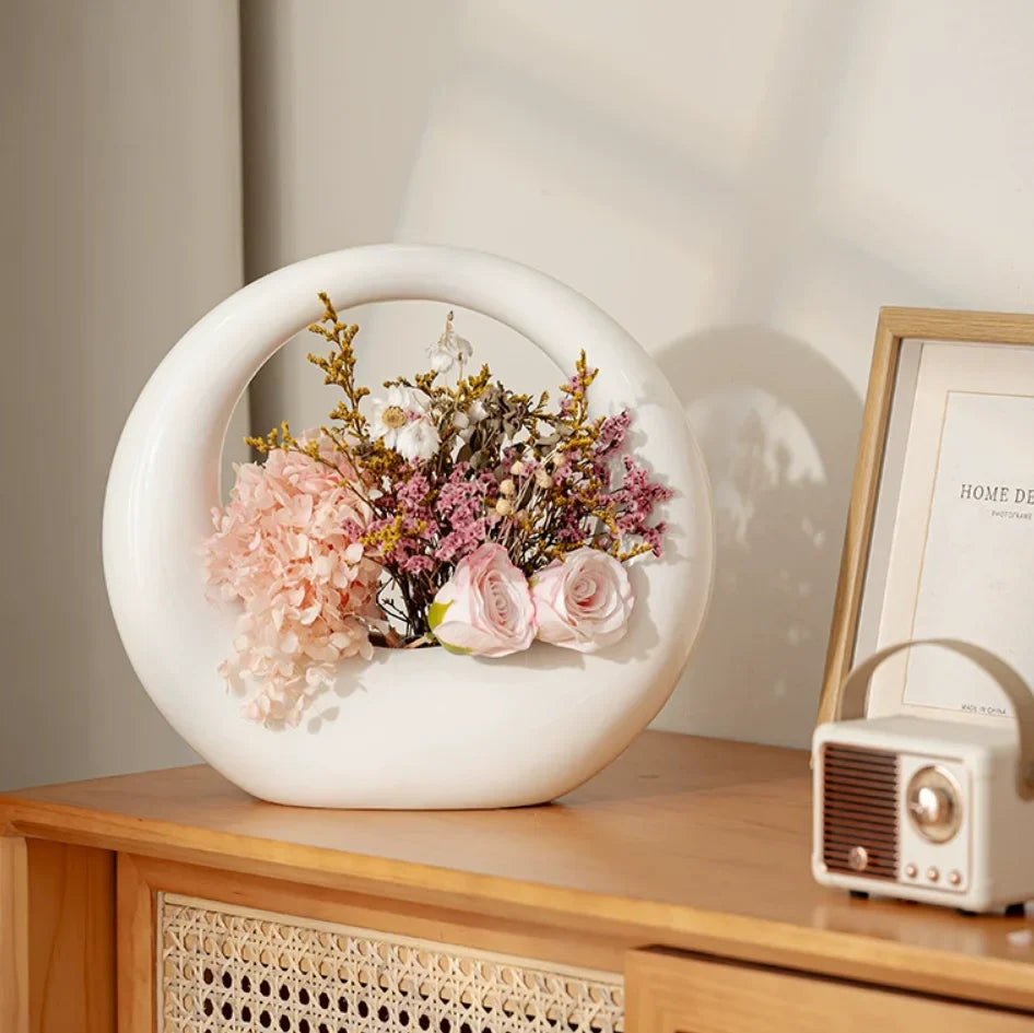 Ljojo™ White Ceramic Vase for Home Decor and Flower Arrangement