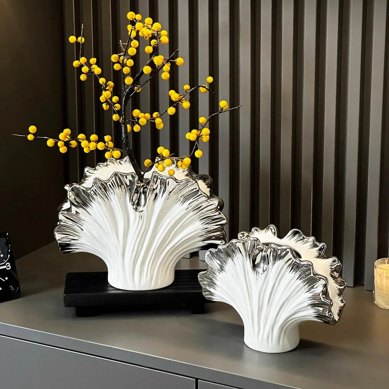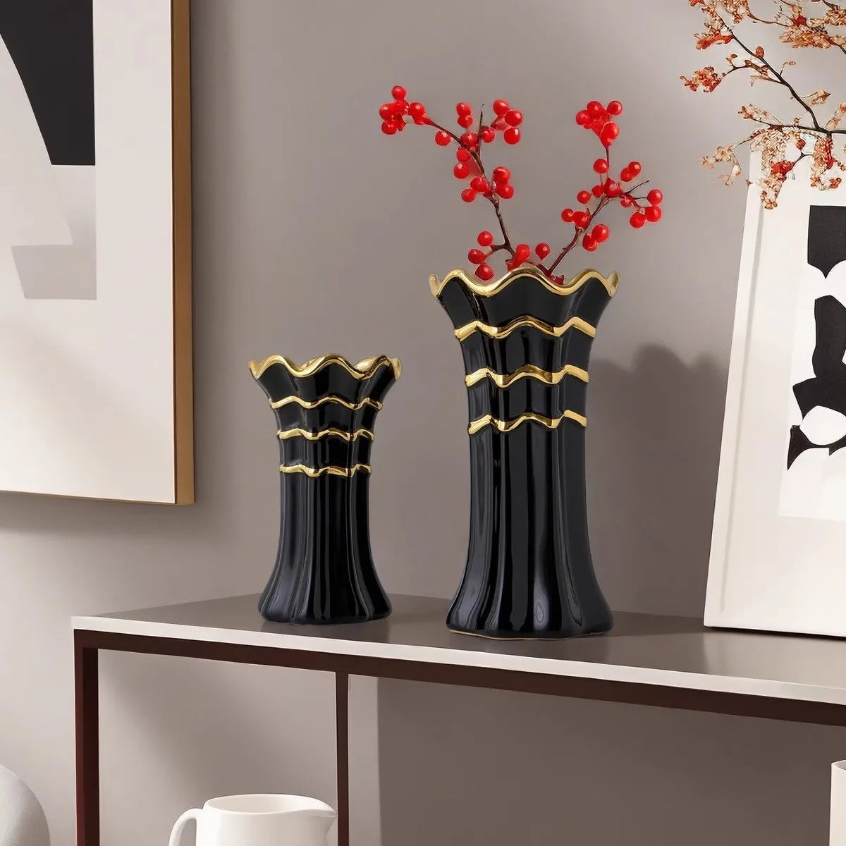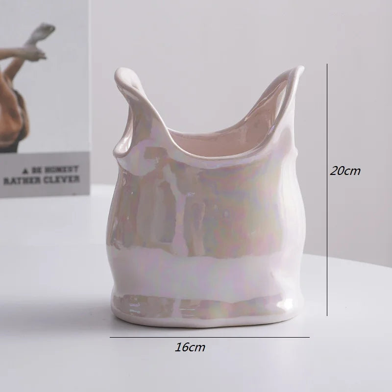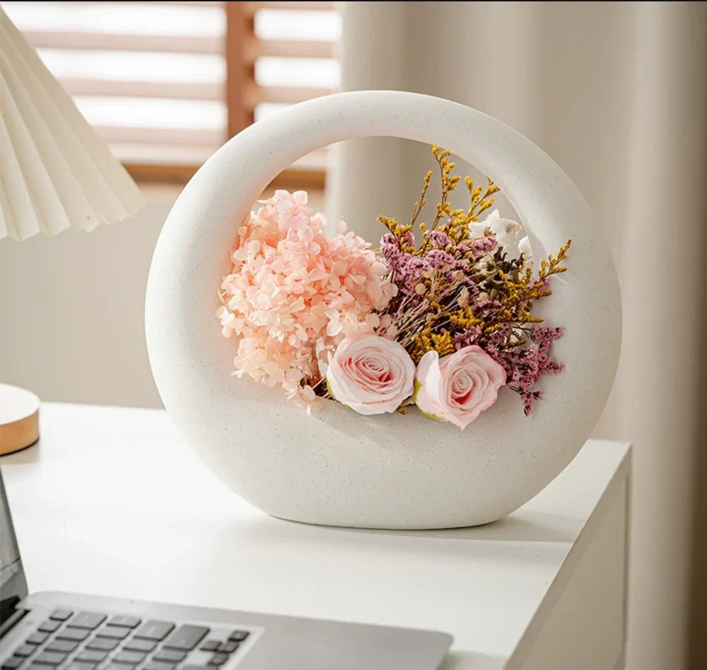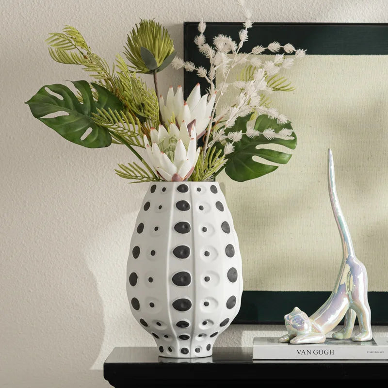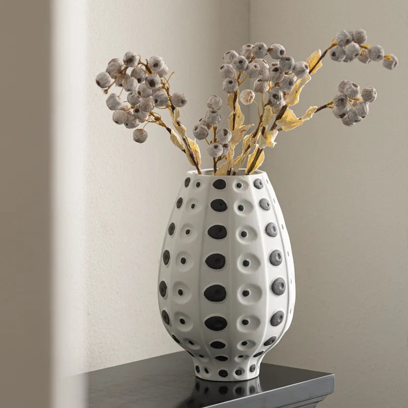 Crafted from high-quality ceramic, this vase exudes sophistication and timeless appeal. The modern design seamlessly blends into any decor style, enhancing the aesthetics of your living room, bedroom, or office. Whether you prefer a minimalist look or a more eclectic vibe, this vase is versatile enough to complement any setting.