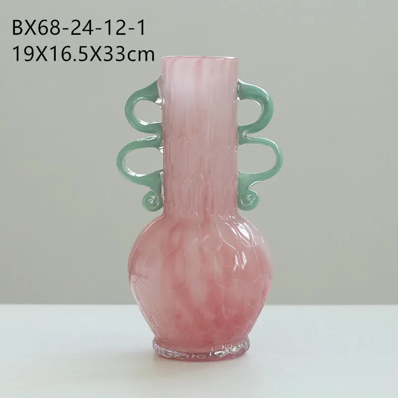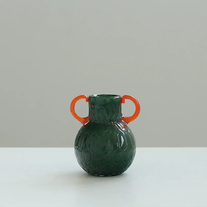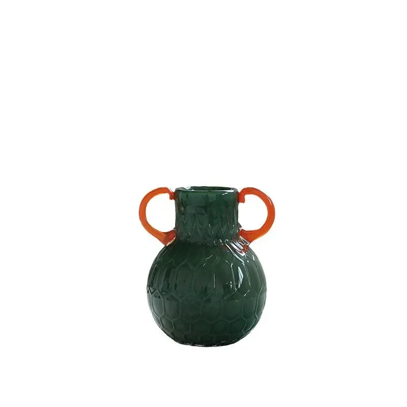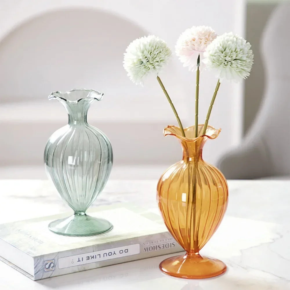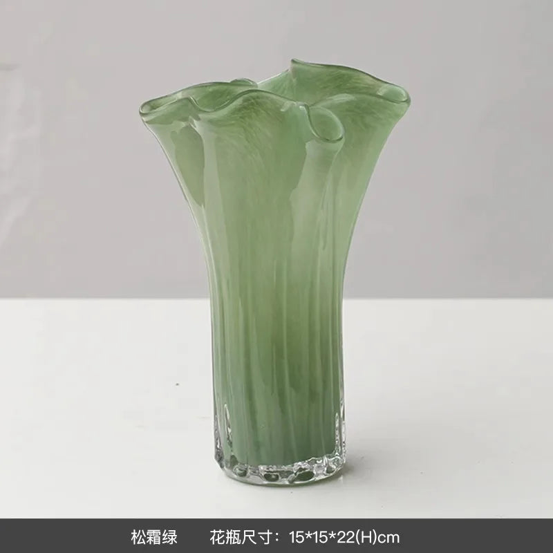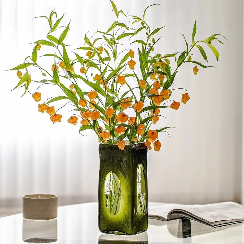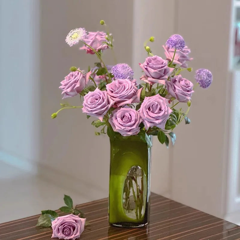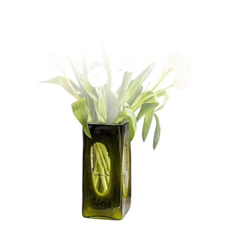 Ljojo™ Luxury Green Glass Vase for Living Room Decor, Retro Tulip Rose Arrangement