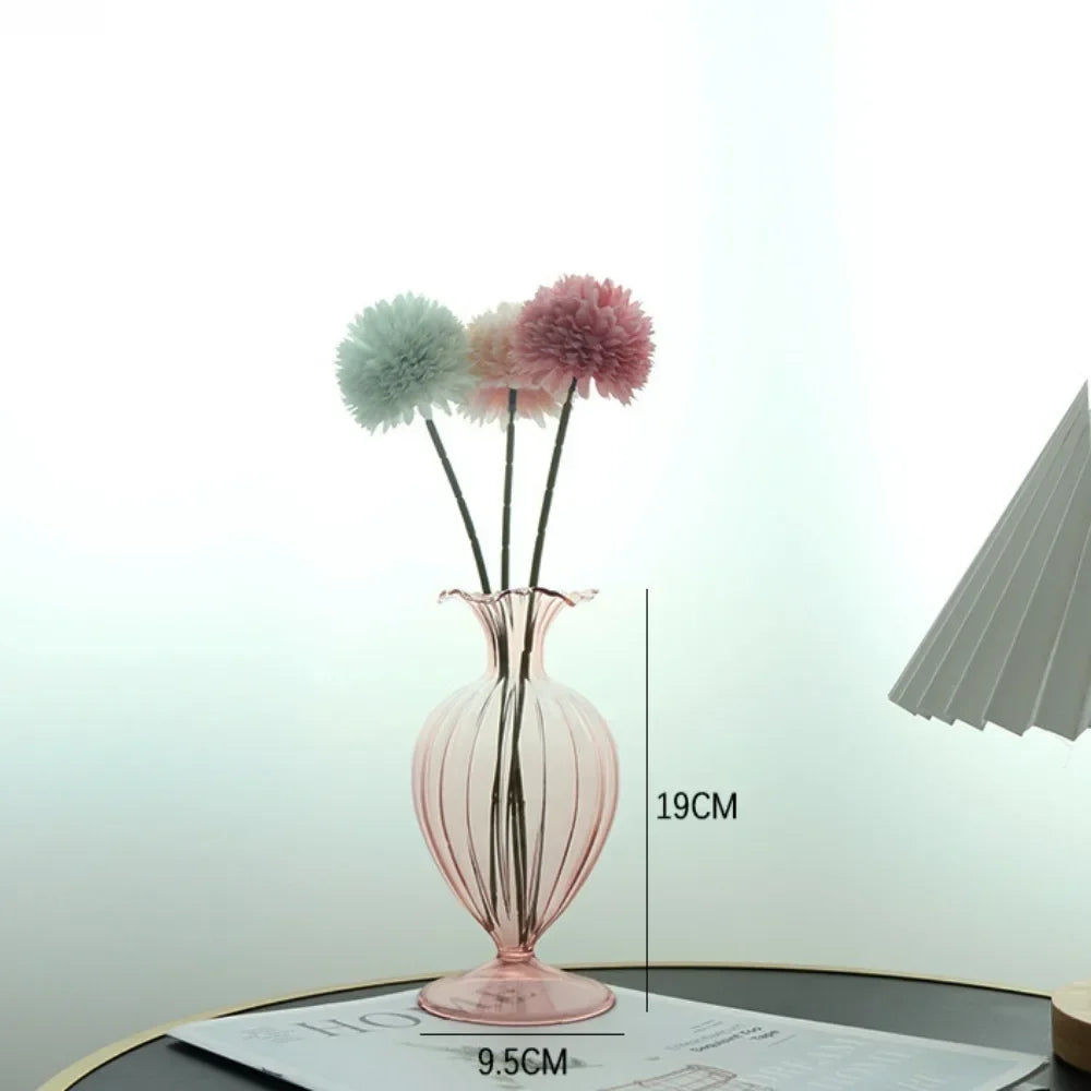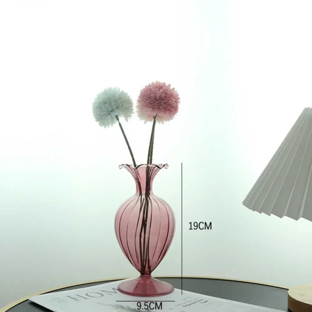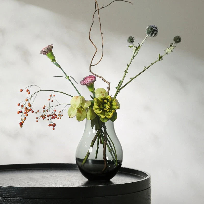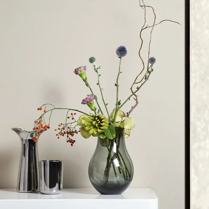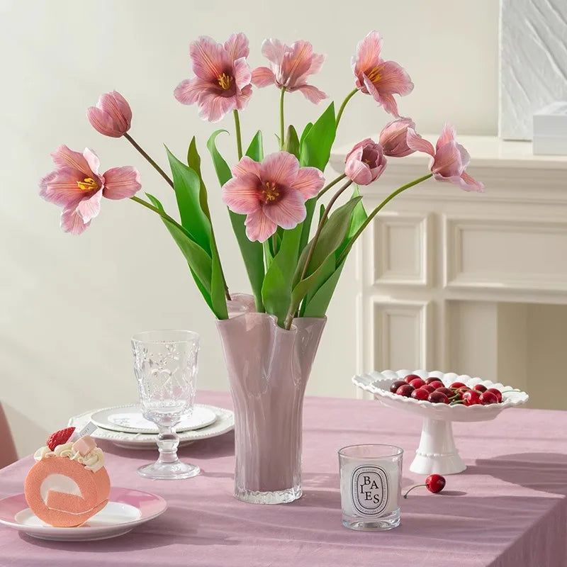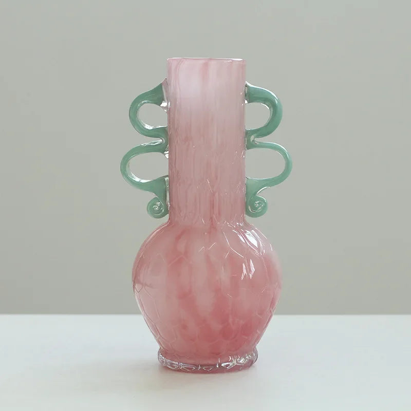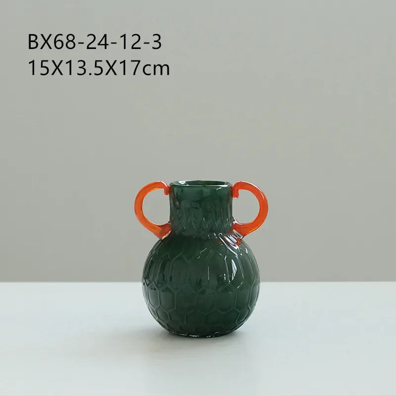 Ljojo™ Luxury Green Glass Vase for Living Room Decor, Retro Tulip Rose Arrangement