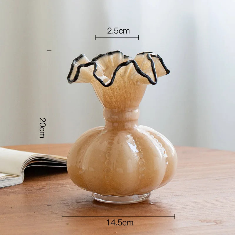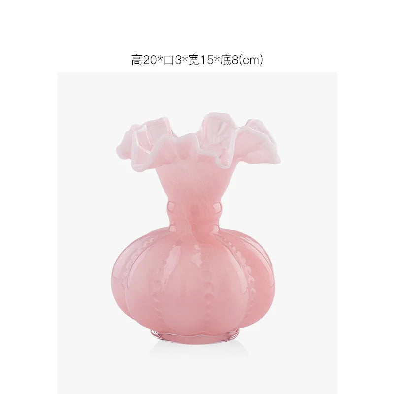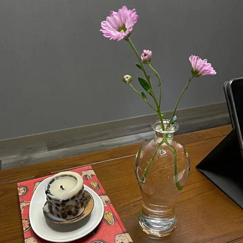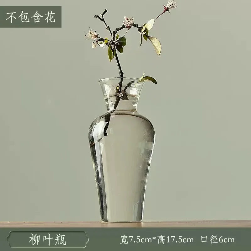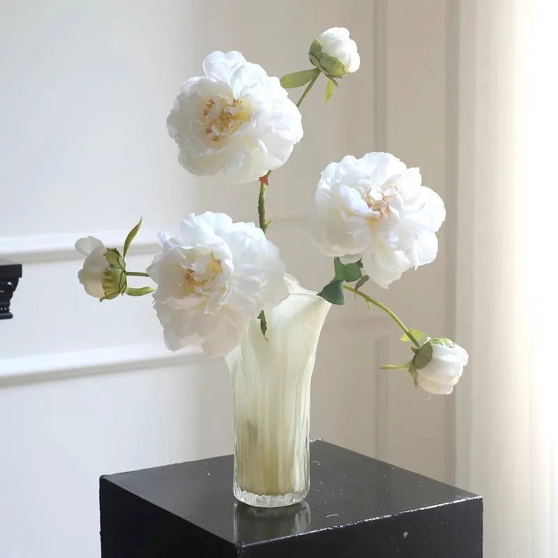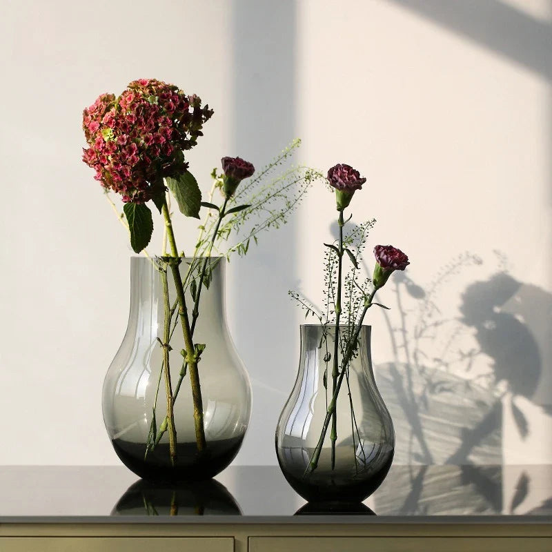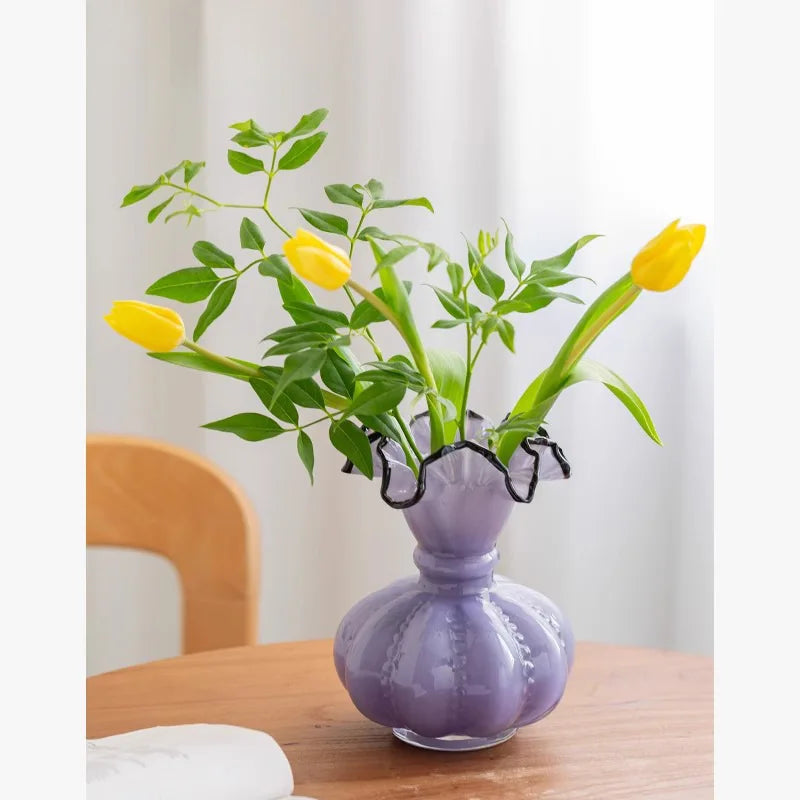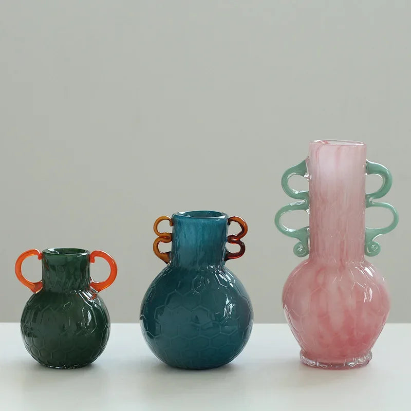 Ljojo™ Luxury Green Glass Vase for Living Room Decor, Retro Tulip Rose Arrangement