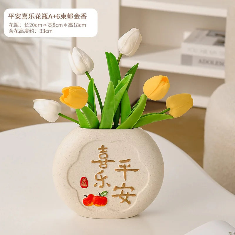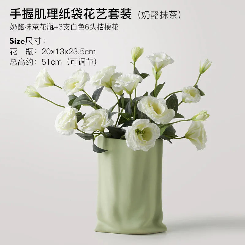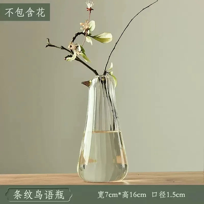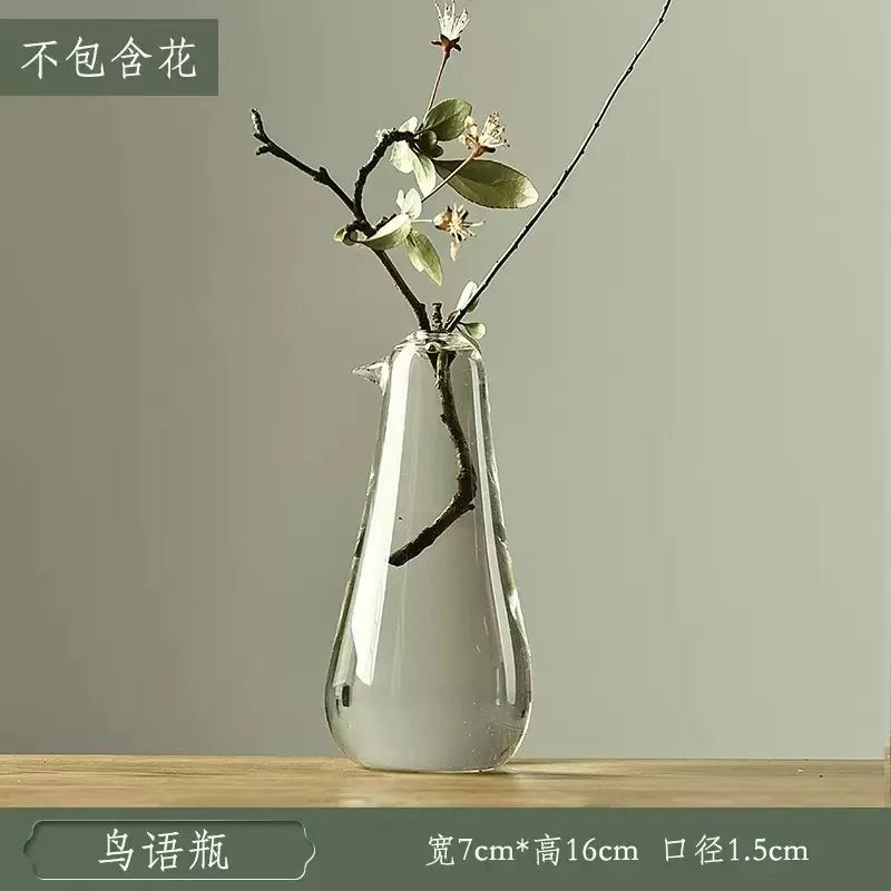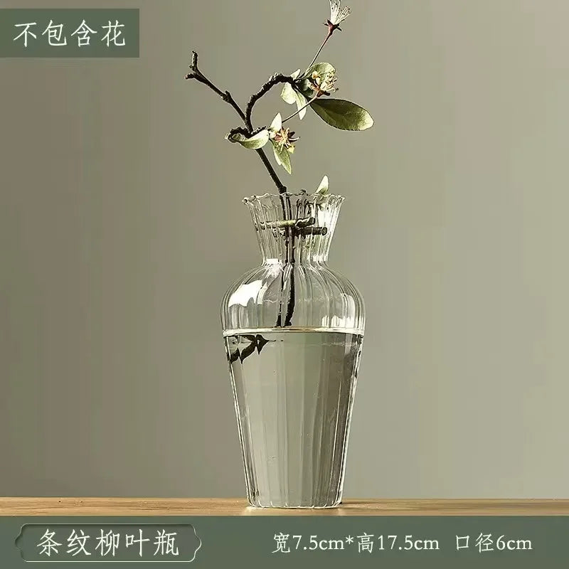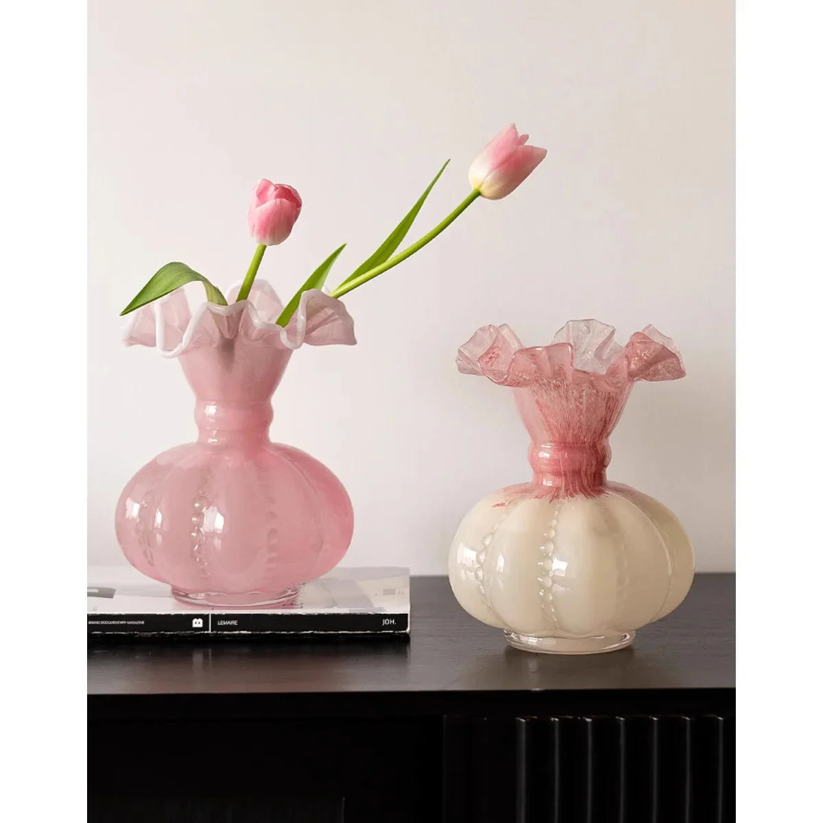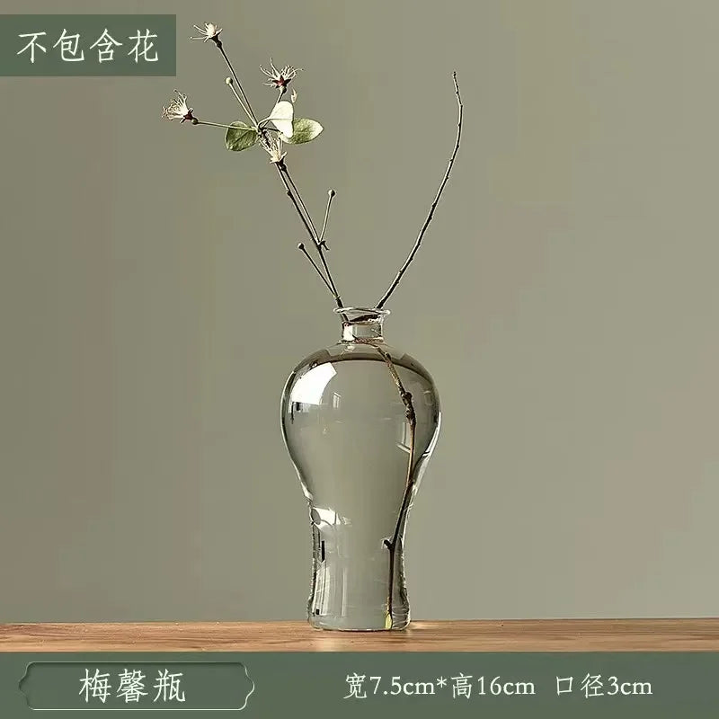 Ljojo™ Luxury Green Glass Vase for Living Room Decor, Retro Tulip Rose Arrangement