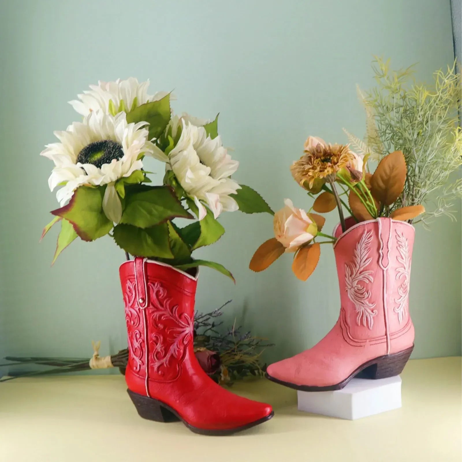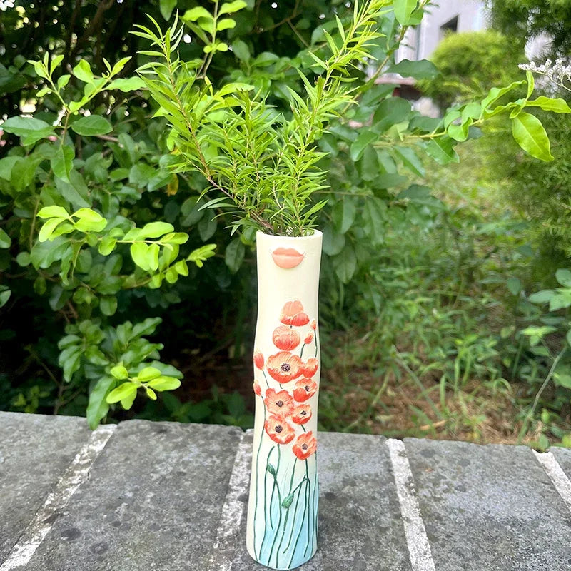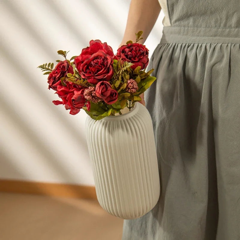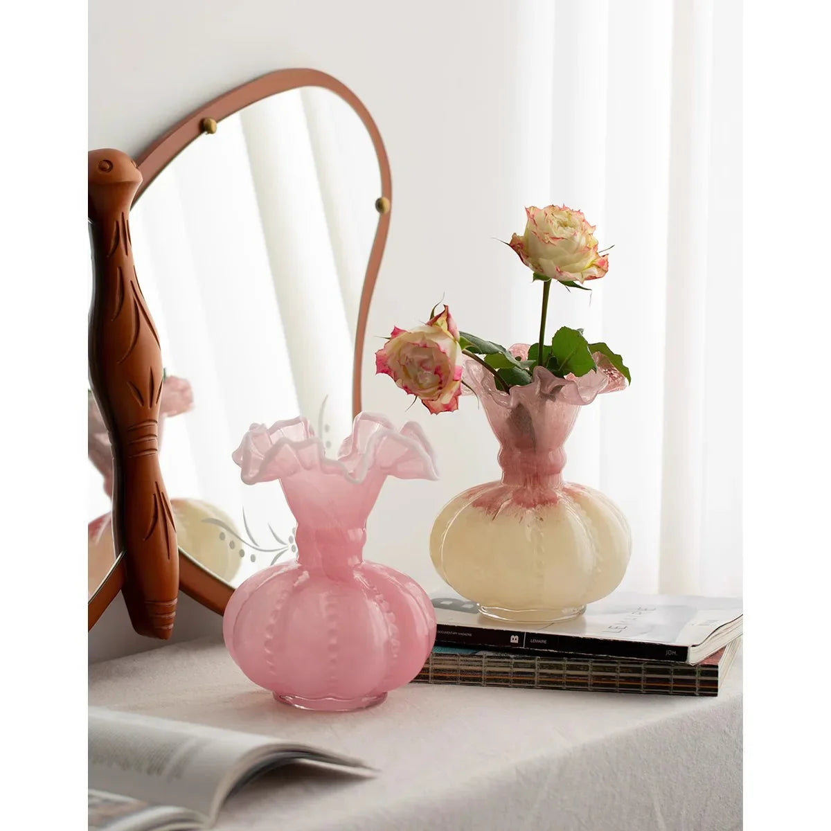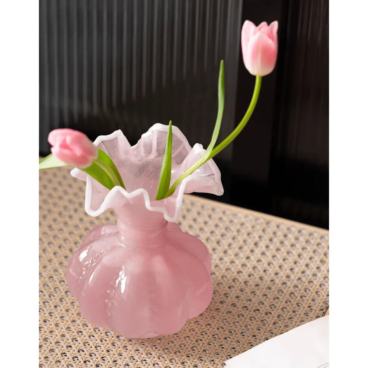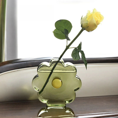 Add a touch of sophistication to your home with this beautiful green glass vase. Its retro tulip rose arrangement adds a nostalgic charm to any room, making it a perfect choice for those who appreciate timeless elegance.
