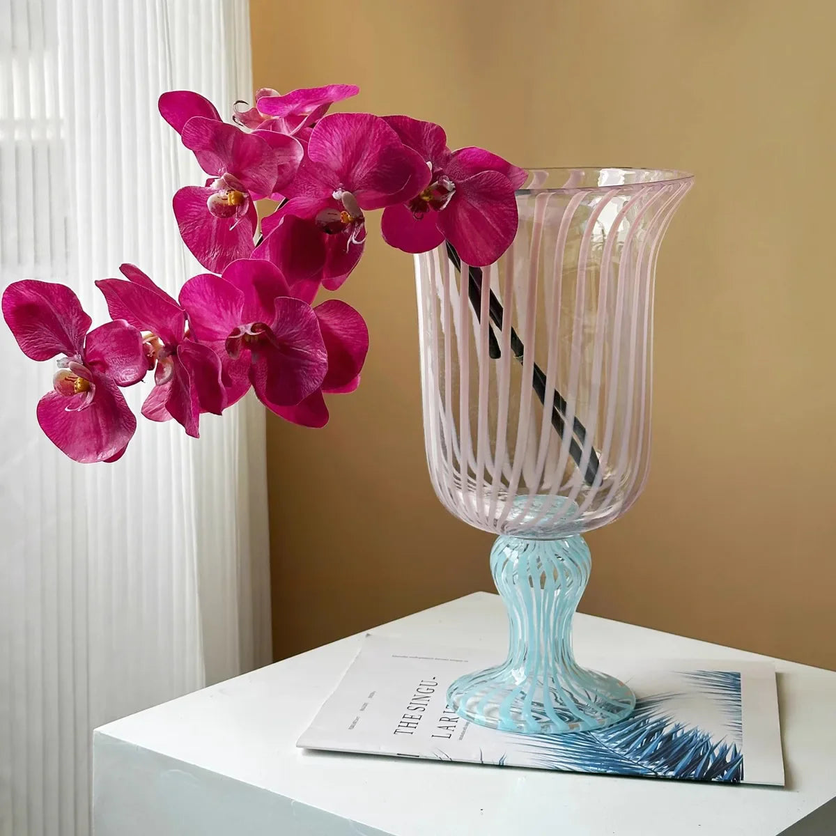 The high-quality glass vase is carefully selected with no compromise on quality, ensuring a luxurious addition to your home. With its unique design and impeccable craftsmanship, this piece is truly a standout in any setting.
