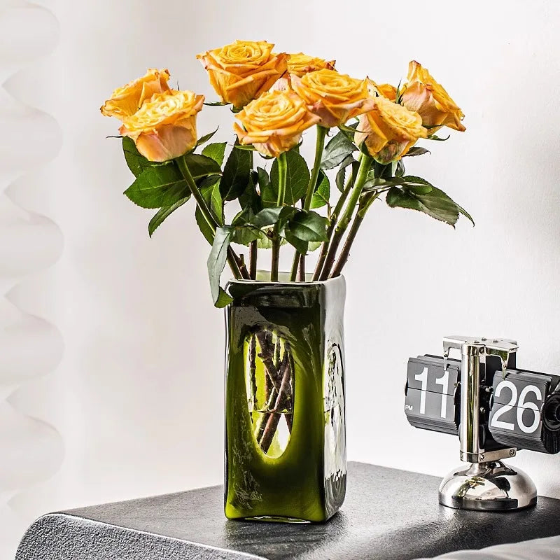 Enhance your interior design with the Ljojo™ Luxury Green Glass Vase and transform your living room into a captivating space. Make a statement with this exquisite piece that combines style, grace, and charm in one stunning creation.