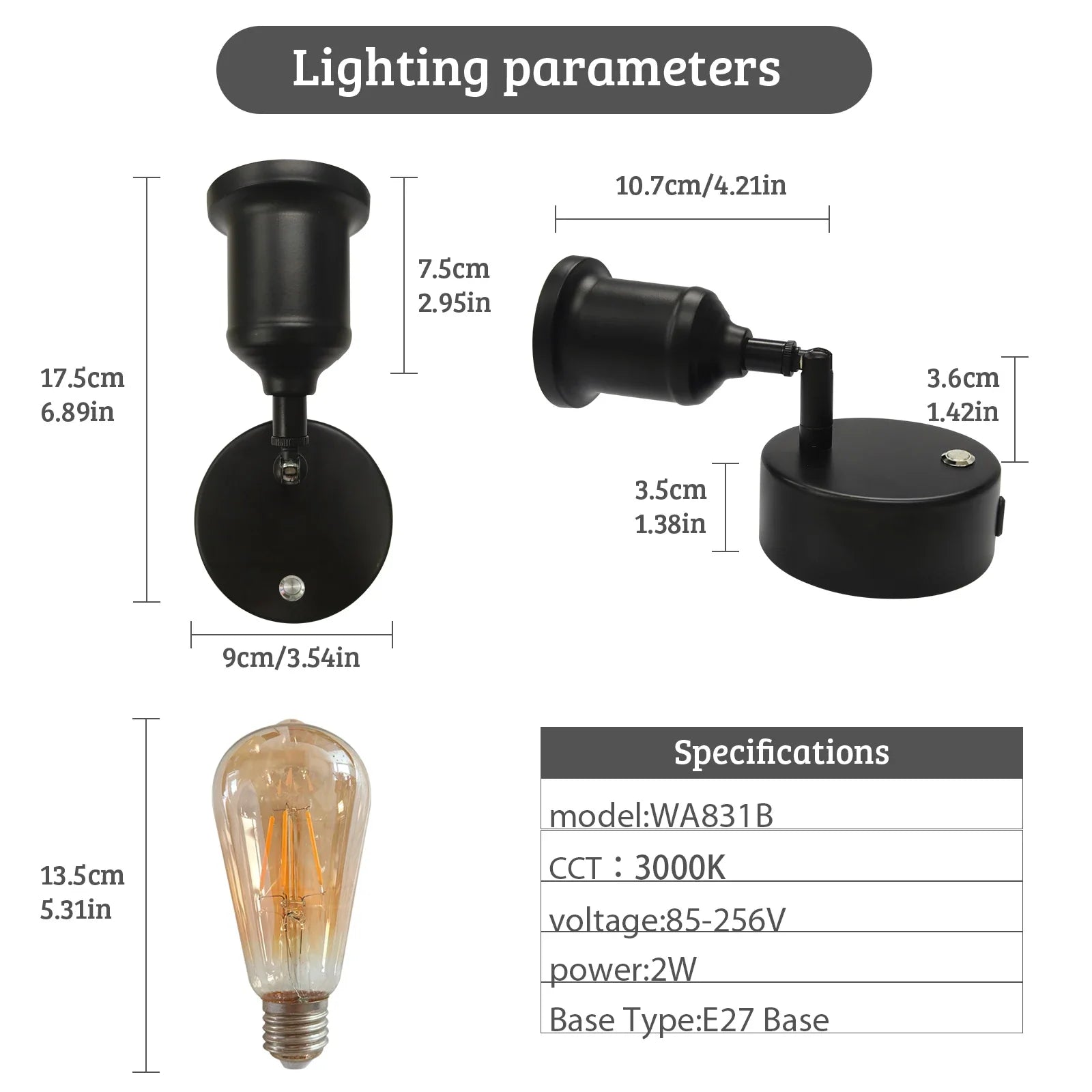 With a base type of E14, this wall lamp is easy to install with its self-contained installation method. The LED bulbs included provide a sufficient amount of light, covering a lighting area of 3-5 square meters. The downward shade direction ensures the light is focused where you need it most.