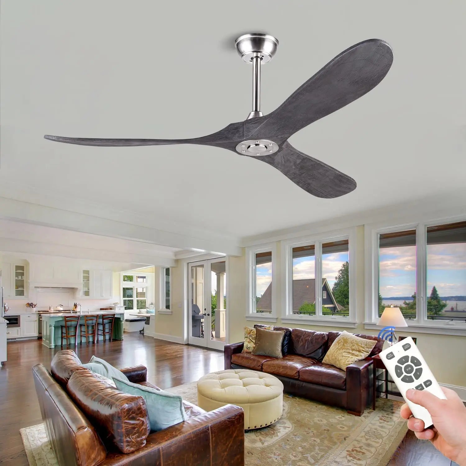 Crafted with three wooden fan blades in a sleek wood finish, this Ljojo ceiling fan adds a touch of sophistication to any room. The assembly is straightforward, making it easy to install in your living room, office, or bedroom.