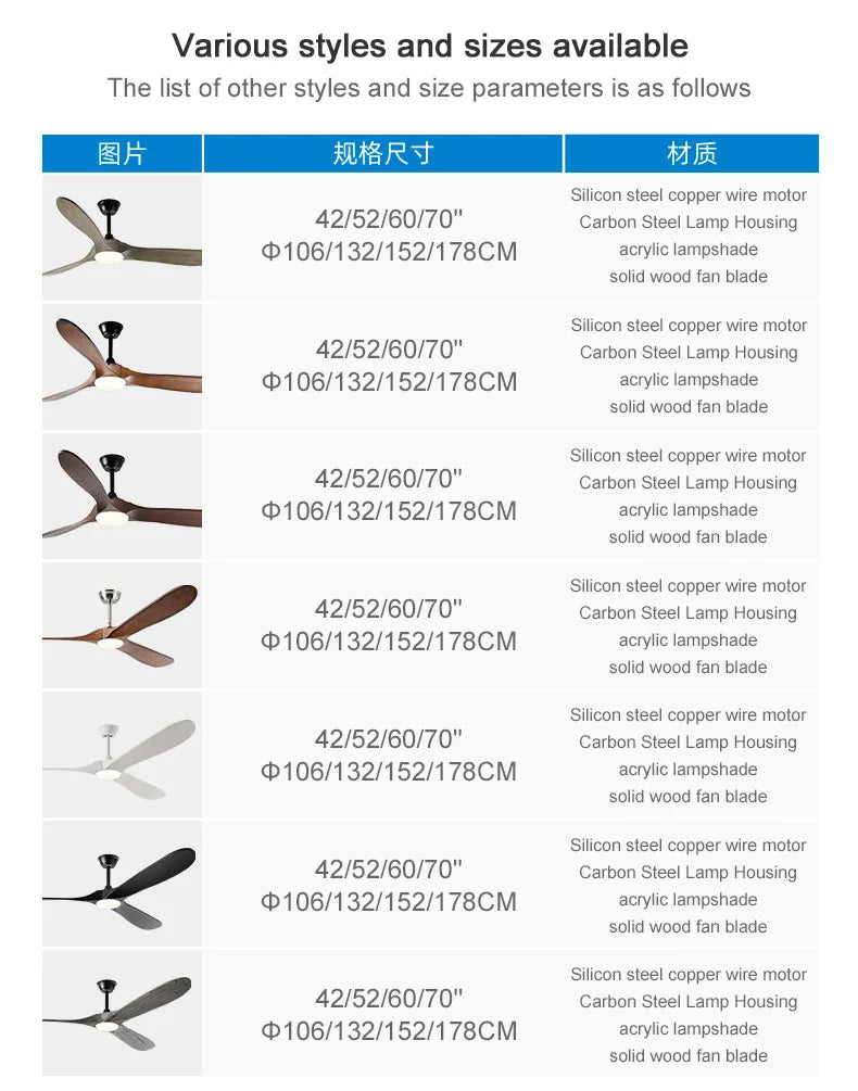 Crafted with a solid wood finish, this Large Industrial Ceiling Fan boasts a modern design that complements any decor. The 52/60/70 inch size is ideal for large rooms, ensuring optimal air circulation and comfort.