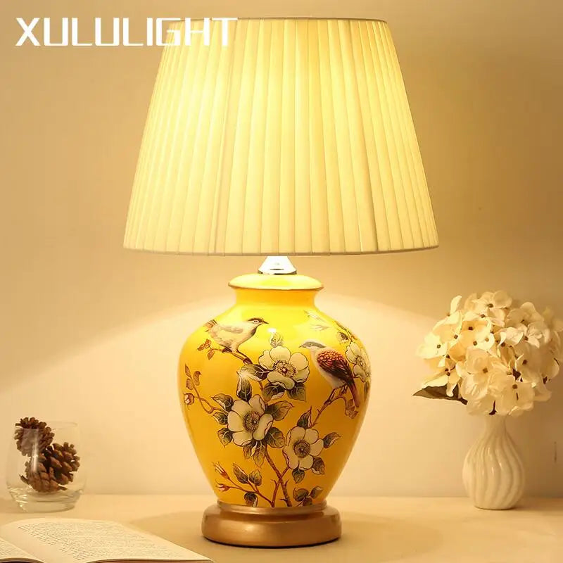 Introducing the Ljojo Ceramic Bird & Flower Table Lamp, a stunning piece that will illuminate your living space with elegance and charm. Crafted with attention to detail, this table lamp combines classic style with modern functionality.