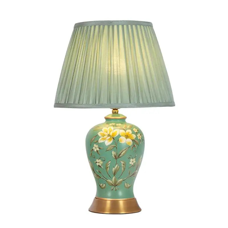 Crafted with attention to detail, this table lamp features a vibrant green body color with a polished steel finish, complemented by a gold frame color. The ceramic and textile body materials add a luxurious touch to the lamp, making it a true statement piece in your home decor.