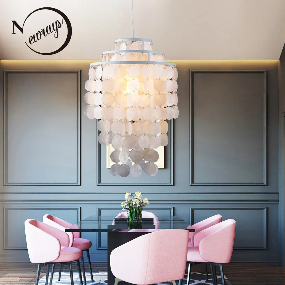 Introducing our Ljojo Coastal Shell Chandelier, a stunning addition to any modern loft decor. This exquisite lamp exudes elegance and sophistication, adding a touch of natural beauty to any space.
